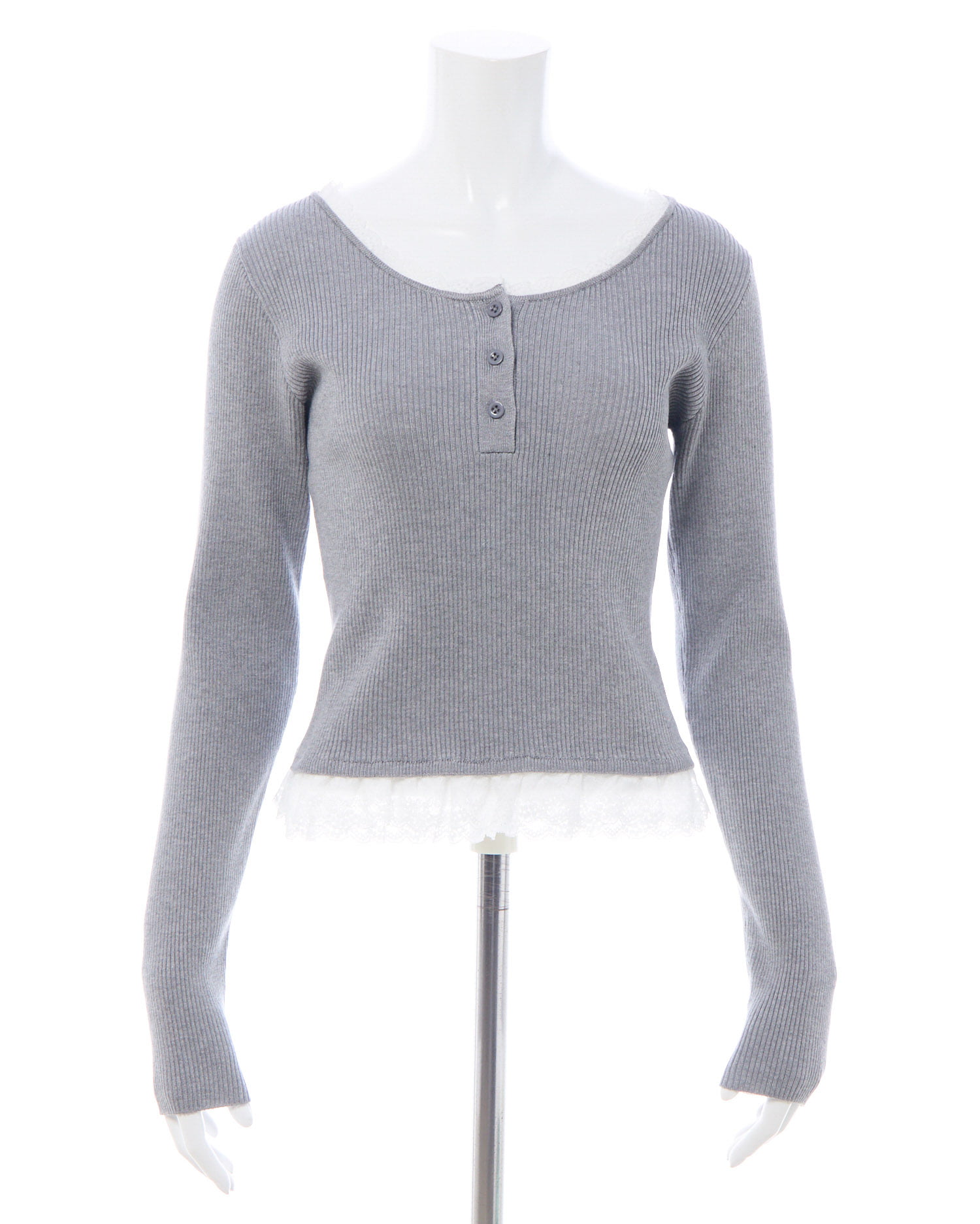 【人気のフリルレーストップスから長袖ニットタイプが登場♡】