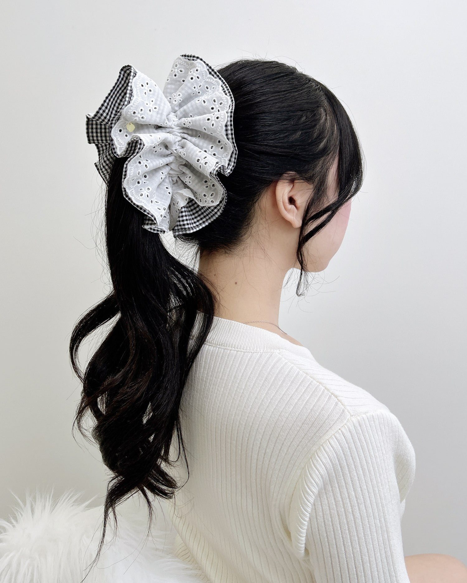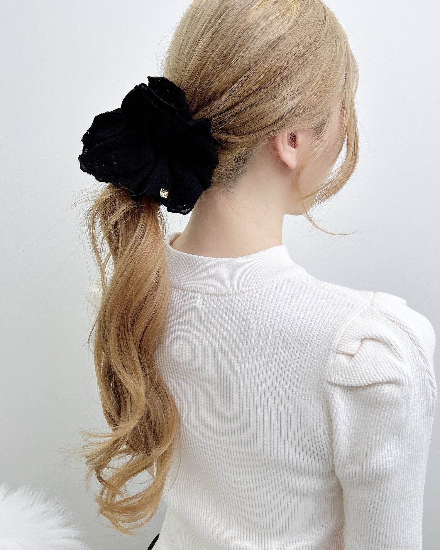 ナチュラルな雰囲気のレースを重ねたビッグシュシュ。