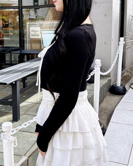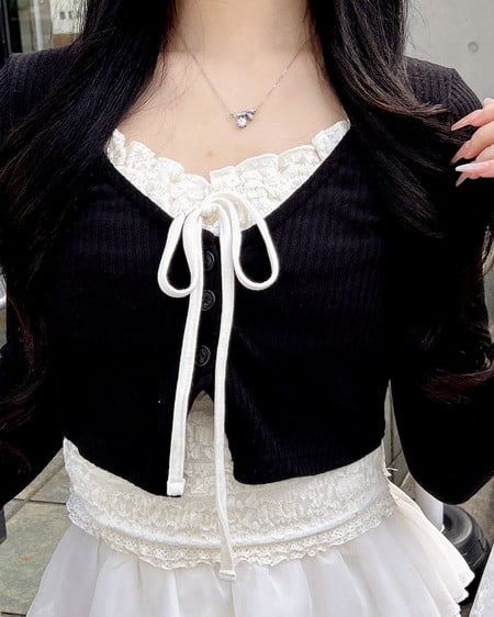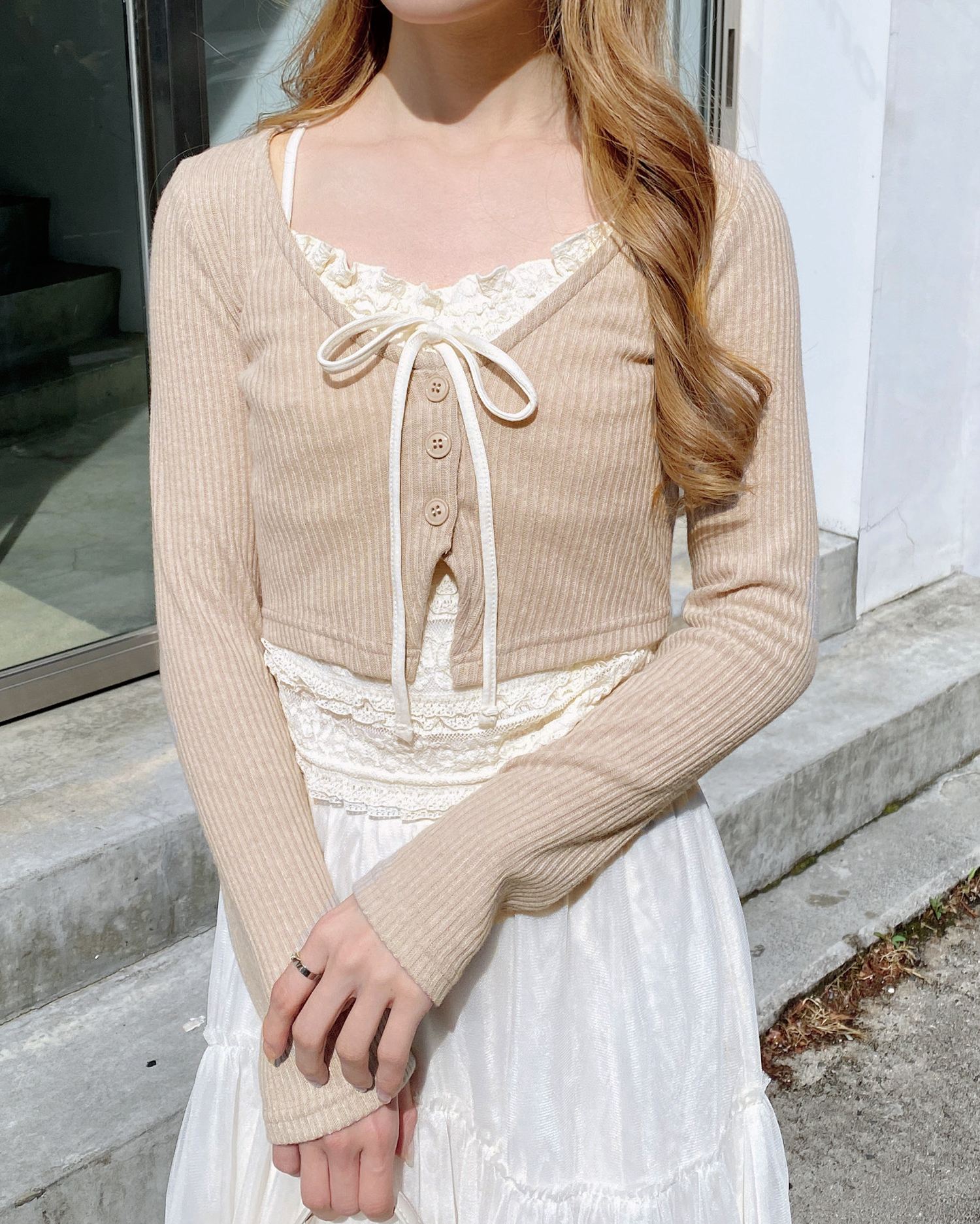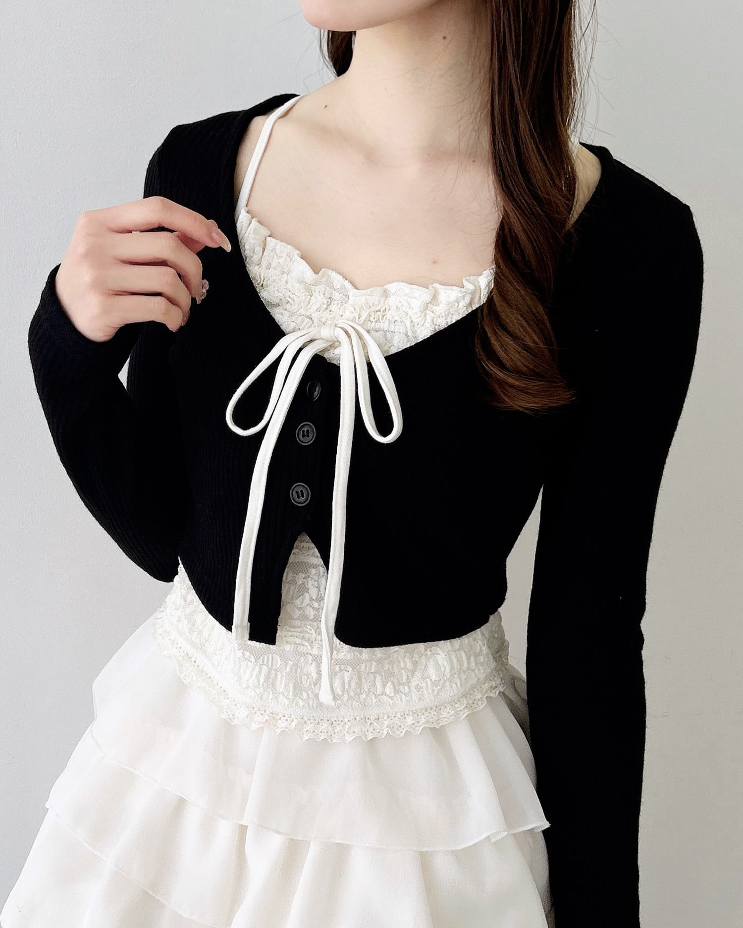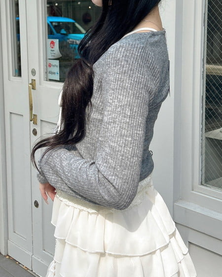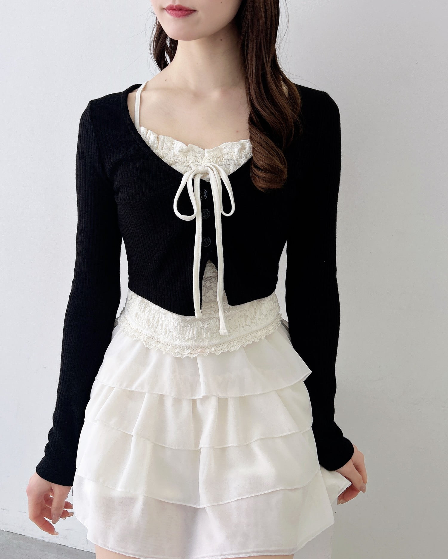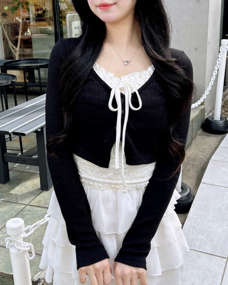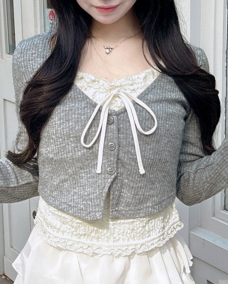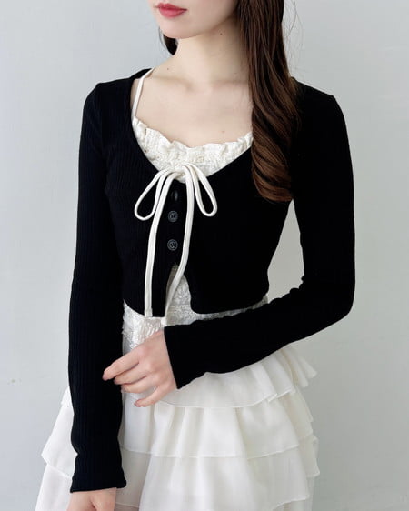 レースのキャミソールにカーディガンを重ねたような雰囲気のあるアイテムです。