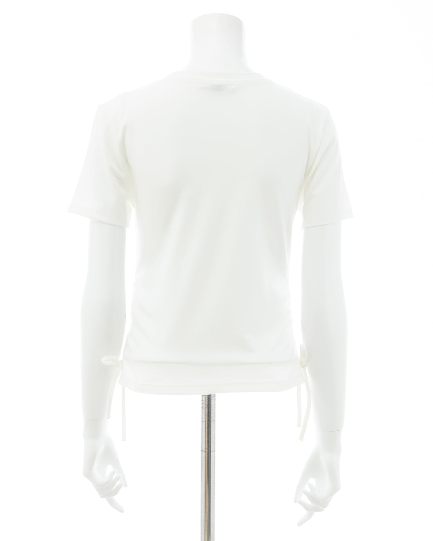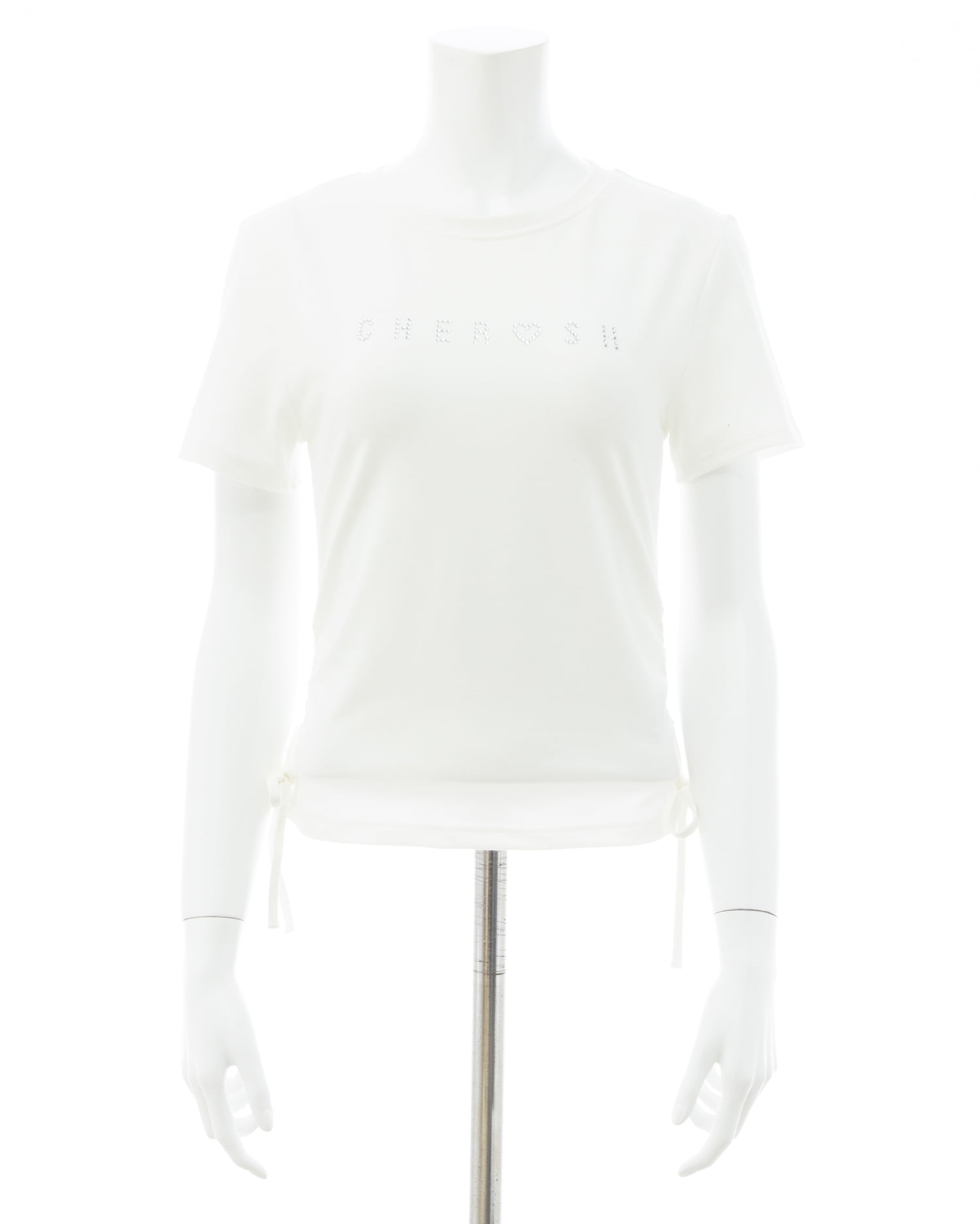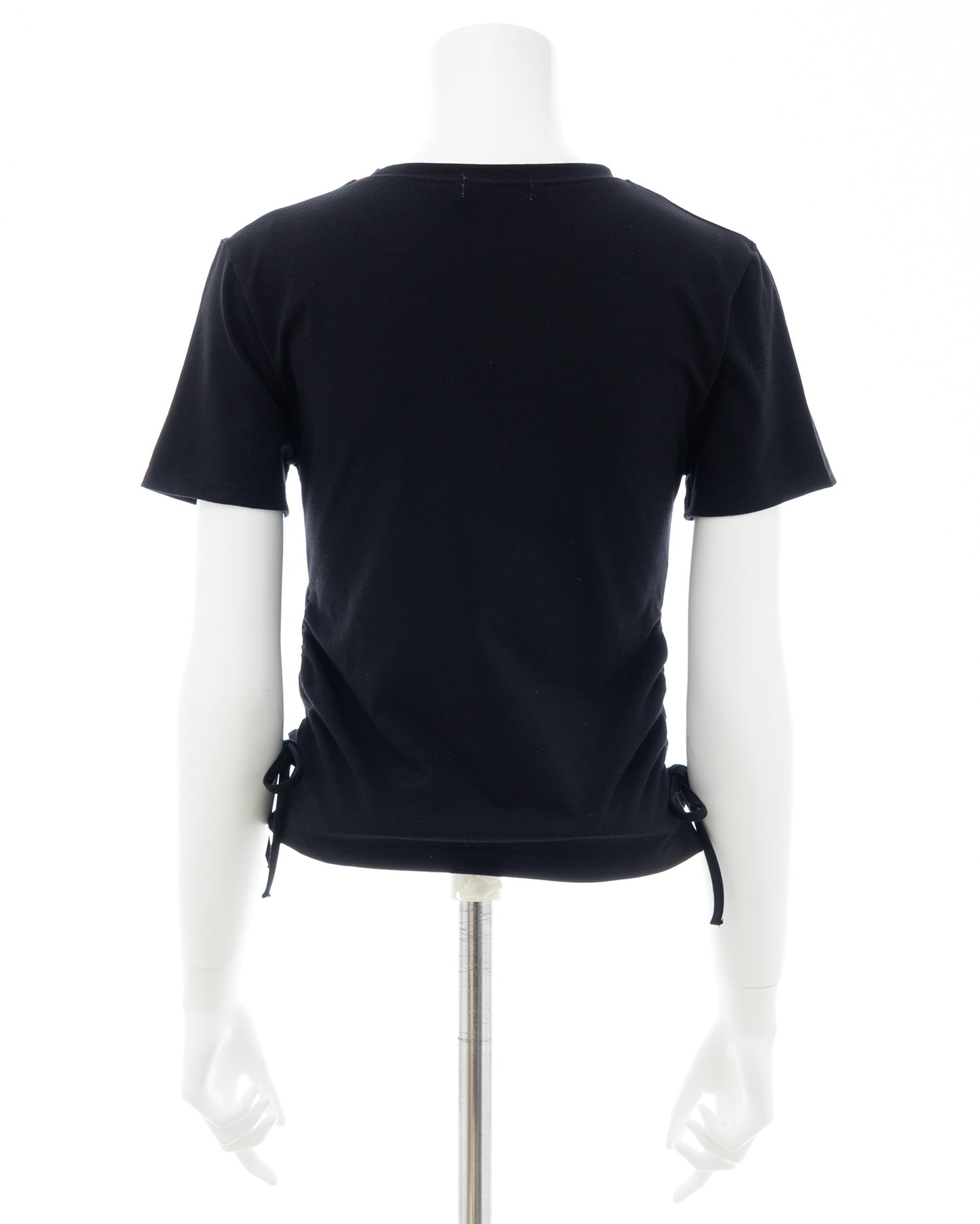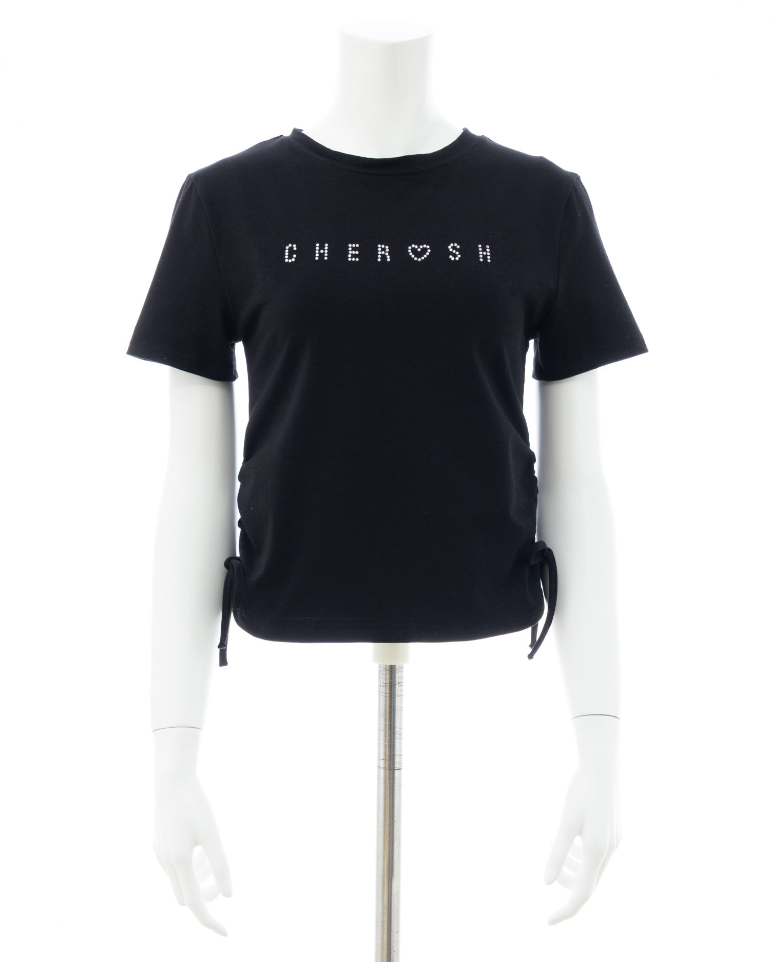 サイドギャザーリボンラインストーンロゴTシャツ