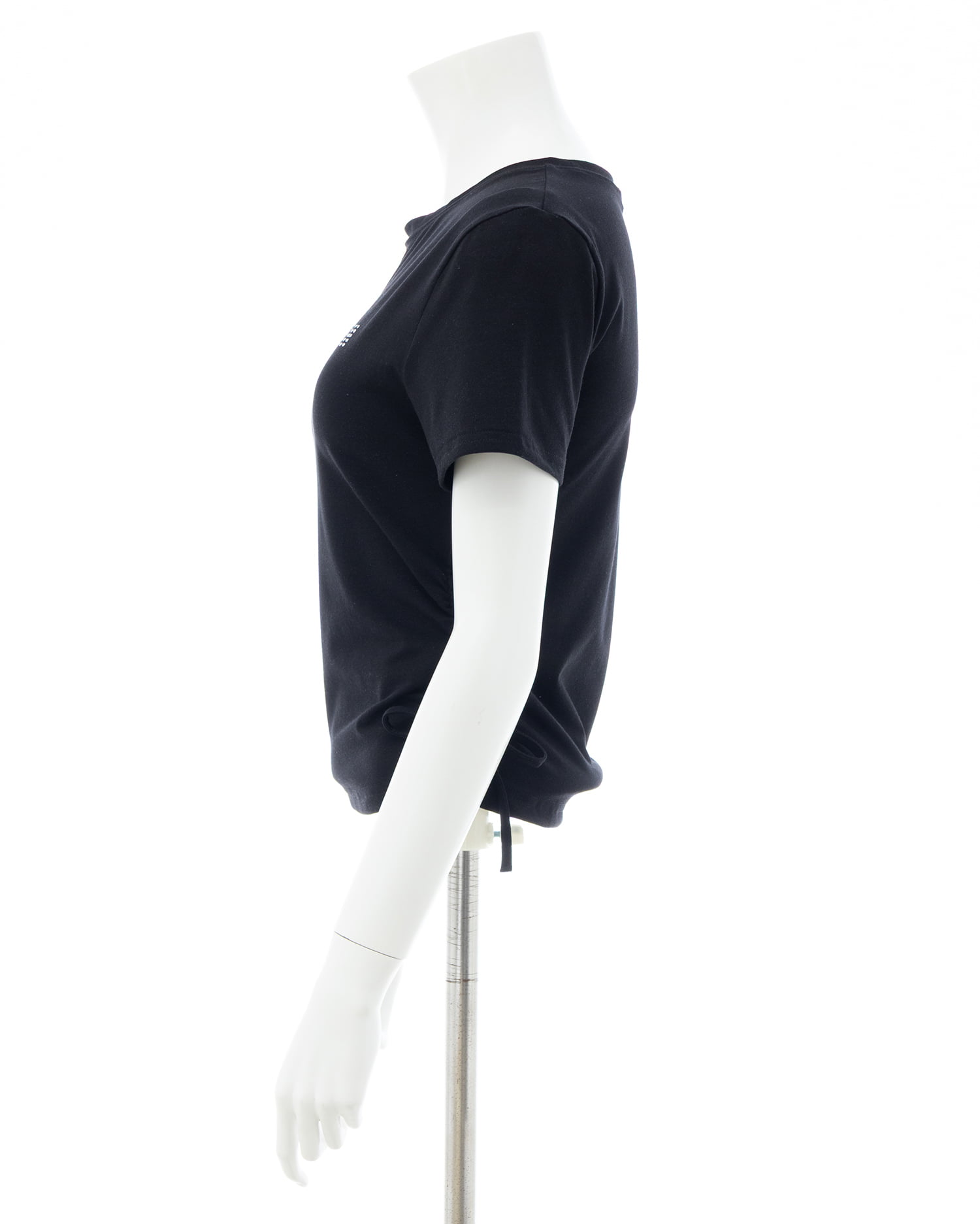 1261-100212 サイドギャザーリボンラインストーンロゴTシャツ