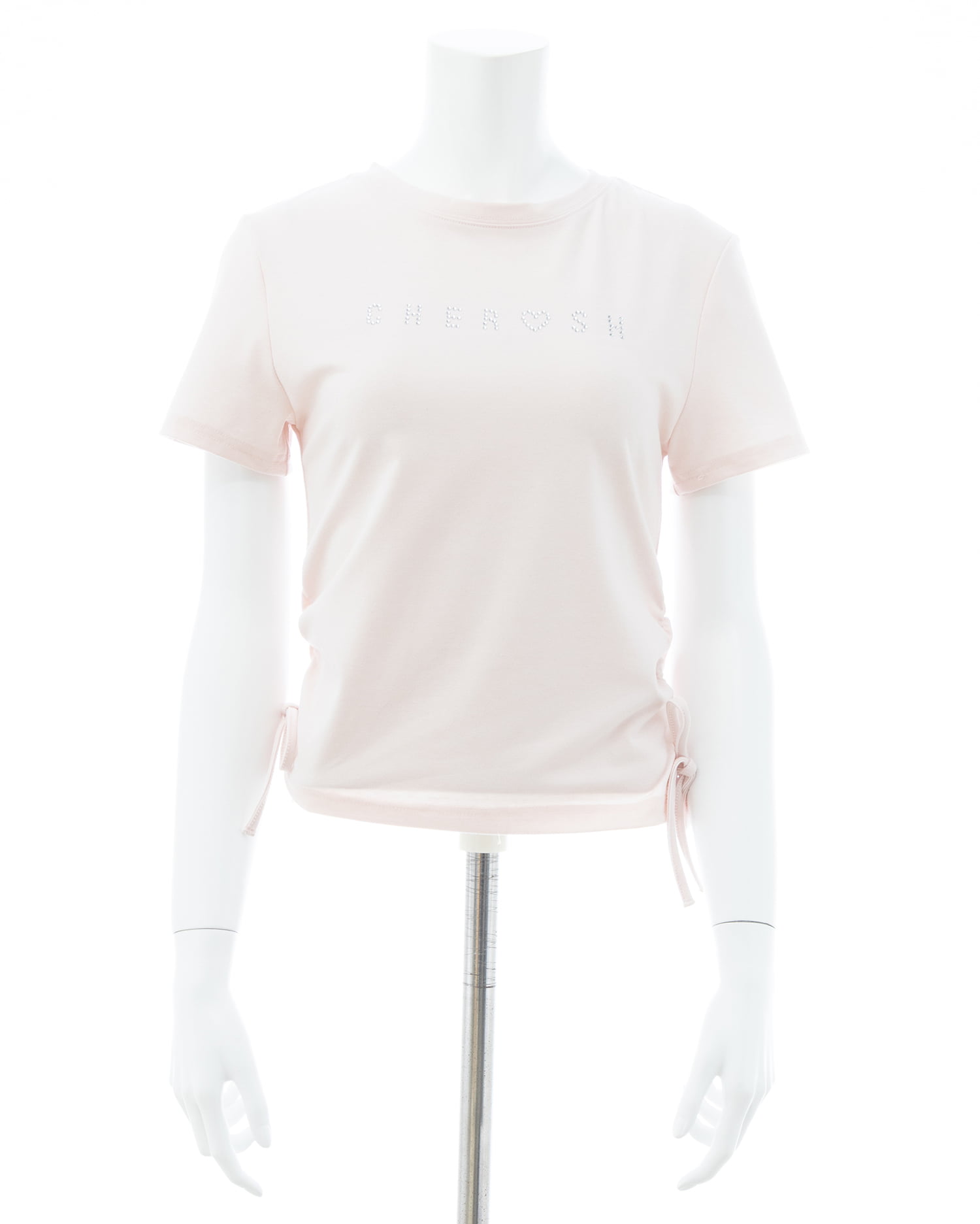 • INGNI(イング) サイドギャザーリボンラインストーンロゴTシャツ ライトピンク