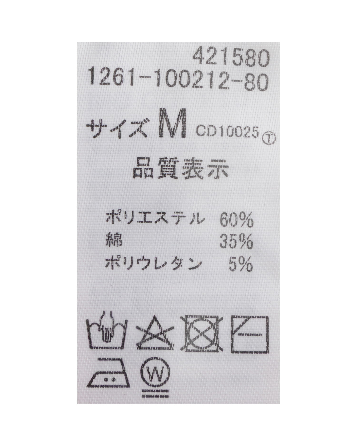 原産国 中国 ポリエステル60% 綿35% ポリウレタン5%