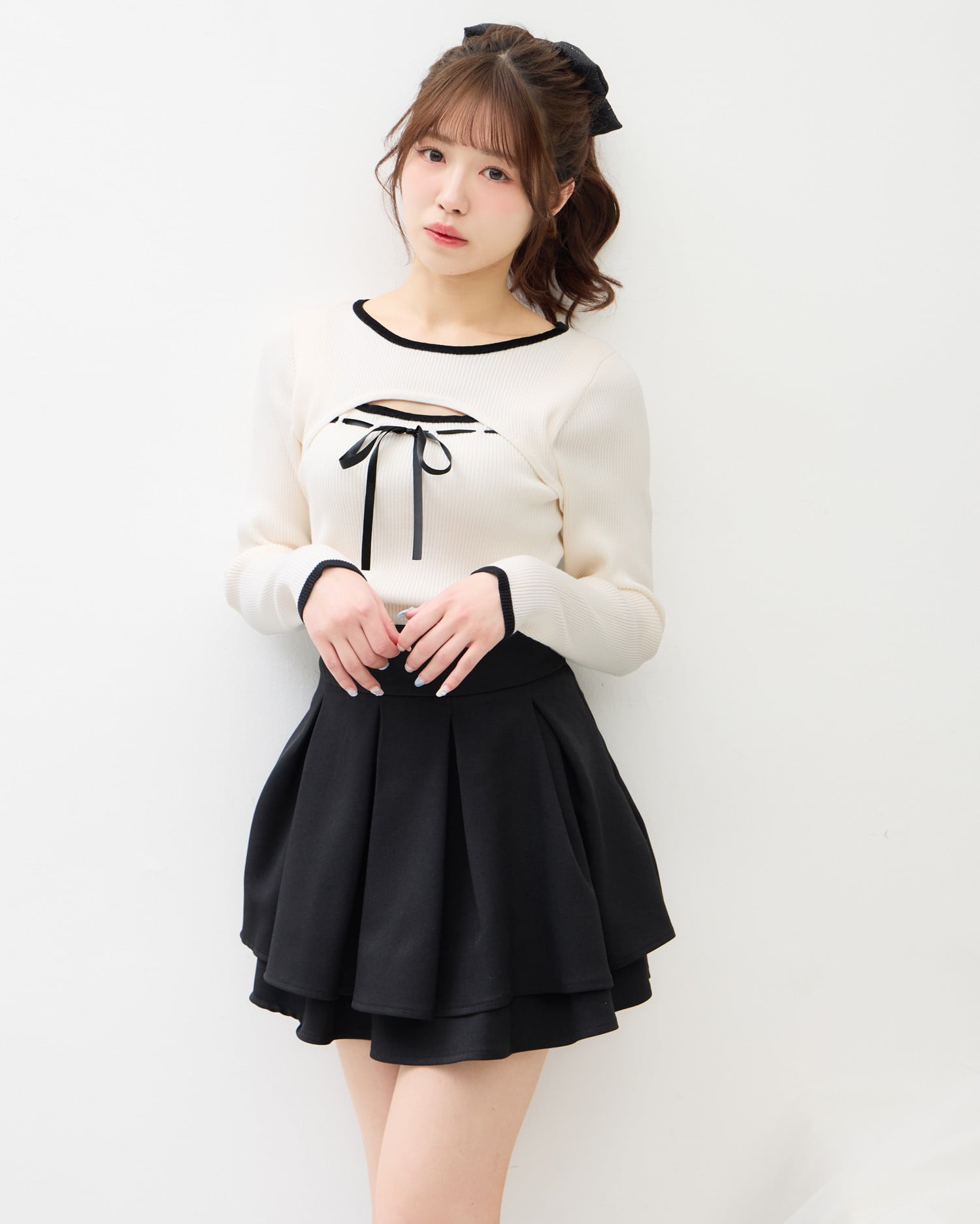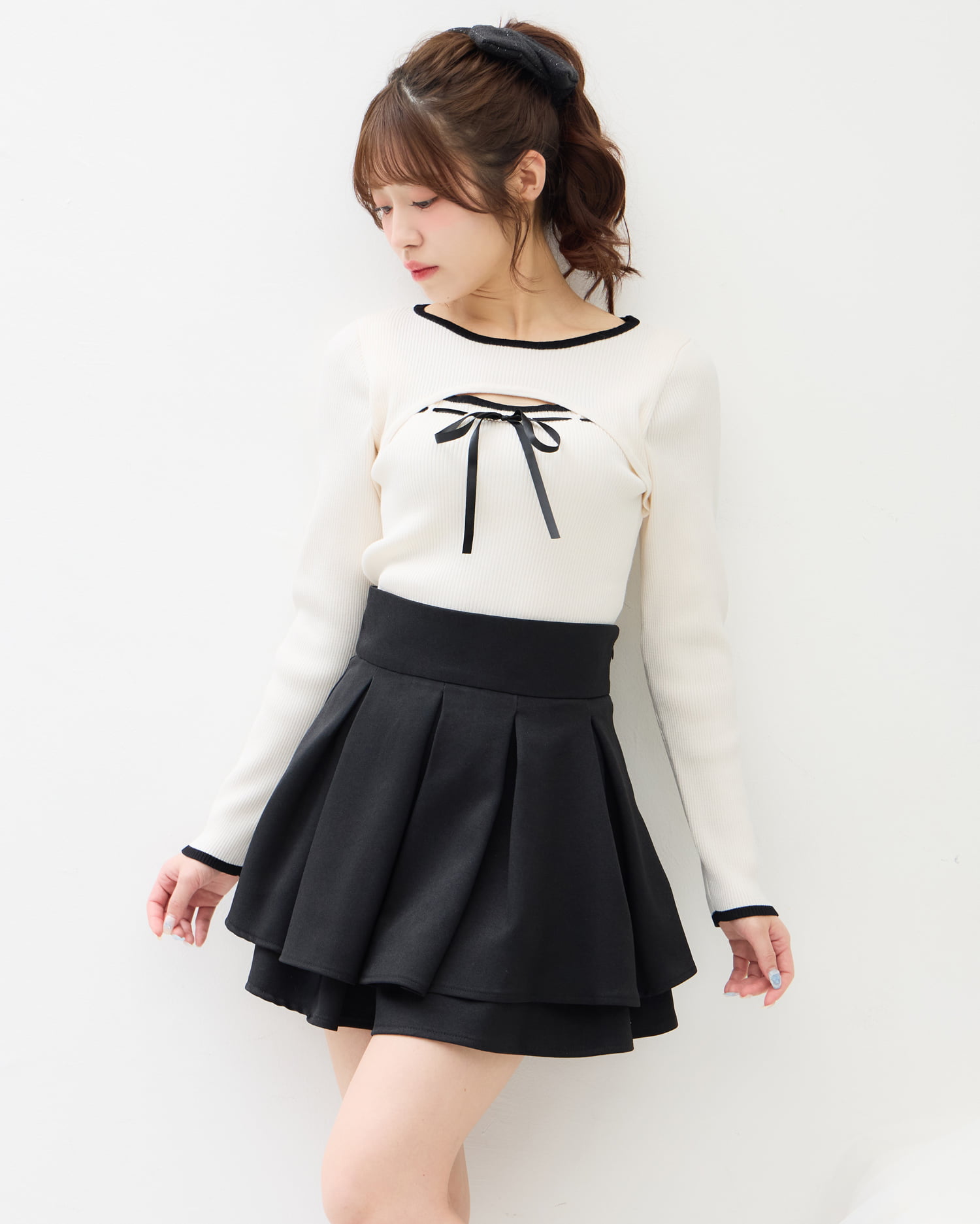 バックのレースアップデザインで後ろ姿も抜かりナシのスカート。
