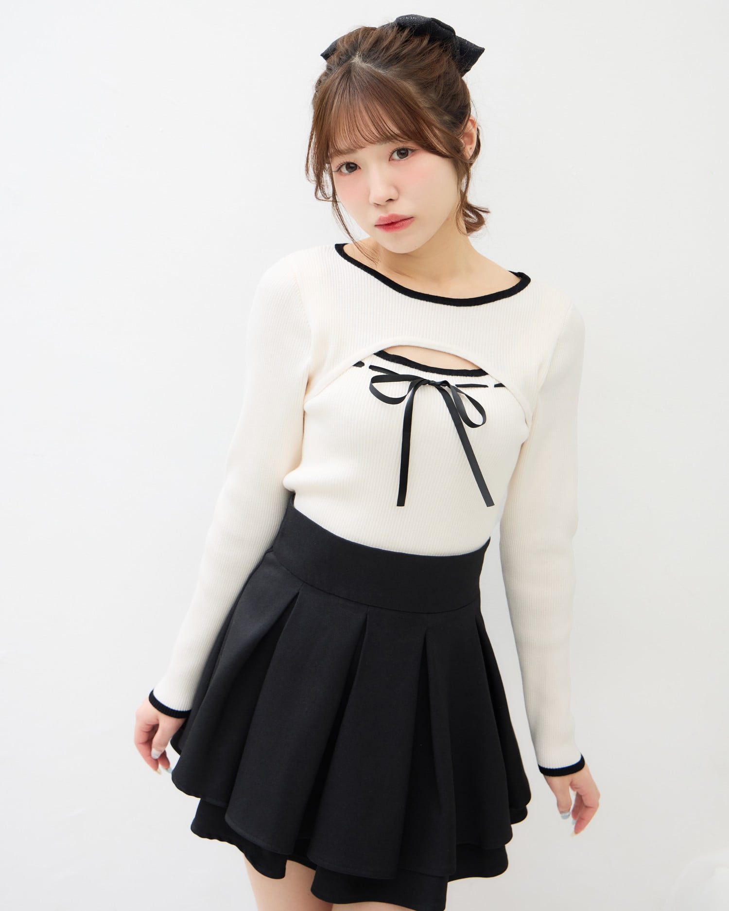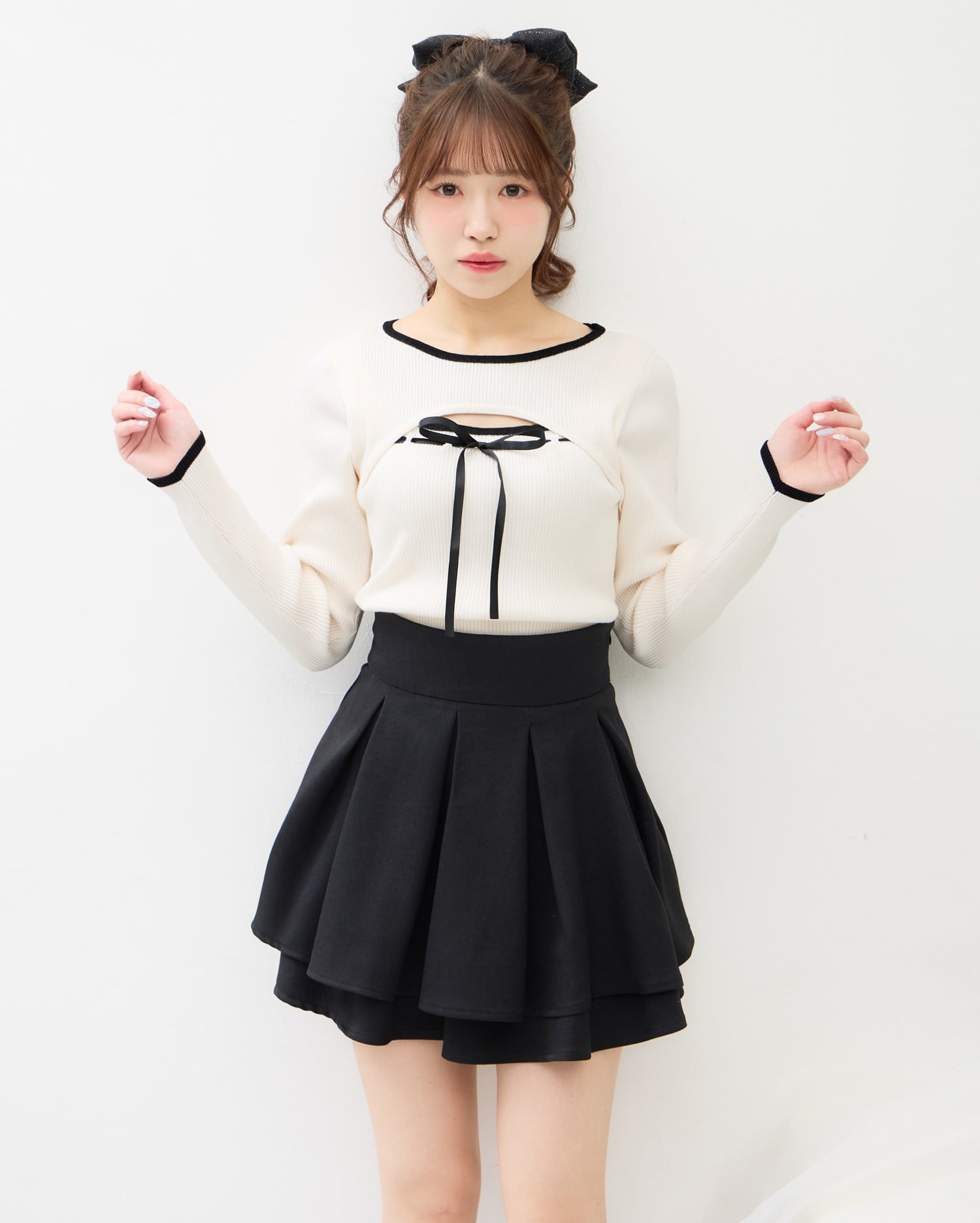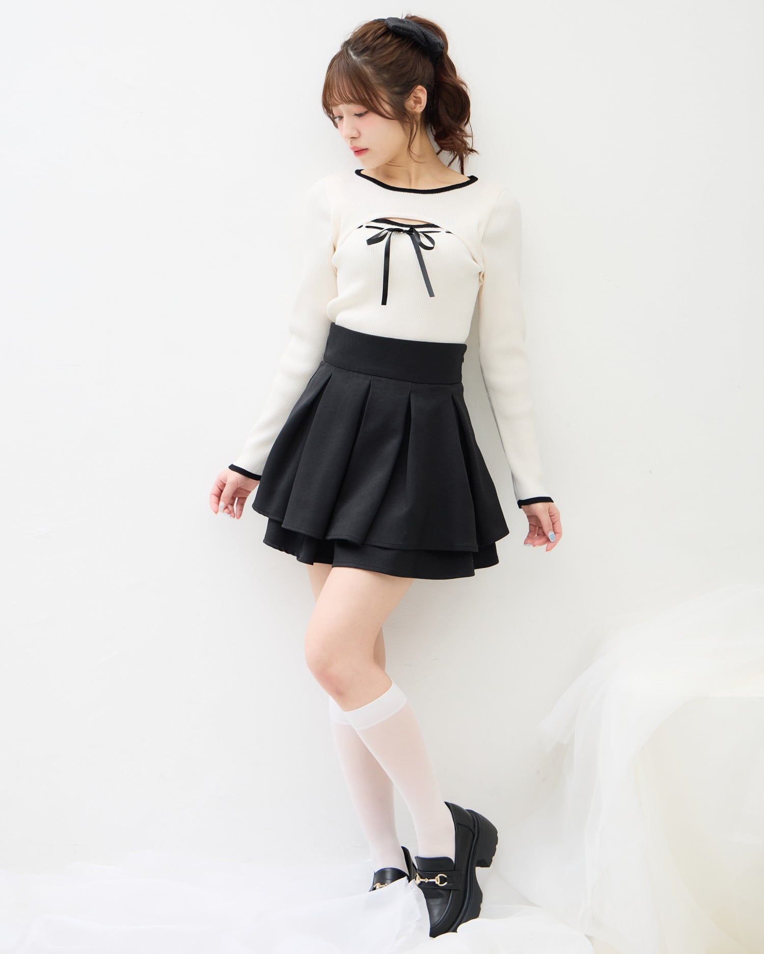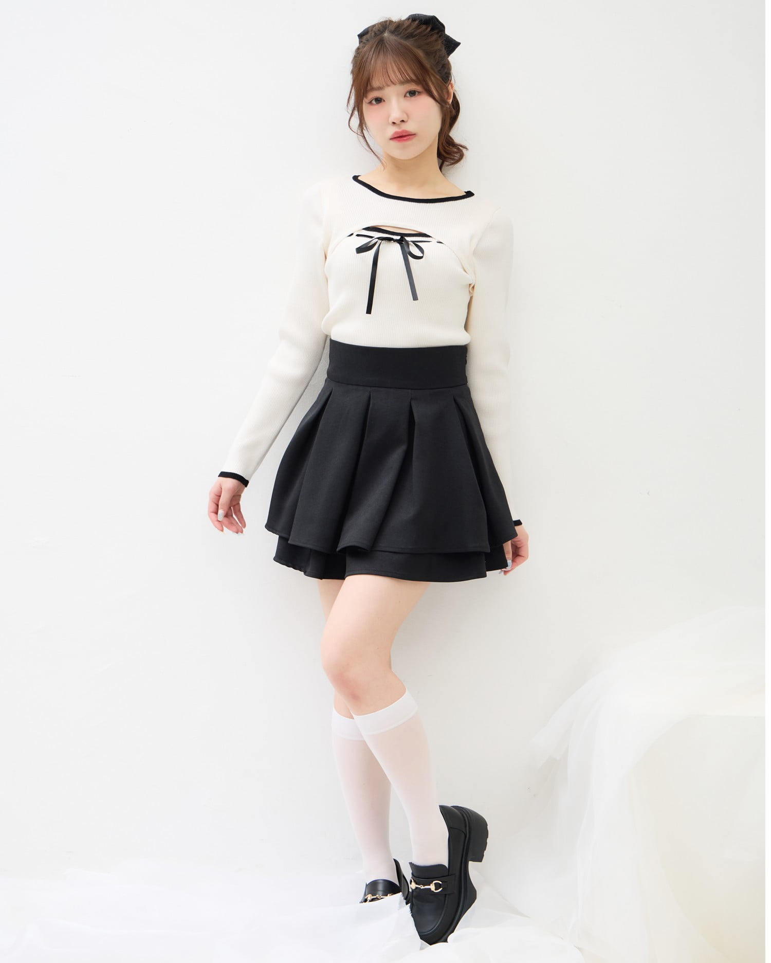 幅広のプリーツデザインでクラシカルな雰囲気に仕上げています。