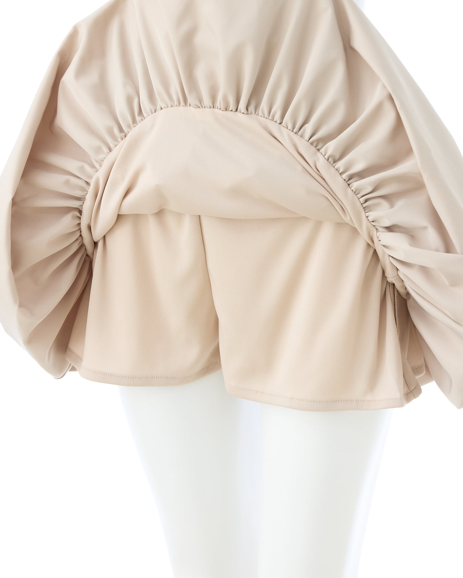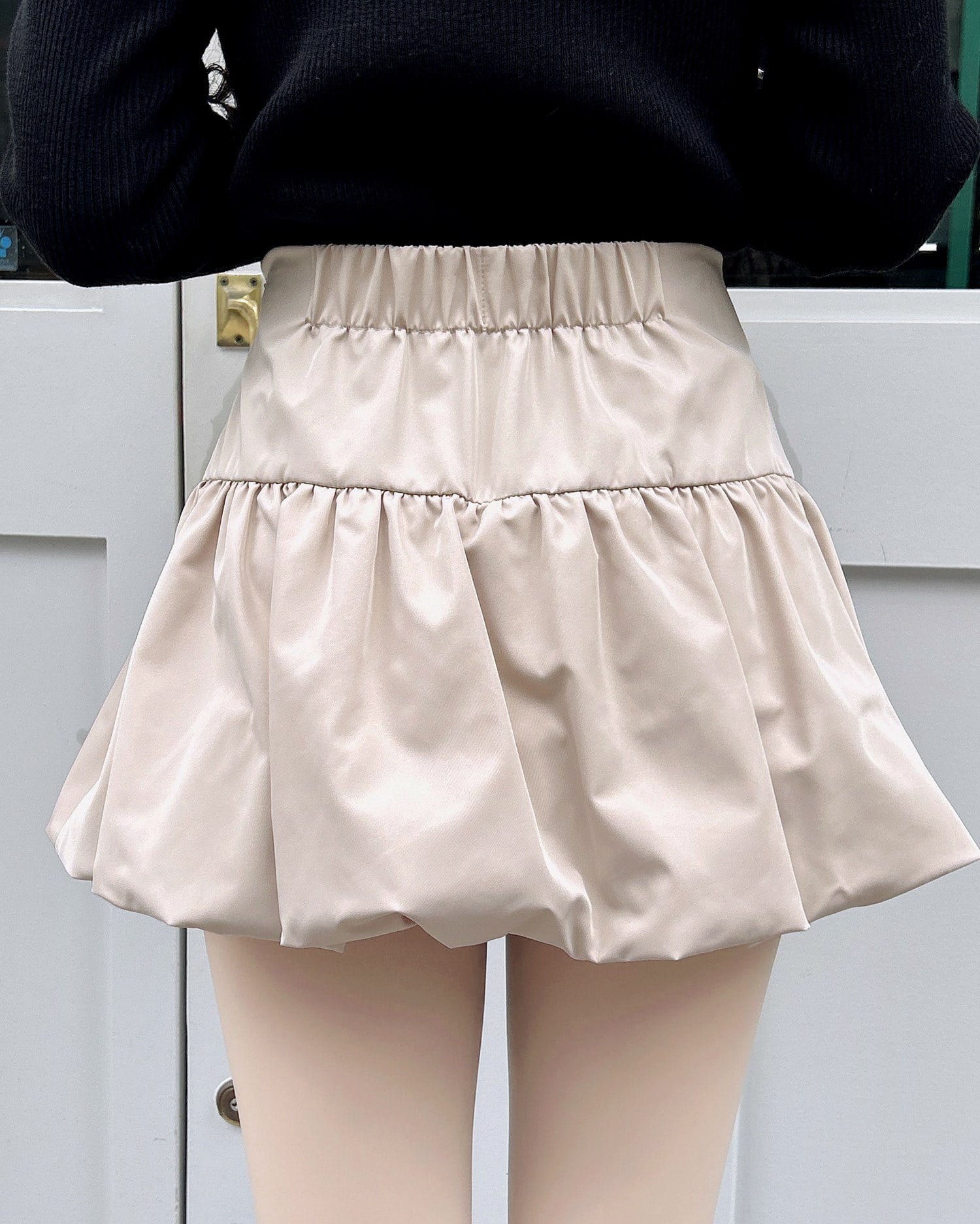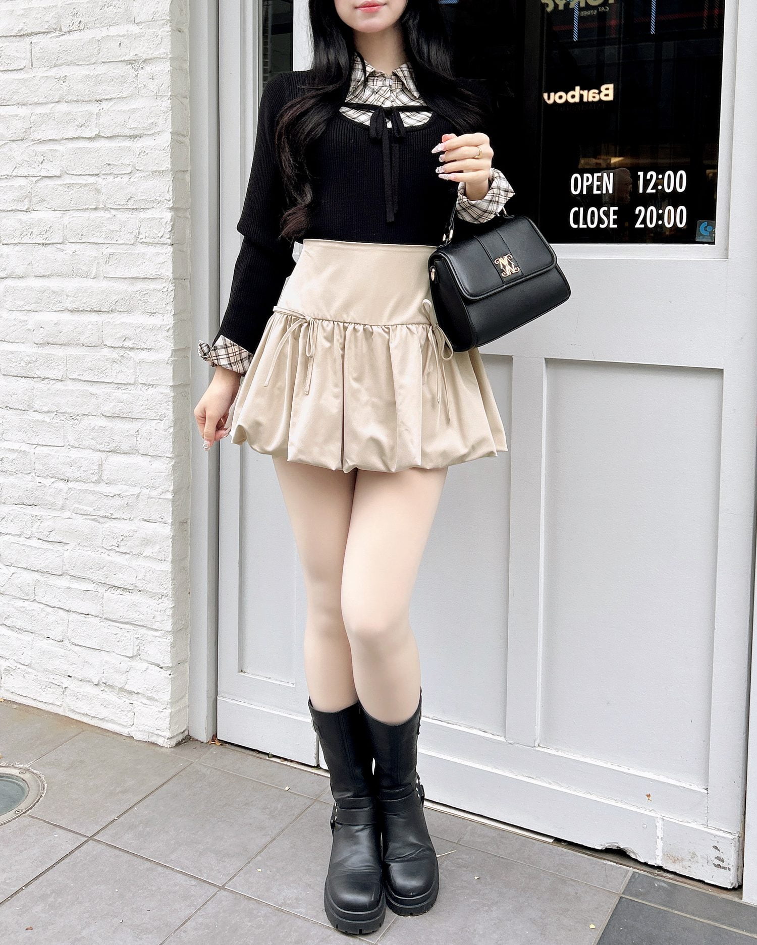 裾へ向かって広がるバルーンシルエットで美脚も叶えてくれます。