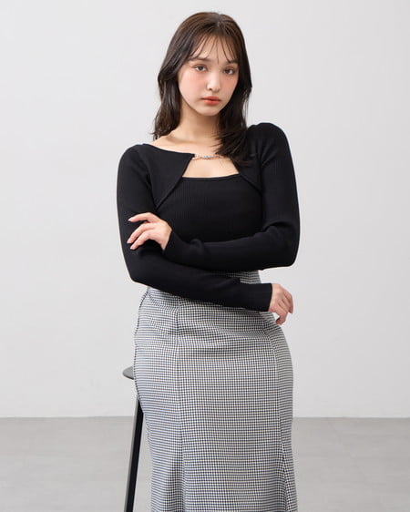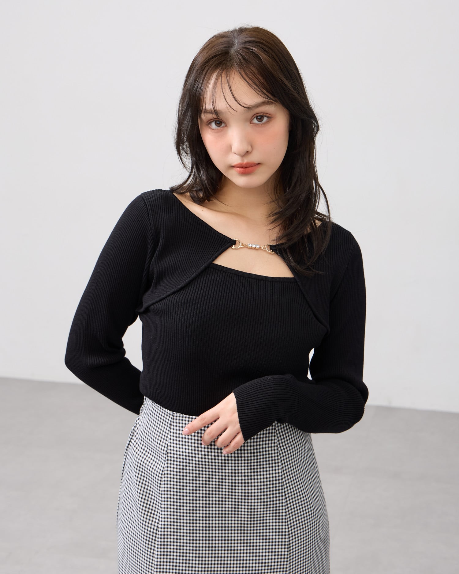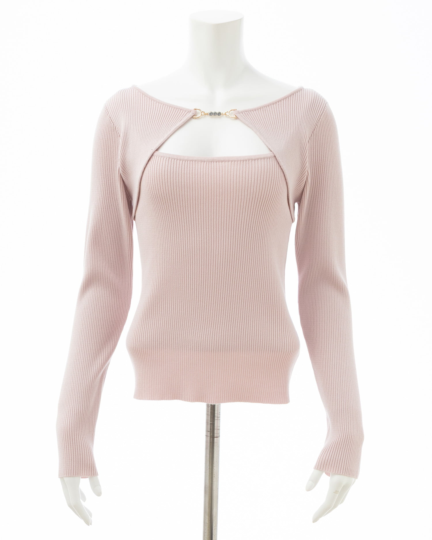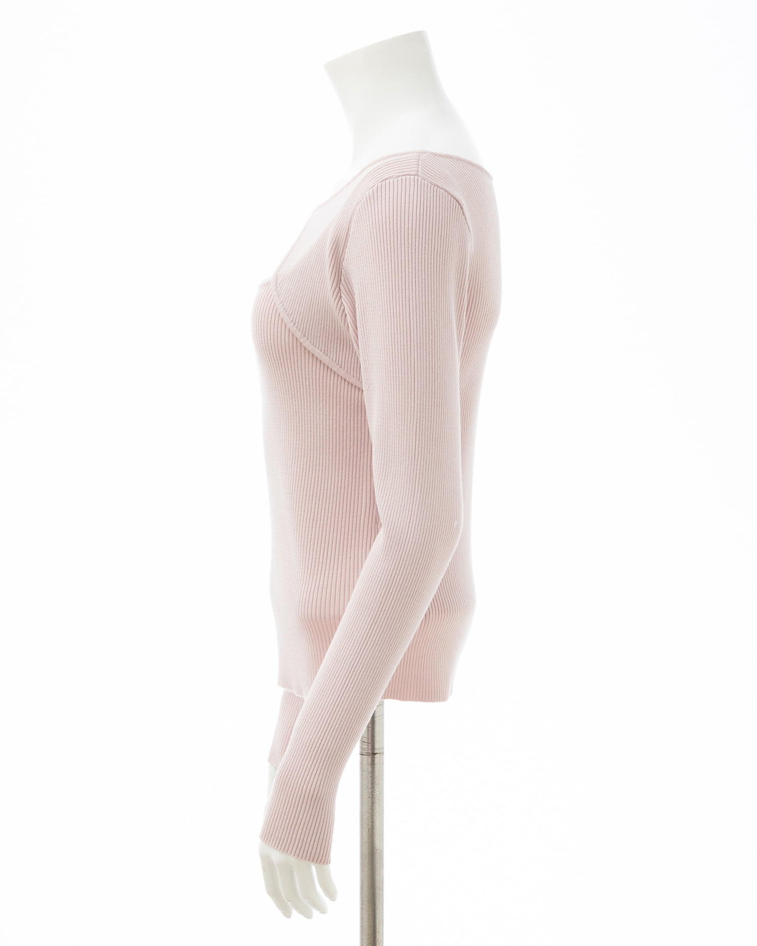 【デコルテ部分のビットが上品な印象を与えてくれるニットトップス】