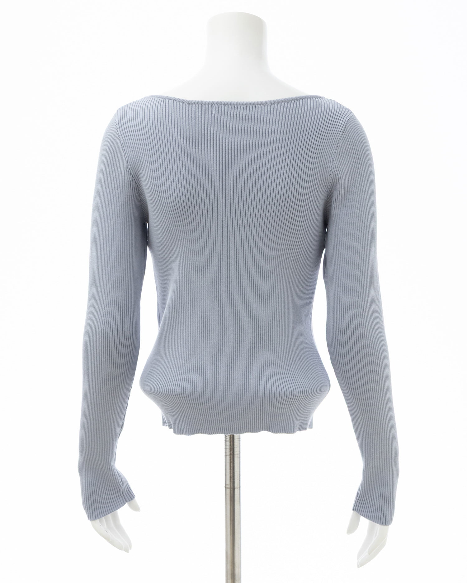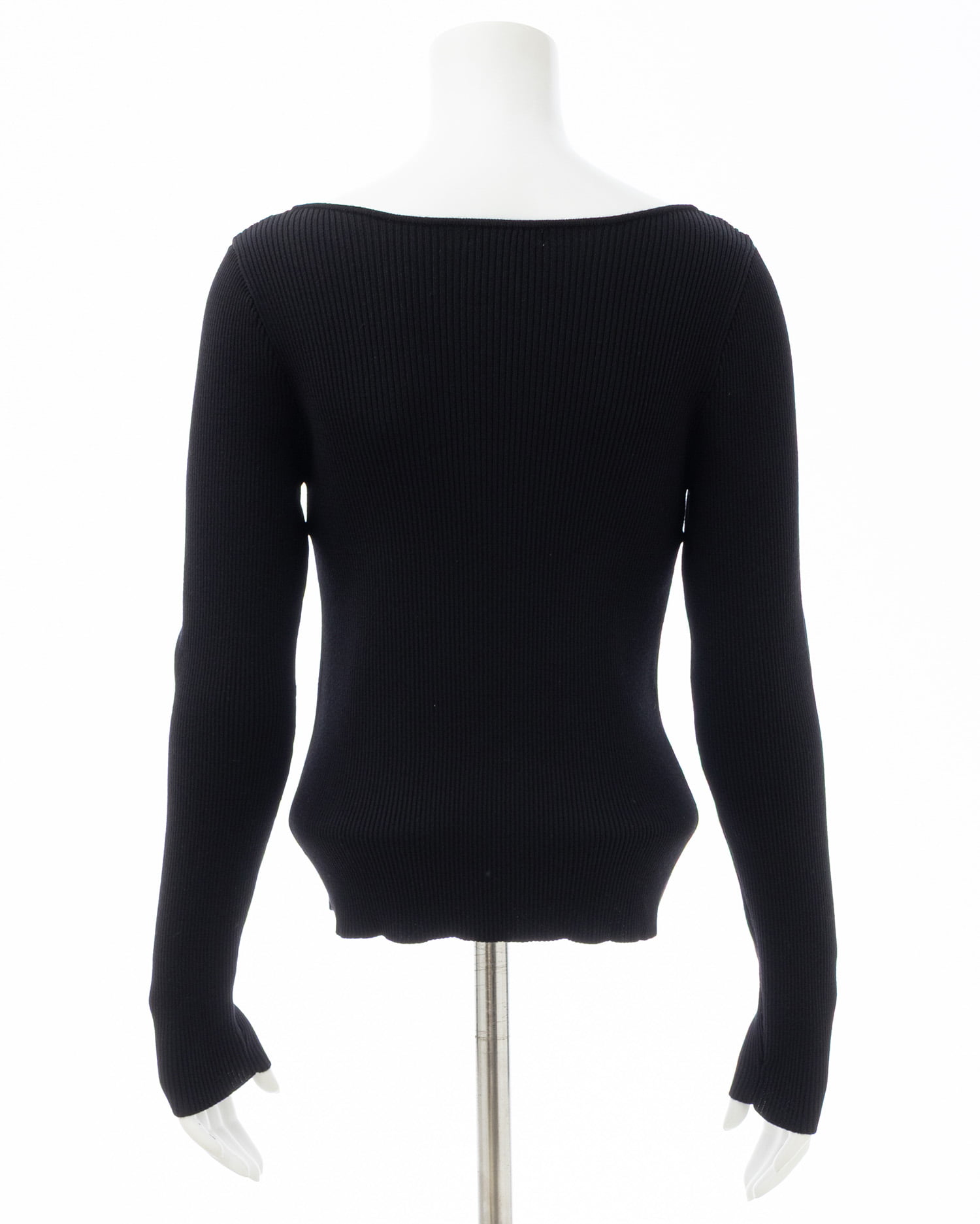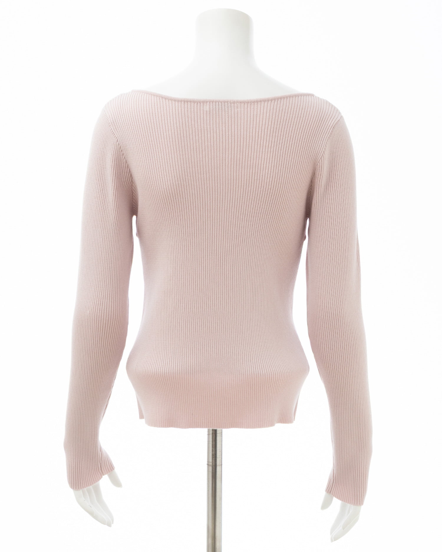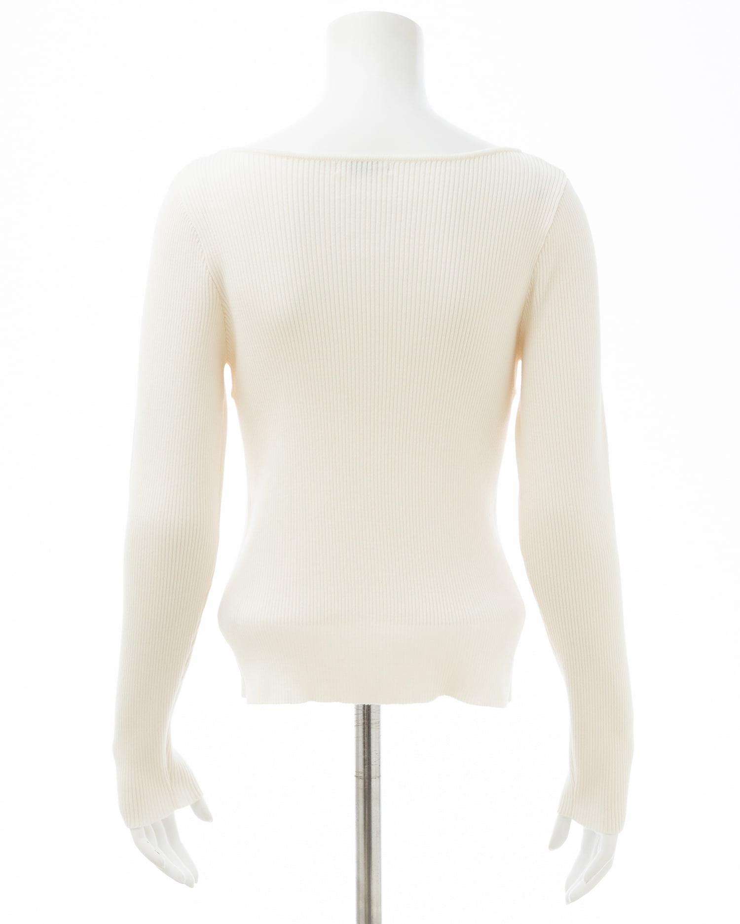 広めのスクエアネックにあしらったビットが華やかなニットトップスです。