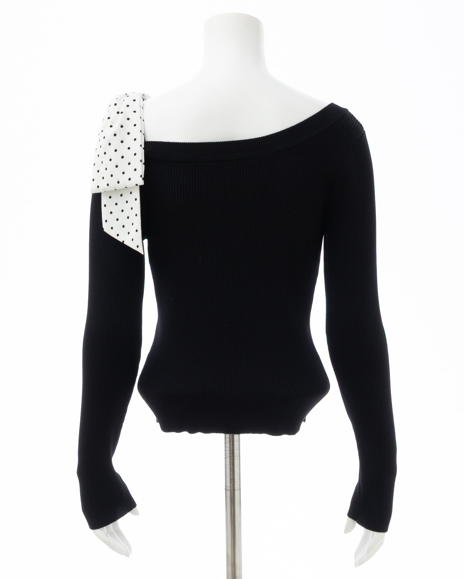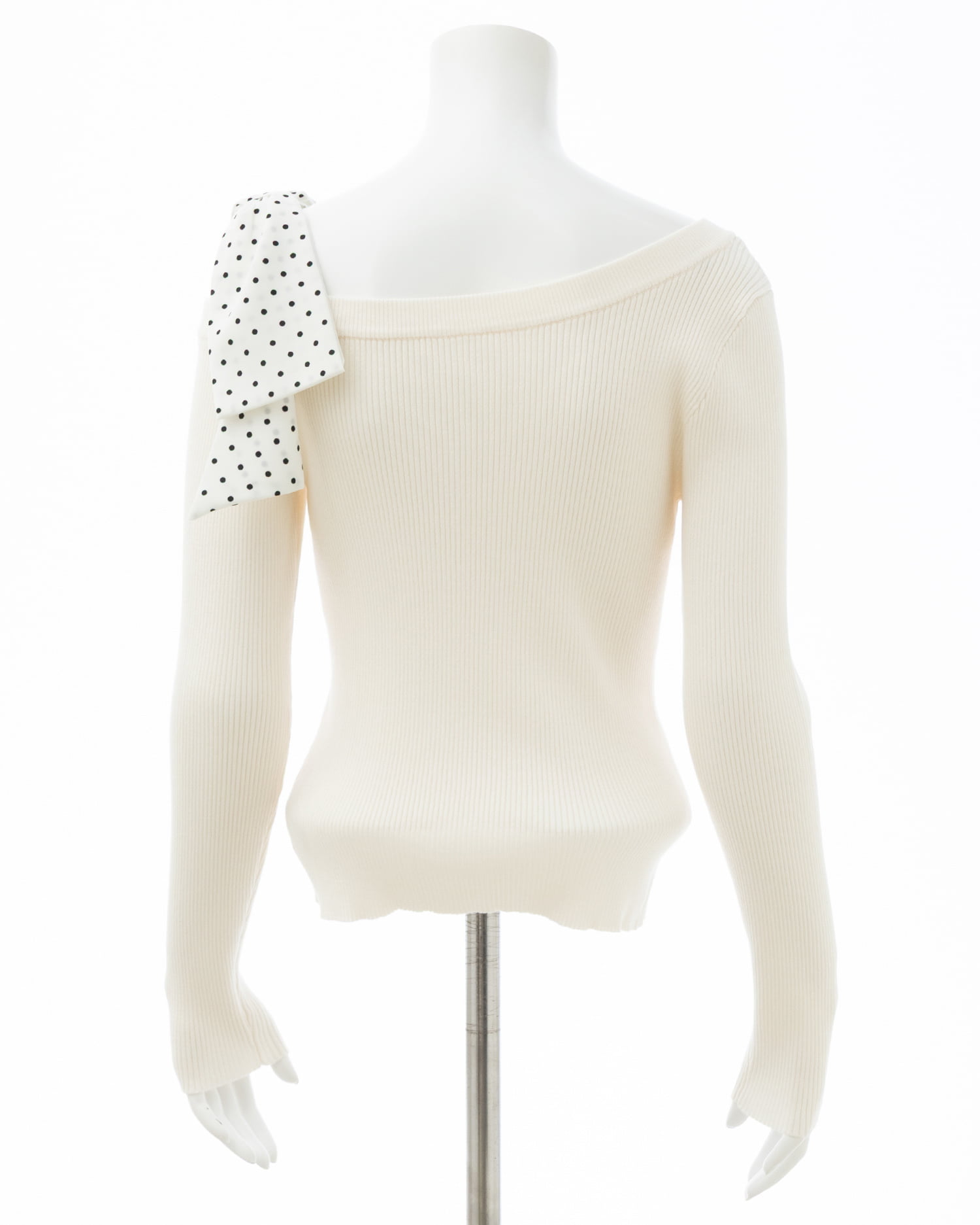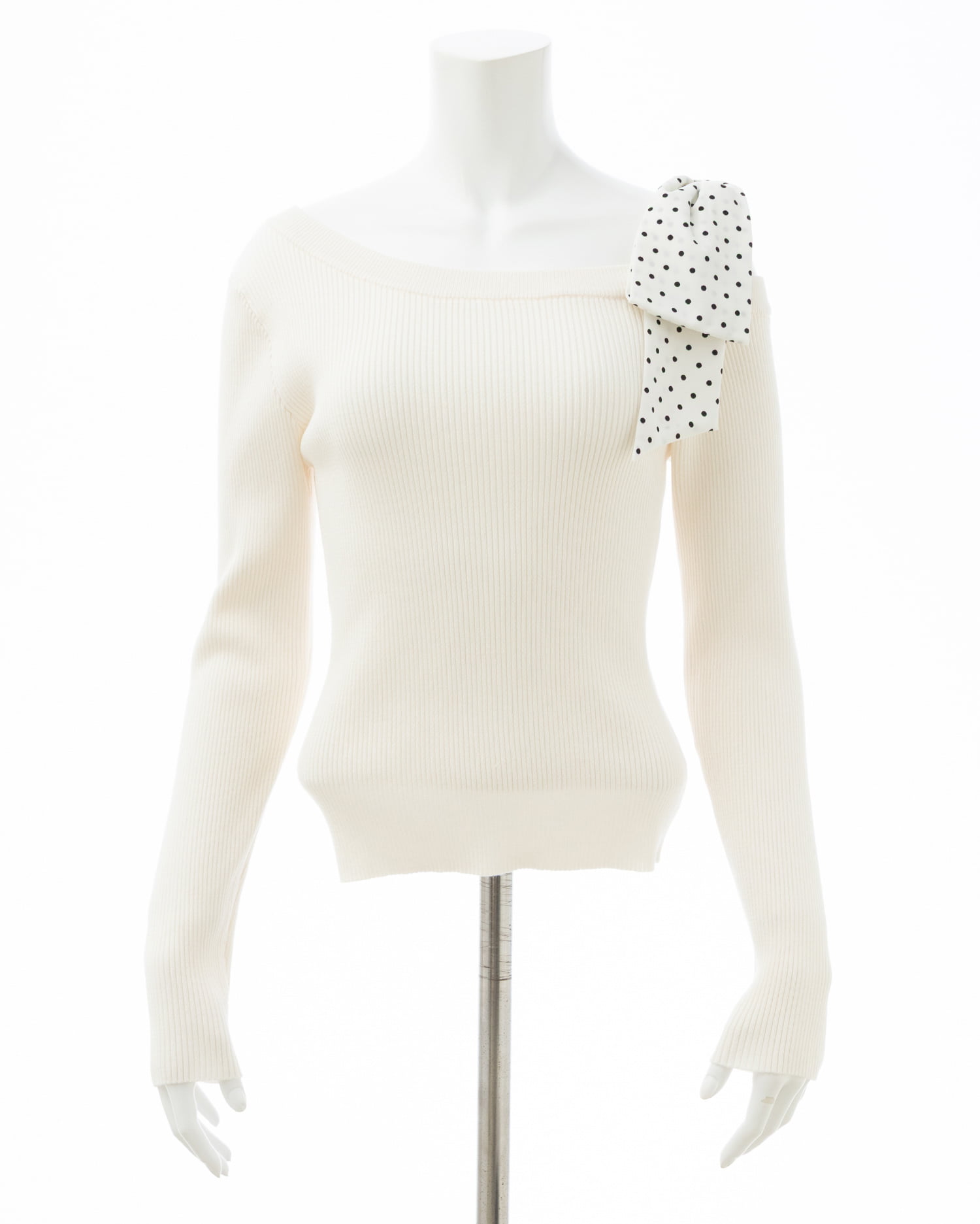 【ドットリボンがインパクトありのワンショルニットトップス】