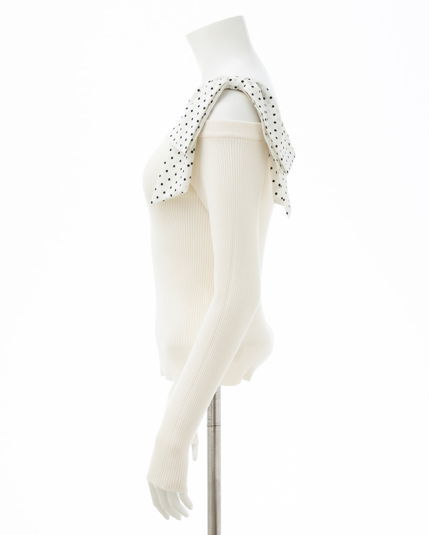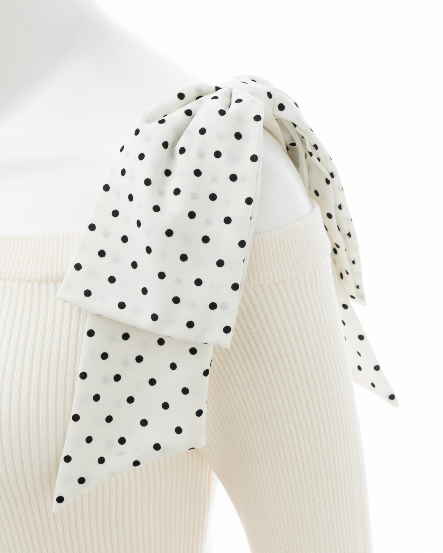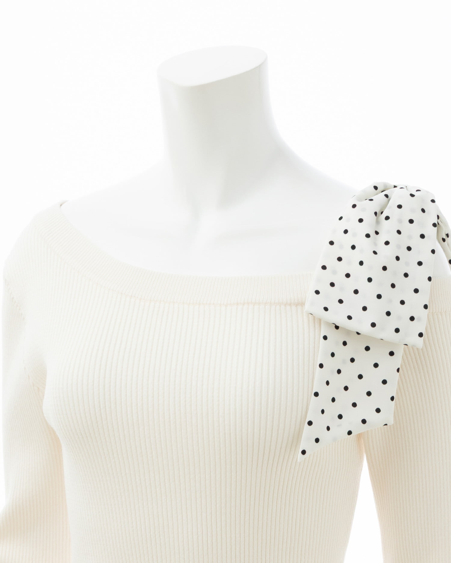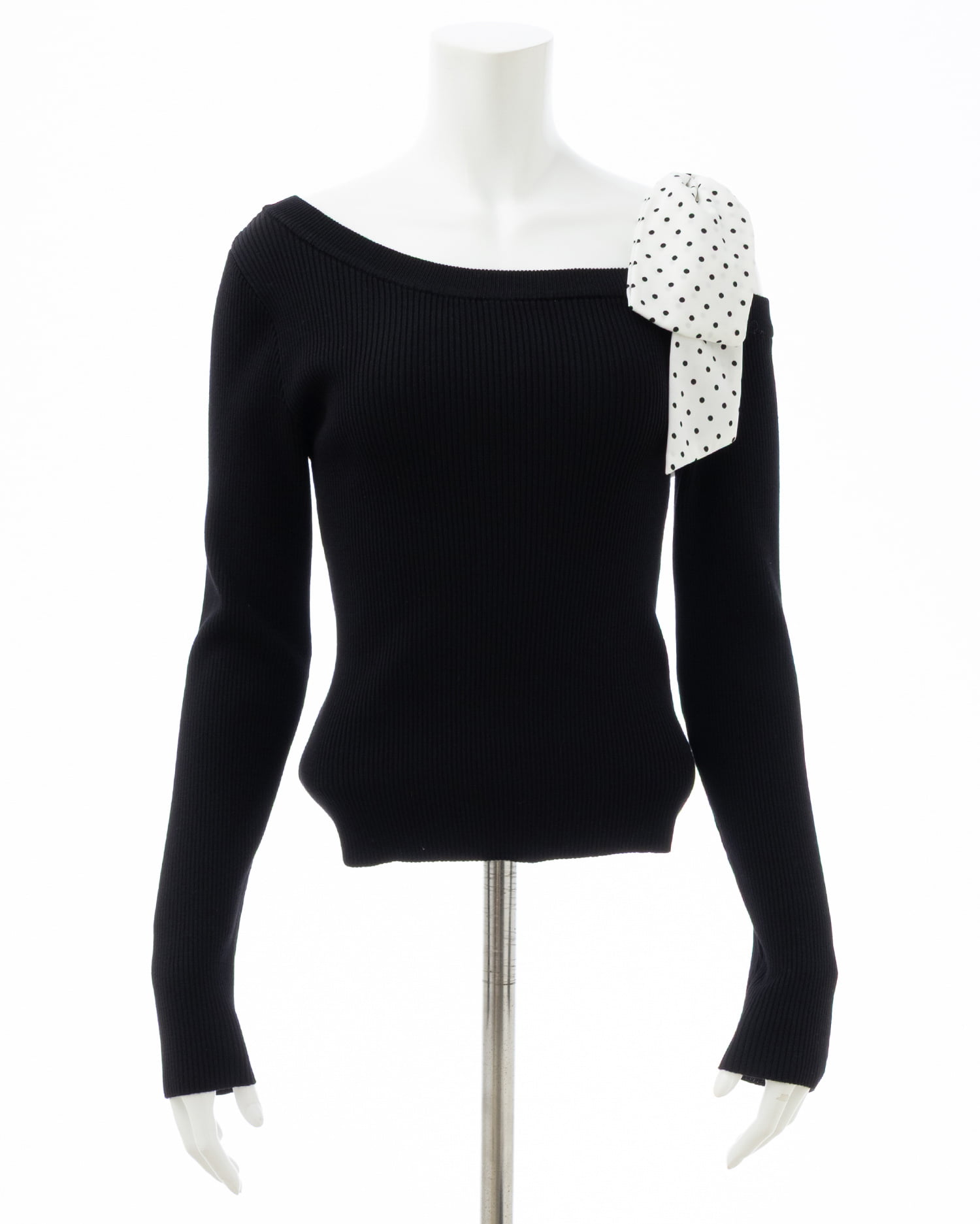【ドットリボンがインパクトありのワンショルニットトップス】