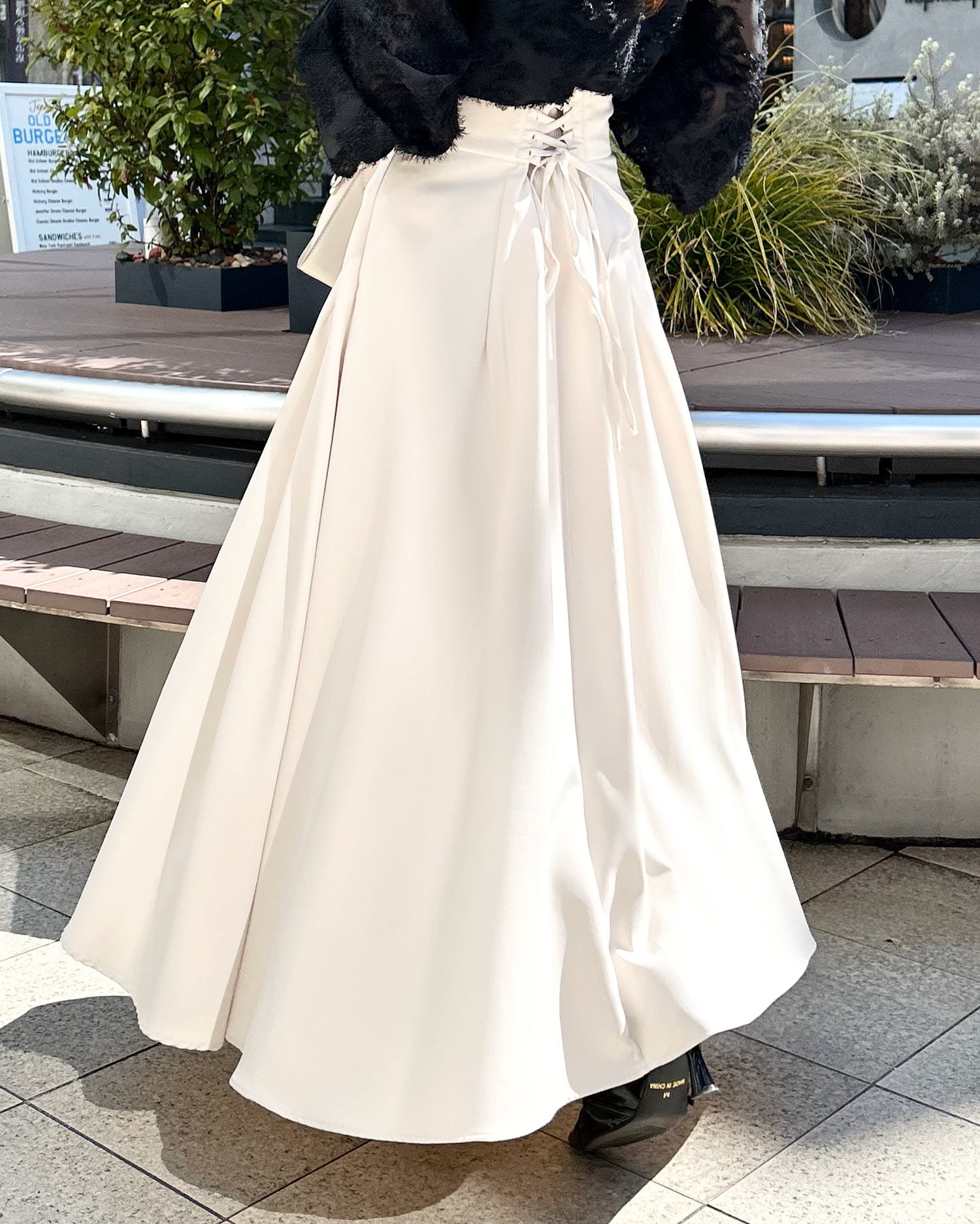 オンオフ問わずに着まわせるロング丈のスカートです。