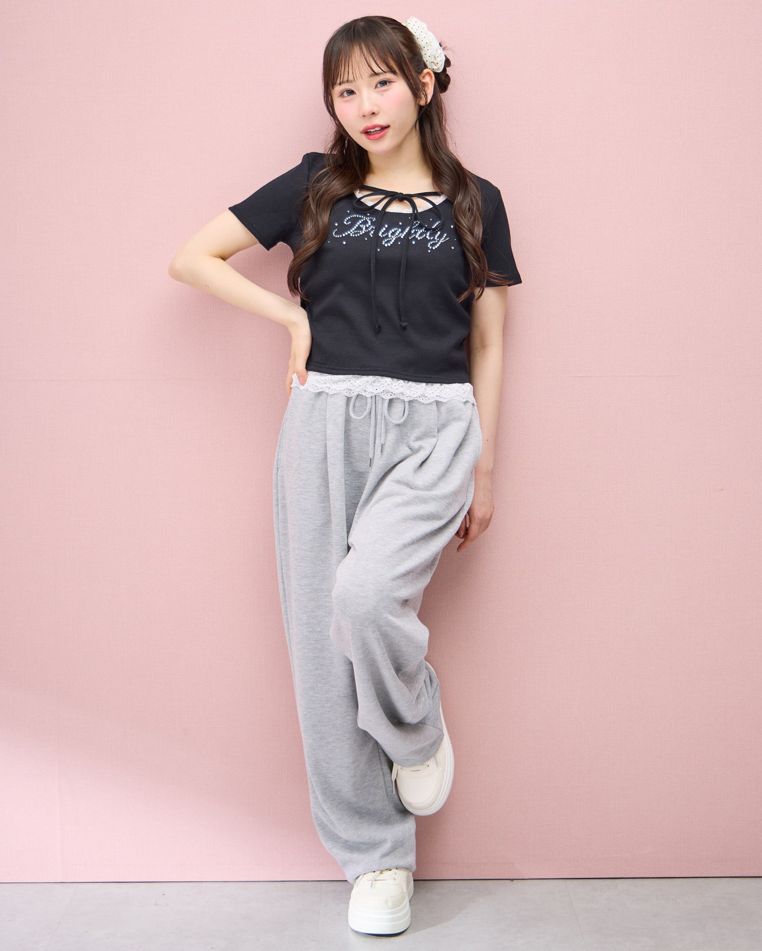 ★同生地の【レース付ダブルジップスウェットチュニックパーカー】とセットアップで着用可能です♪