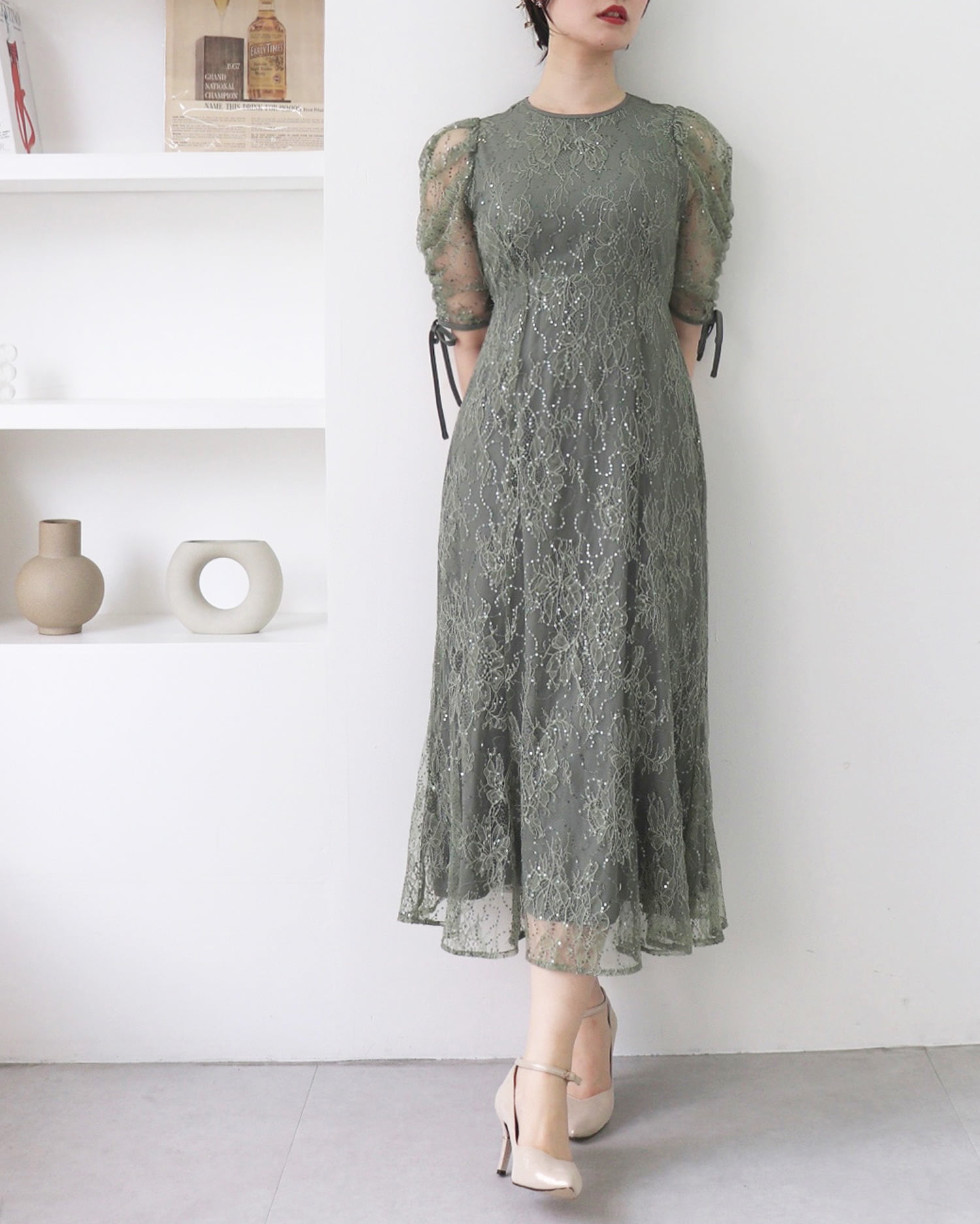 1999-500064 【11/11までの限定価格】【オケージョン】スパンコールレースワンピース