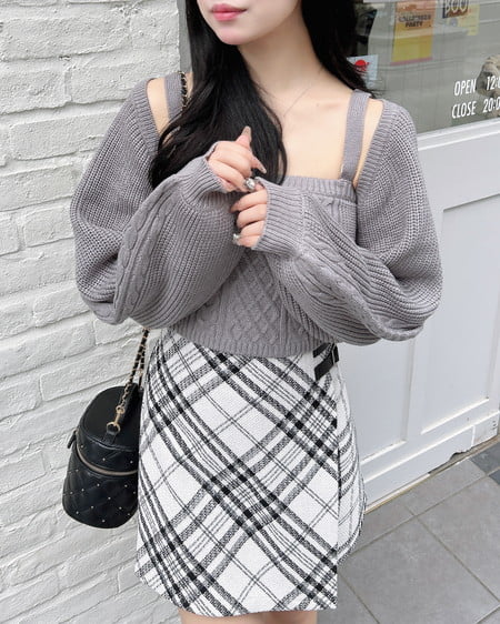 ショート丈のボレロとすっきりシルエットのキャミソールがセットになっています。