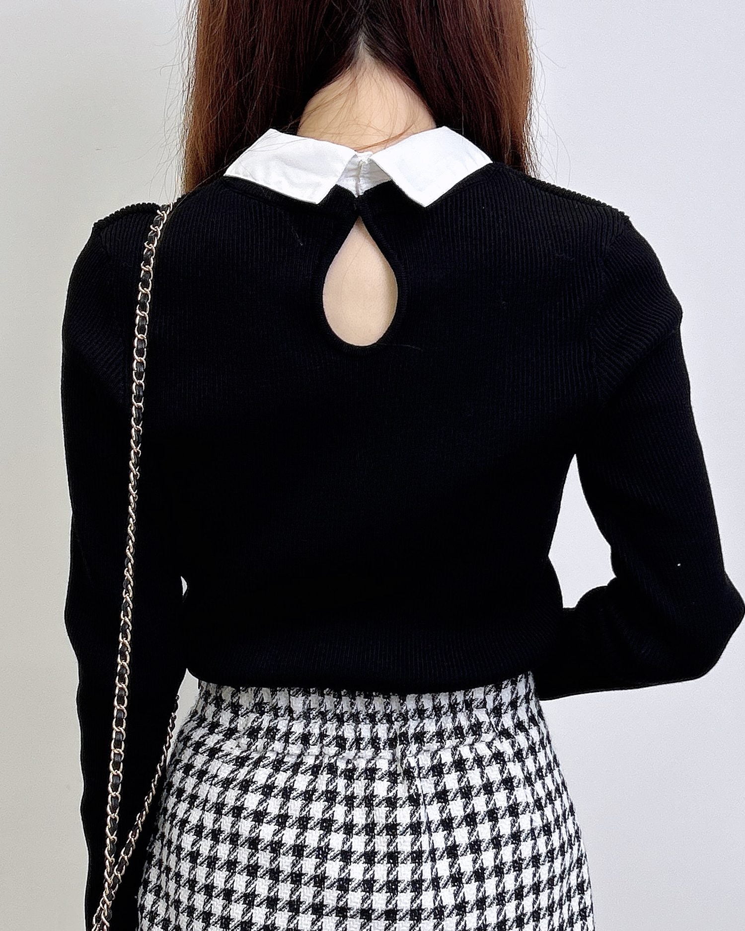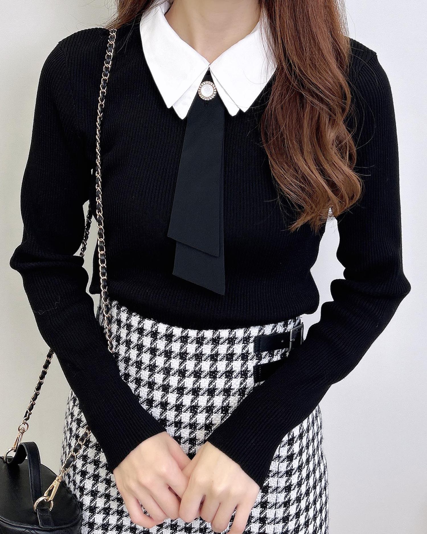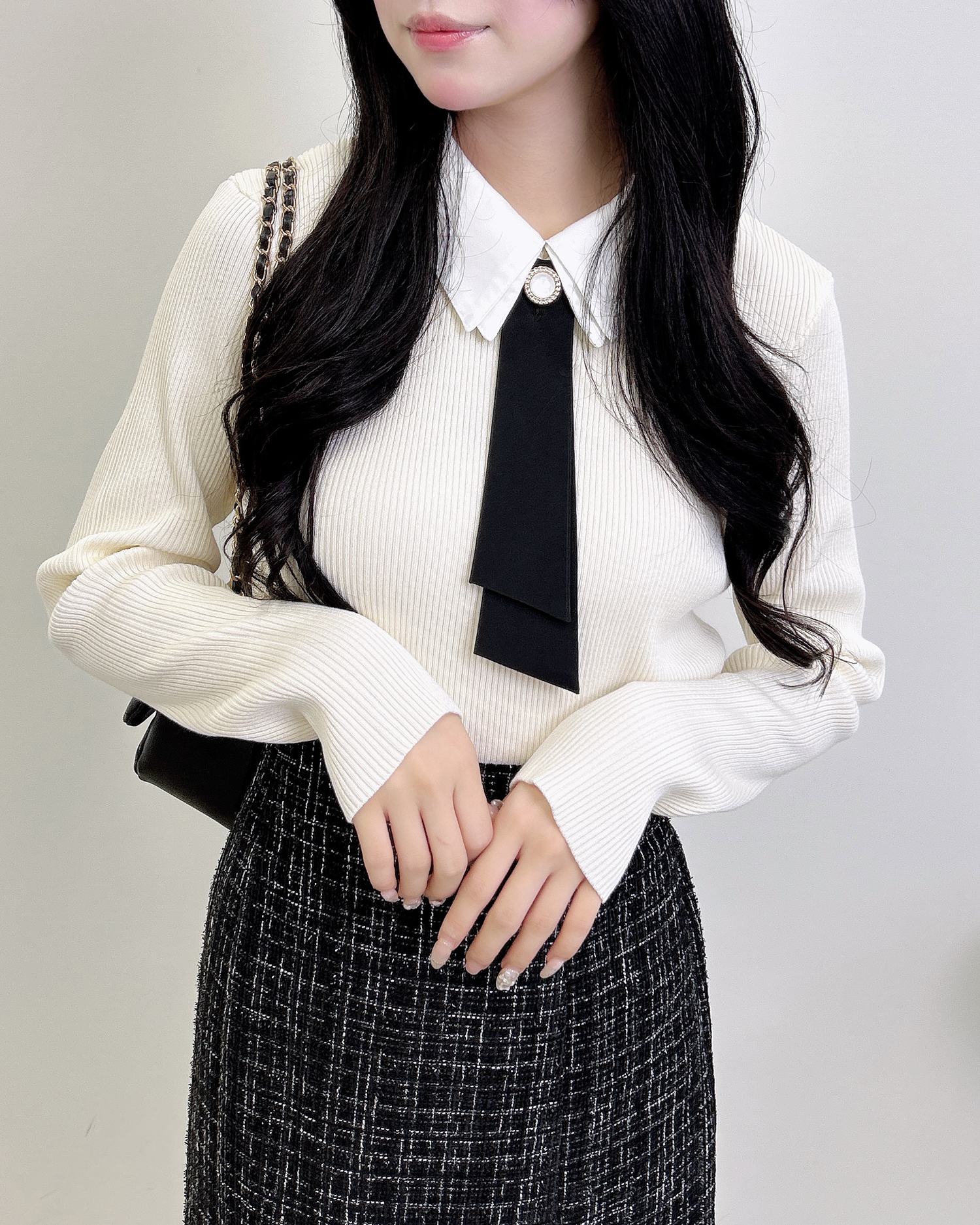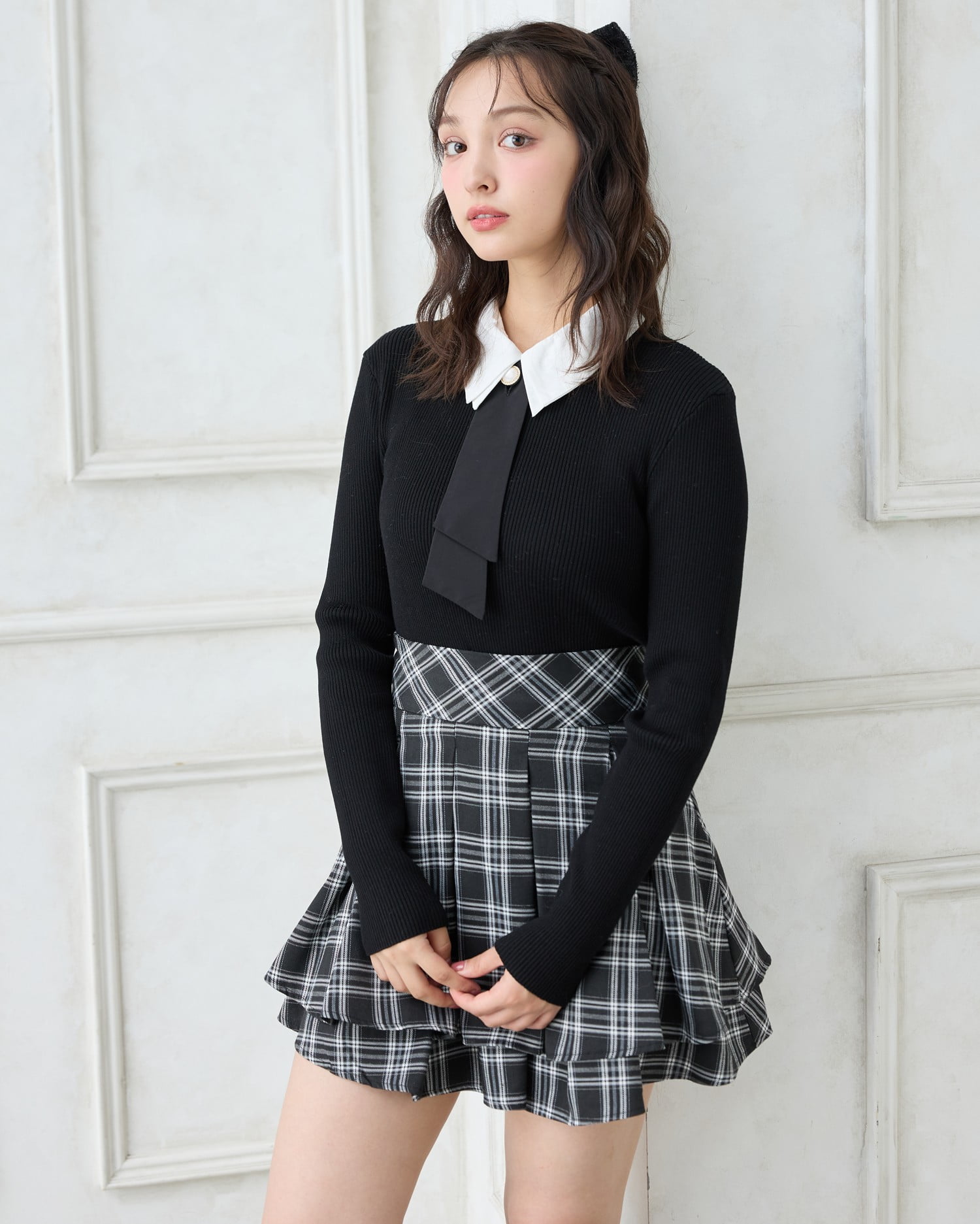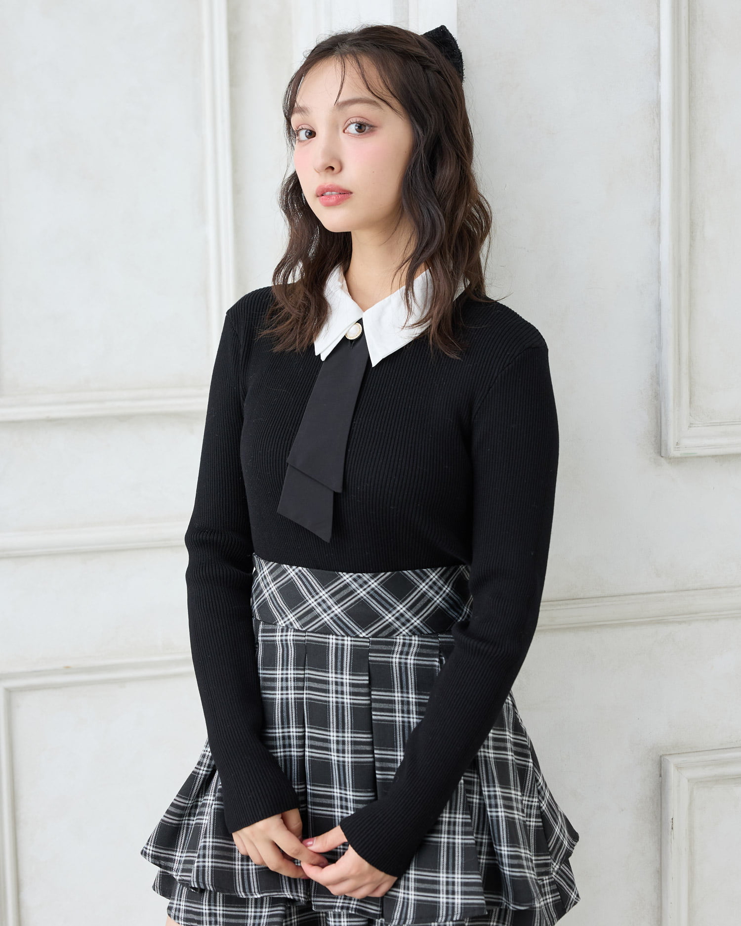 • INGNI(イング) 【WEB限定】襟付ボウタイニット クロ
