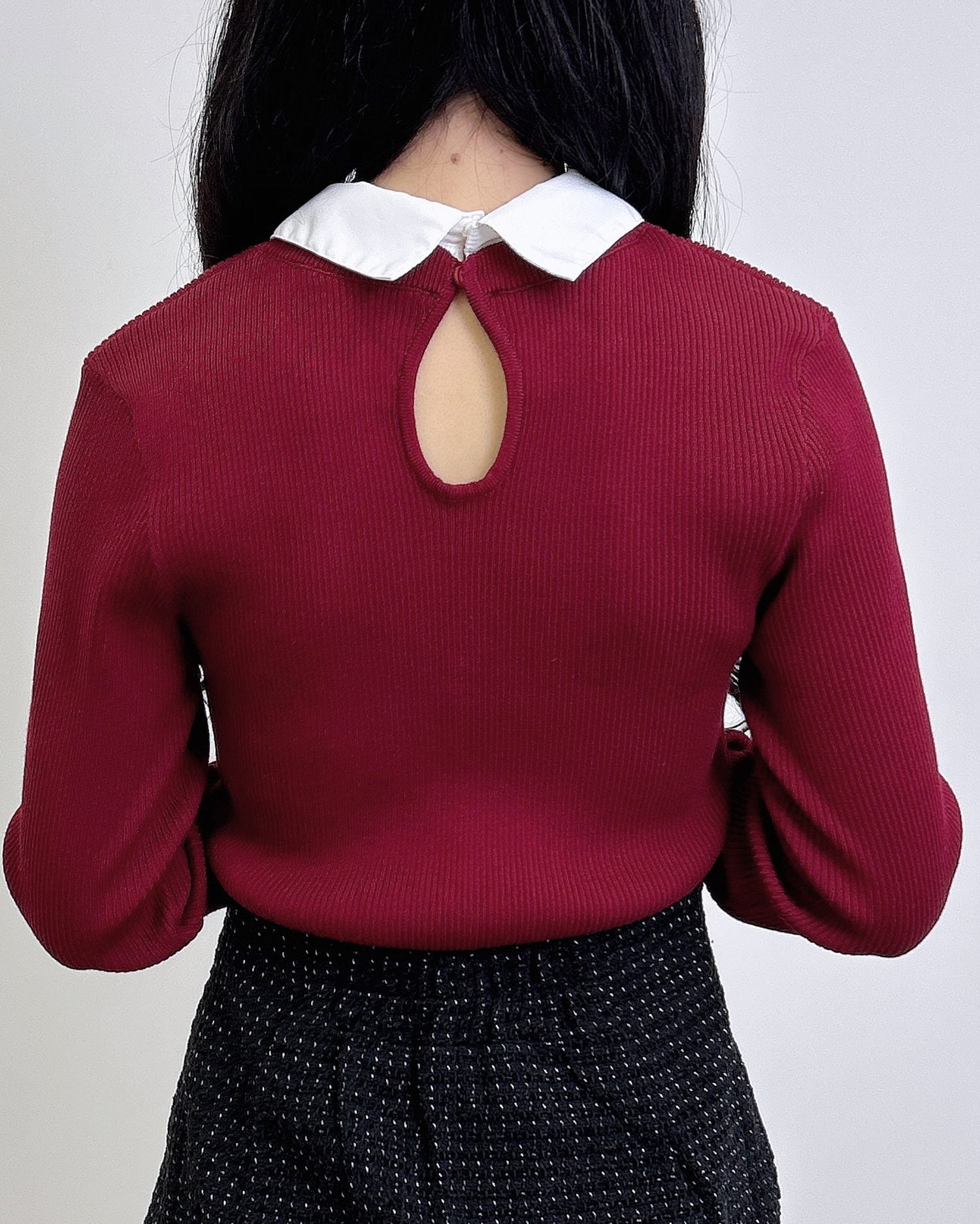 • INGNI(イング) 【WEB限定】襟付ボウタイニット ボルドー