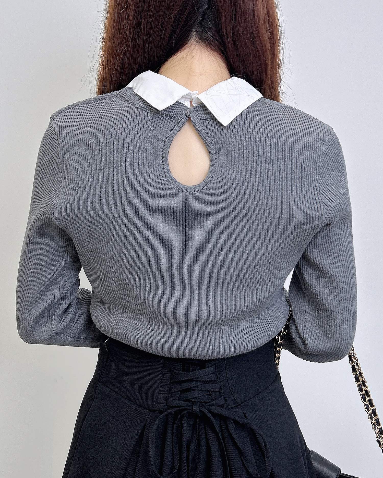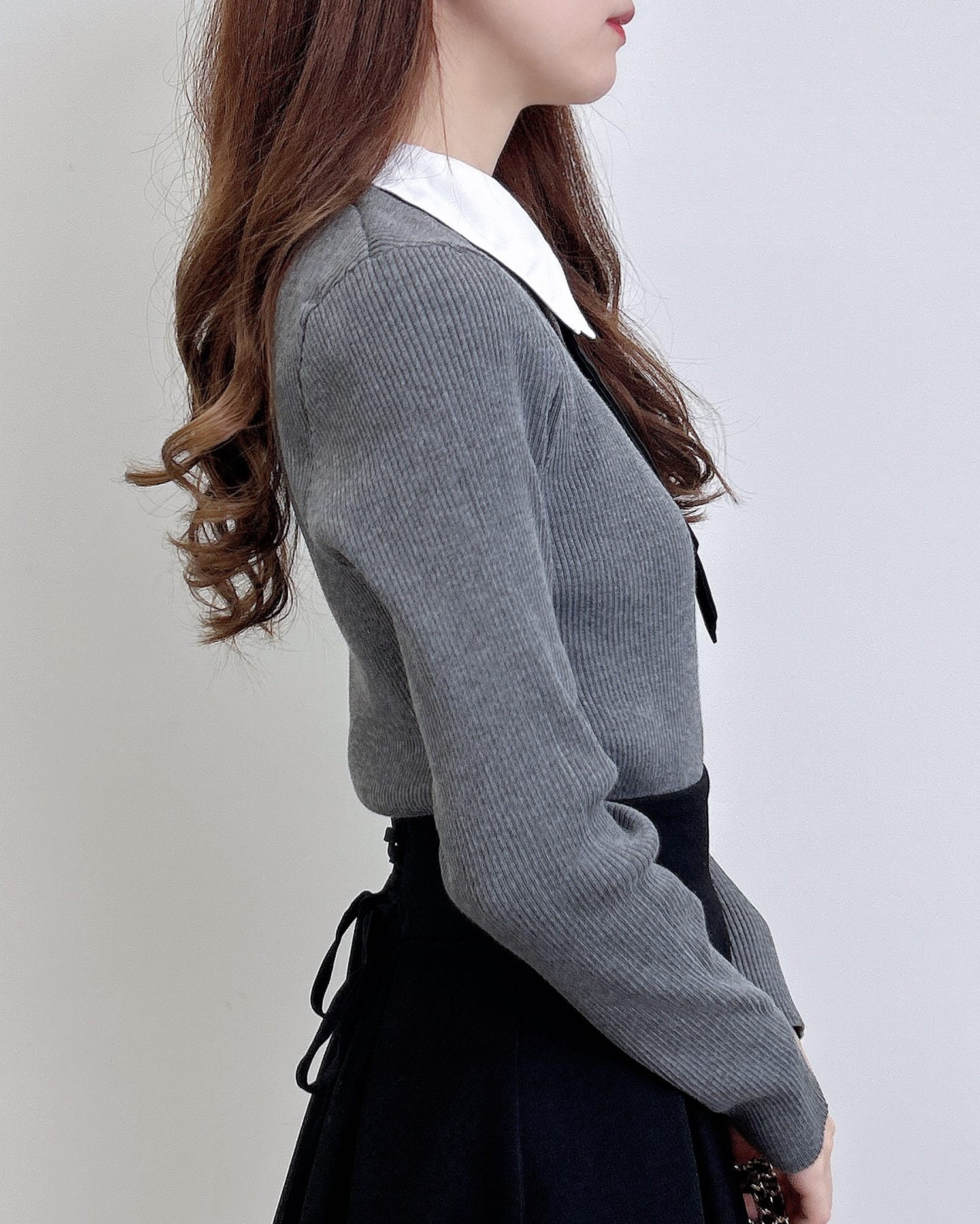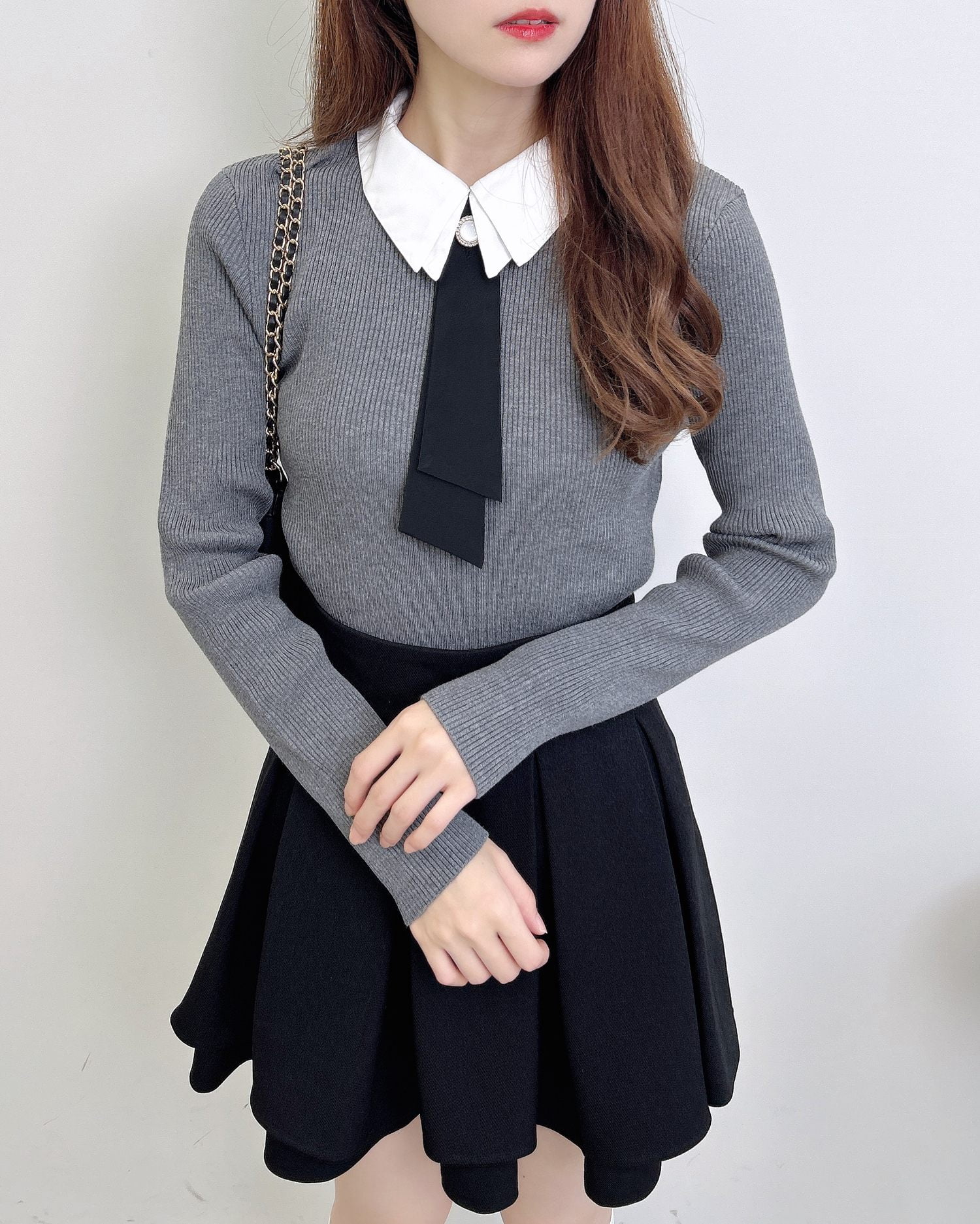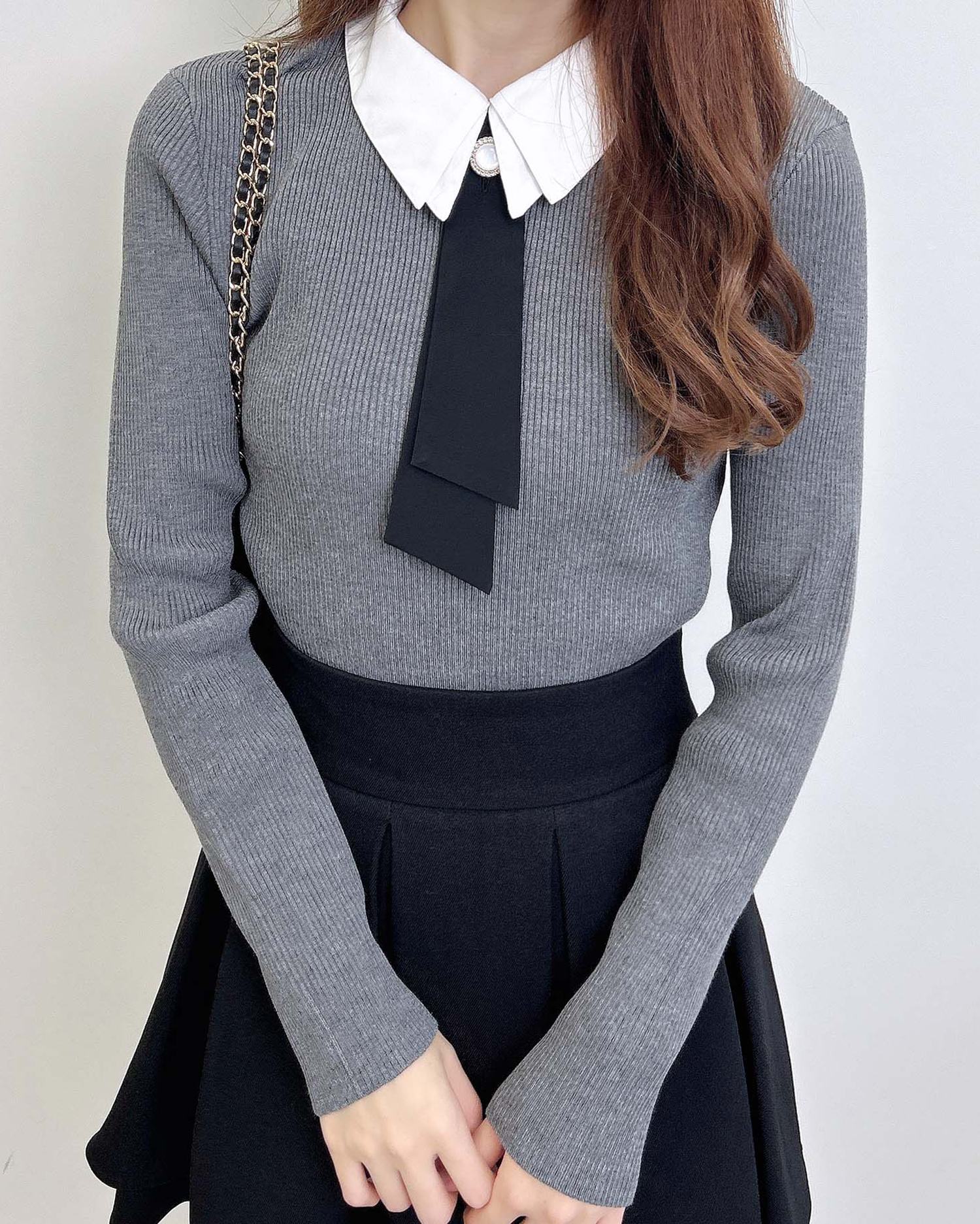 • INGNI(イング) 【WEB限定】襟付ボウタイニット チャコールグレー