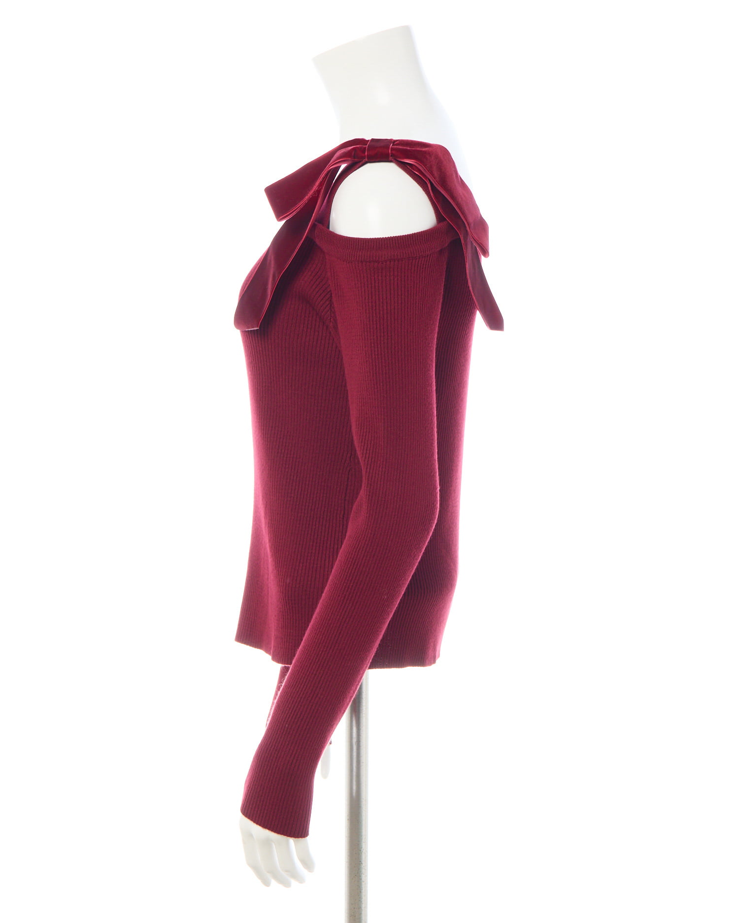 • INGNI(イング) 【WEB限定】リブワンショルベロアリボンニット ボルドー