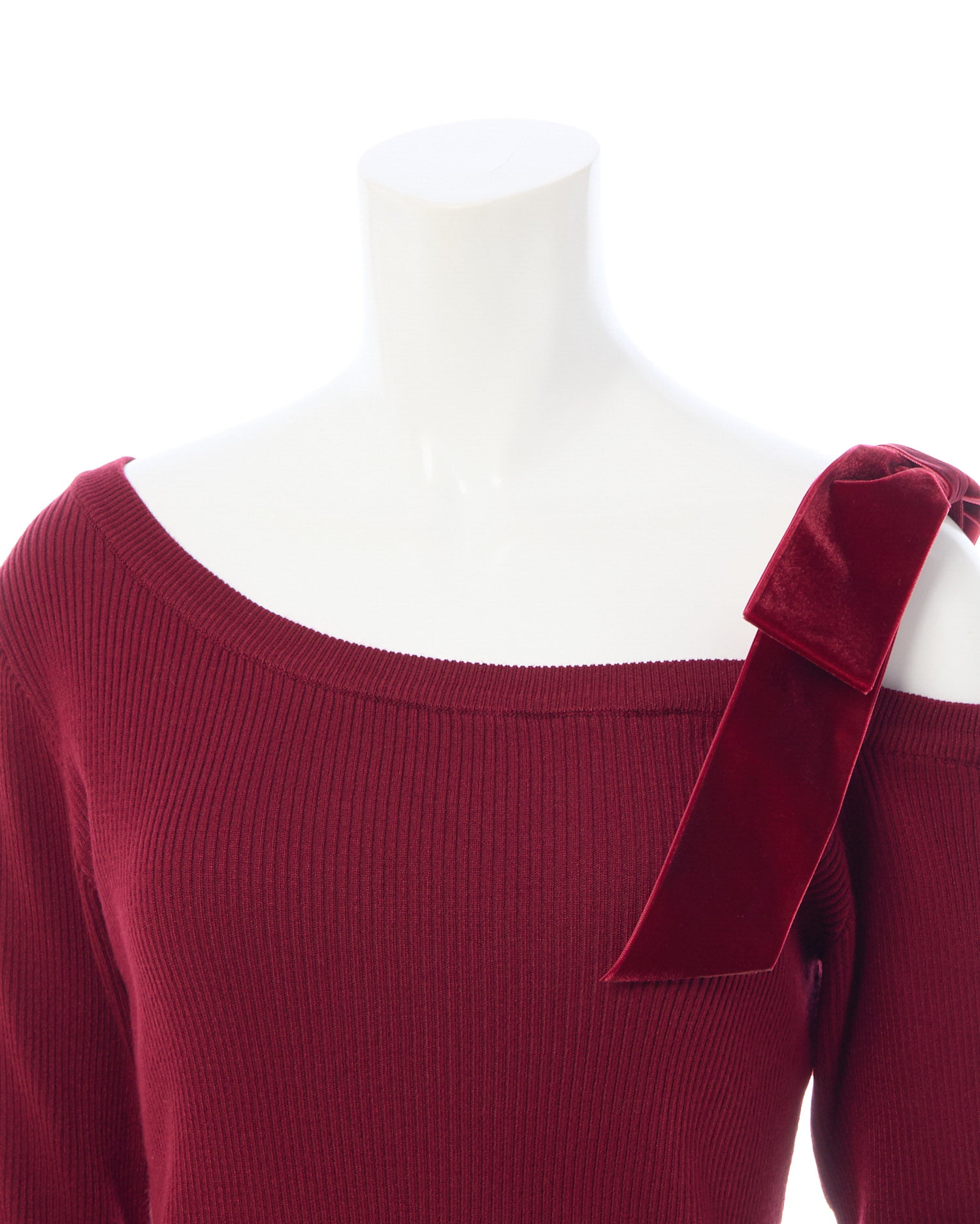 1999-900188 【WEB限定】リブワンショルベロアリボンニット