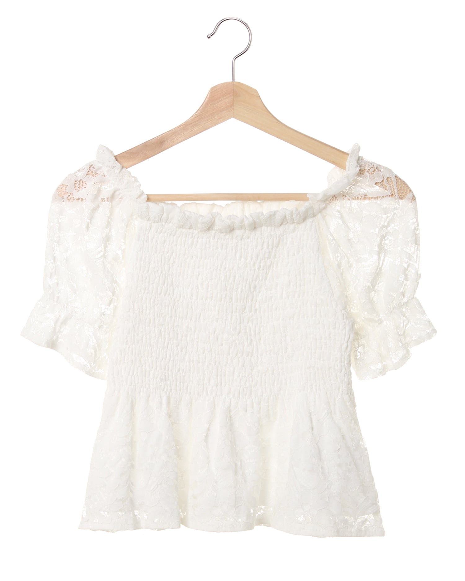 上半身をコンパクトにすっきり見せてくれるシャーリング加工が大人のカジュアルスタイルにぴったりのトップス。繊細なレースで仕立てた袖からほんのり透ける肌がフェミニン。袖口にゴムを入れてボリュームを付けているので、気になる二の腕をカバーしてくれる効果も期待出来ます。表面感のある異素材の組み合わせが、ワンカラーでも表情豊かな着こなしを楽しめます。メリハリのあるシルエットにも注目。