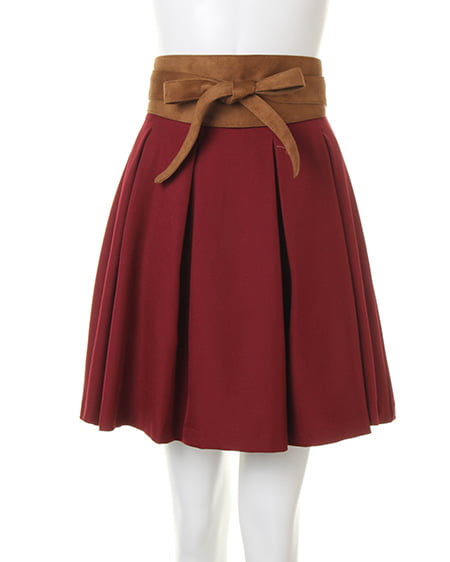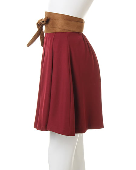 【1174-342151 サッシュベルト付ツイルタックフレア/キュロットスカート】