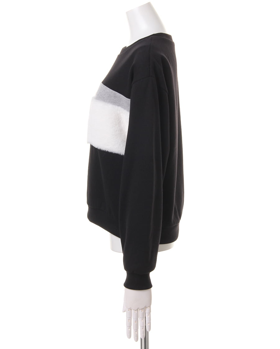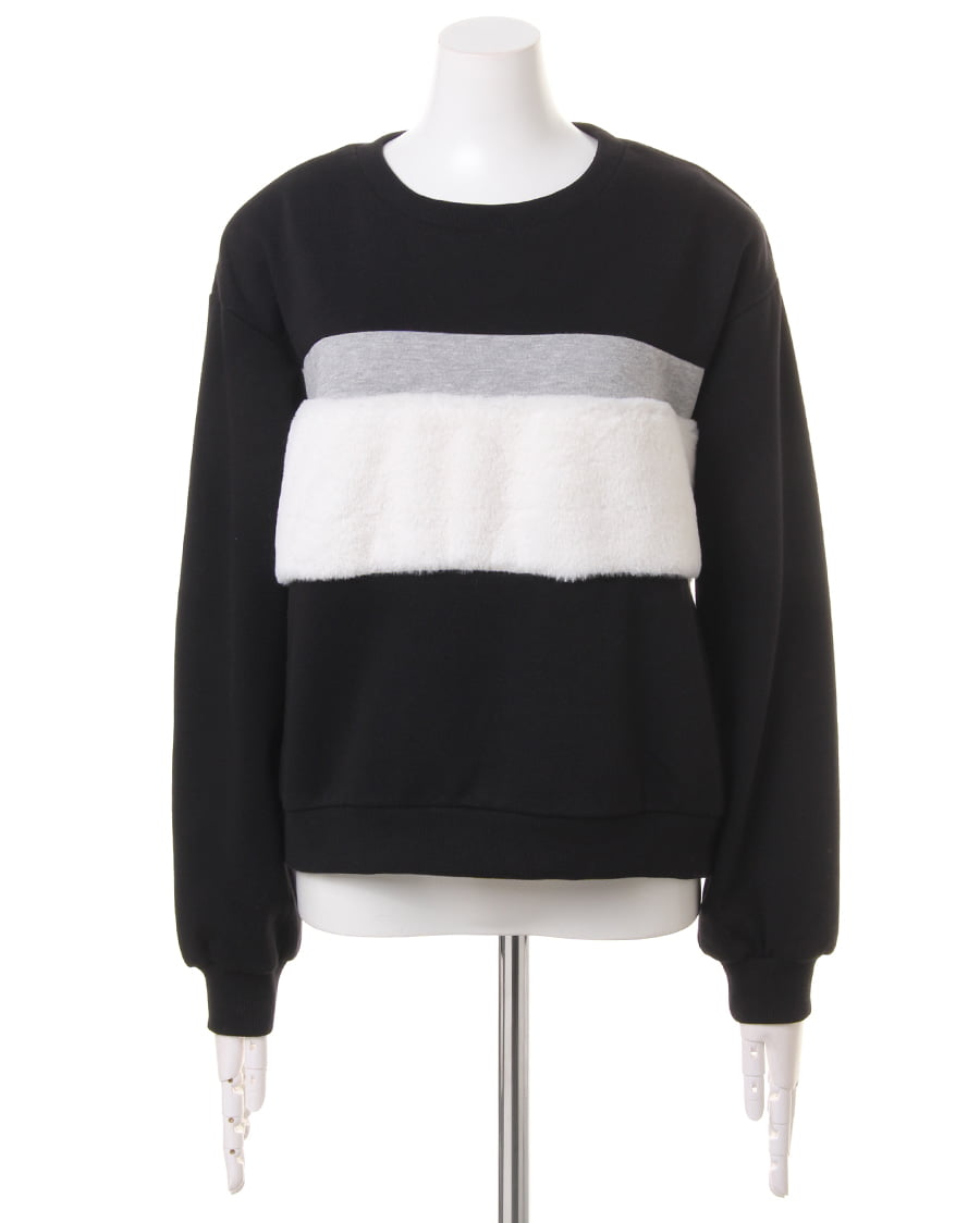 【1174-142677 ファー切り替えバイカラー裏毛トップス】