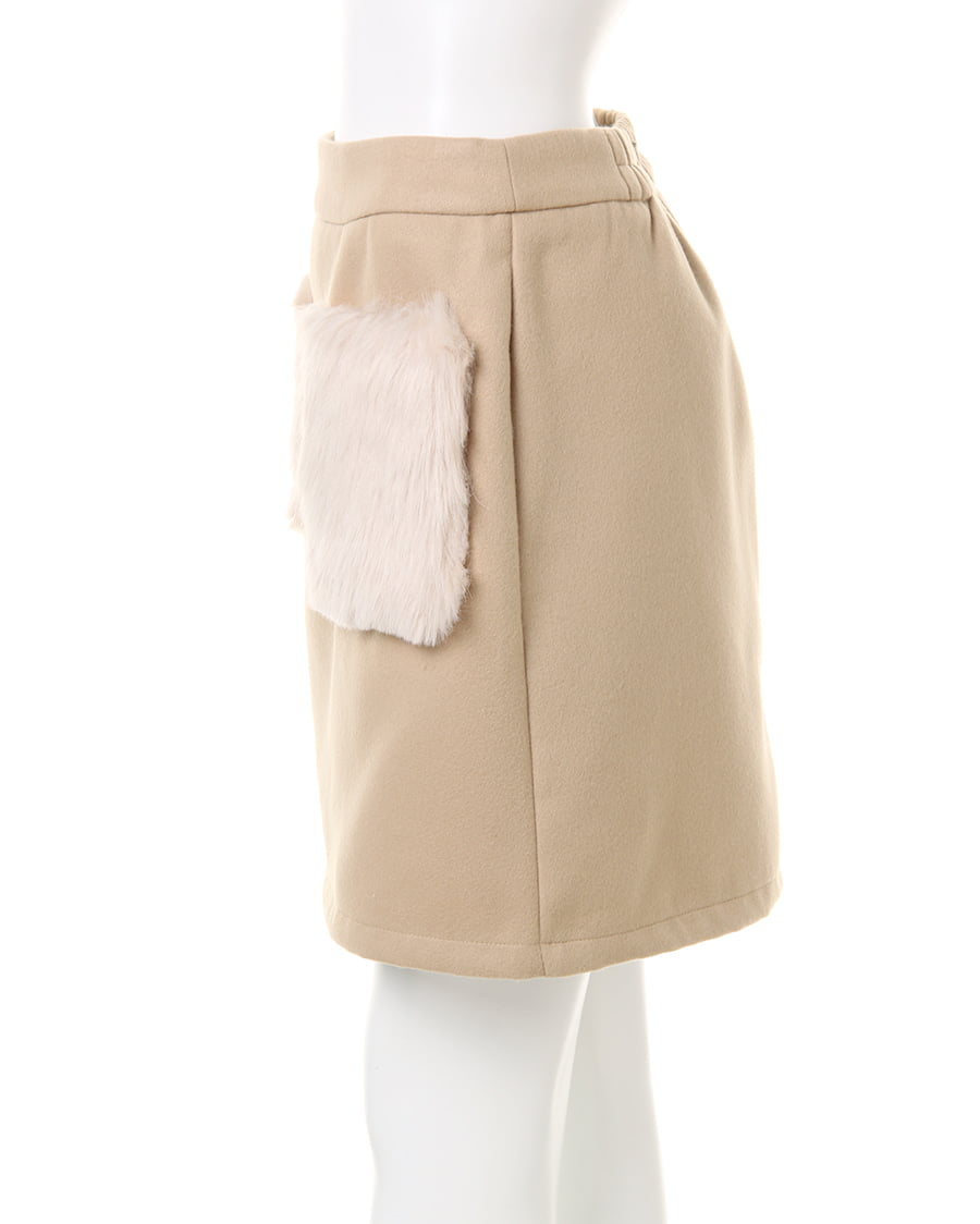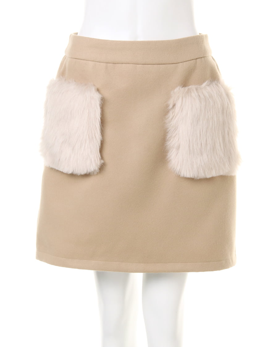 装飾クルーネックプルオーバーとファーポケ付フェイクウール台形スカートのSET☆