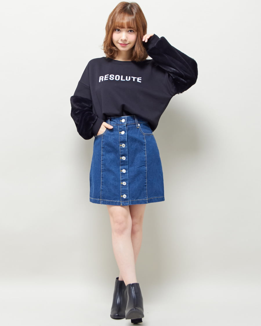 袖ファーロゴTOPS+前ボタン台形スカート/SET/A