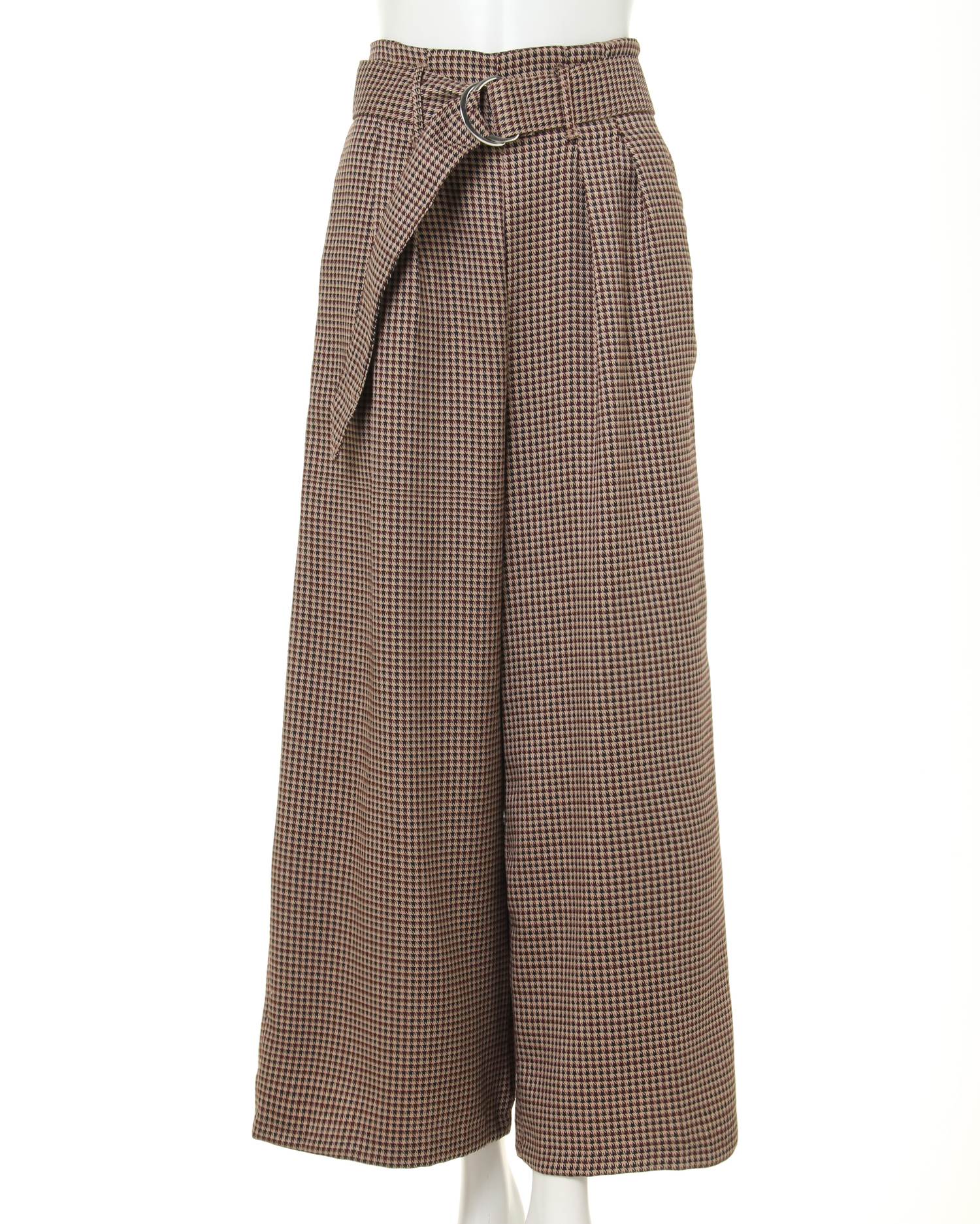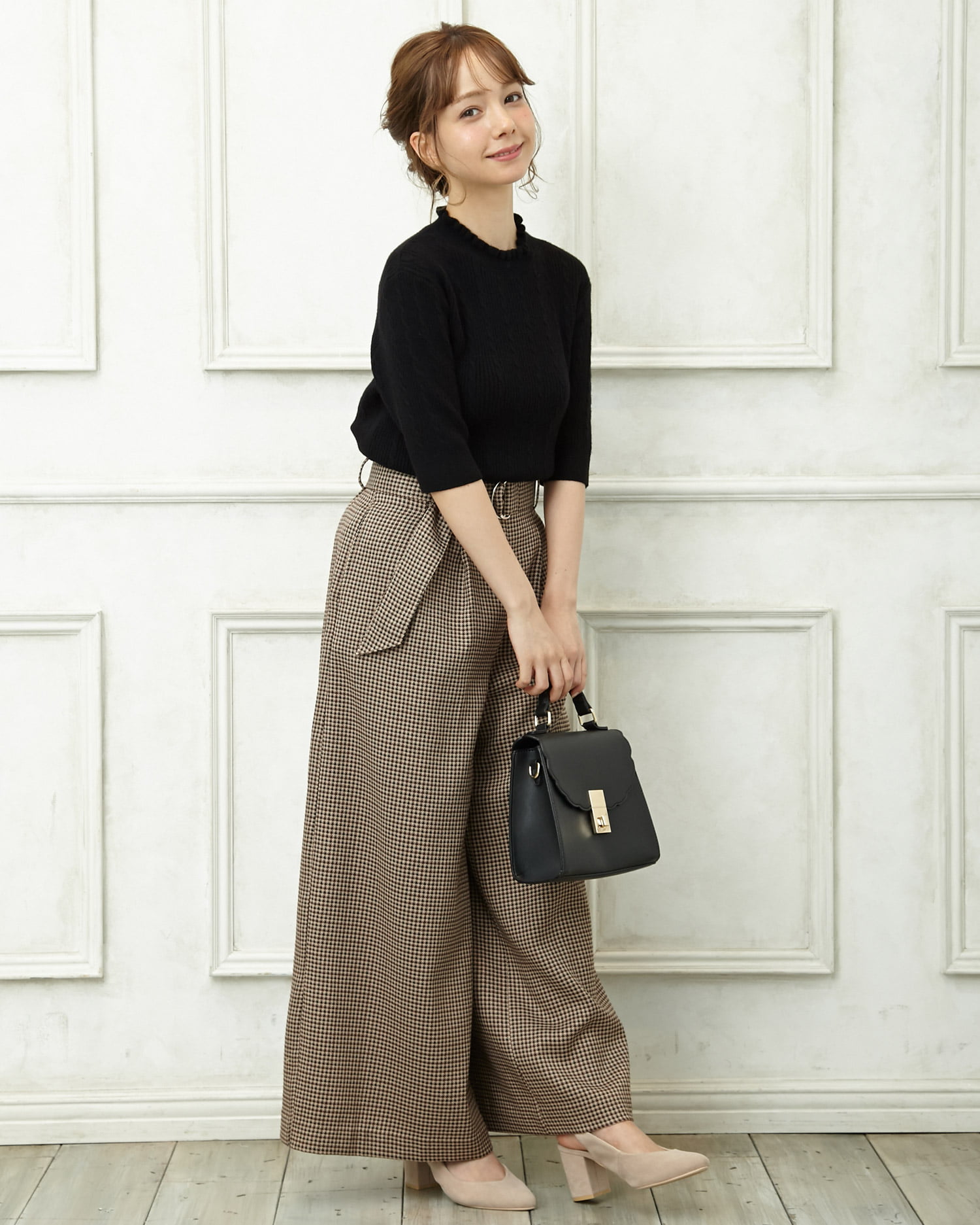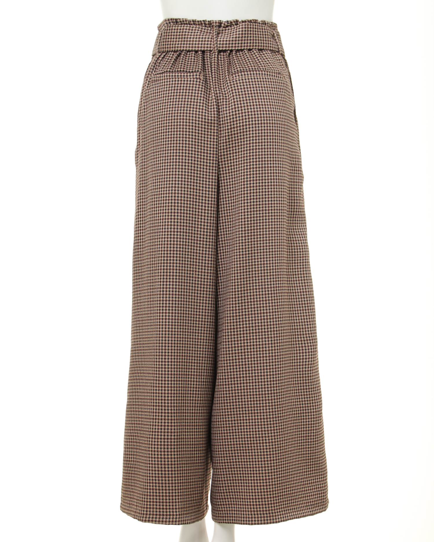 襟フリルケーブルHN/トップスと共ベルト付グレンチェックワイド/パンツのSET☆