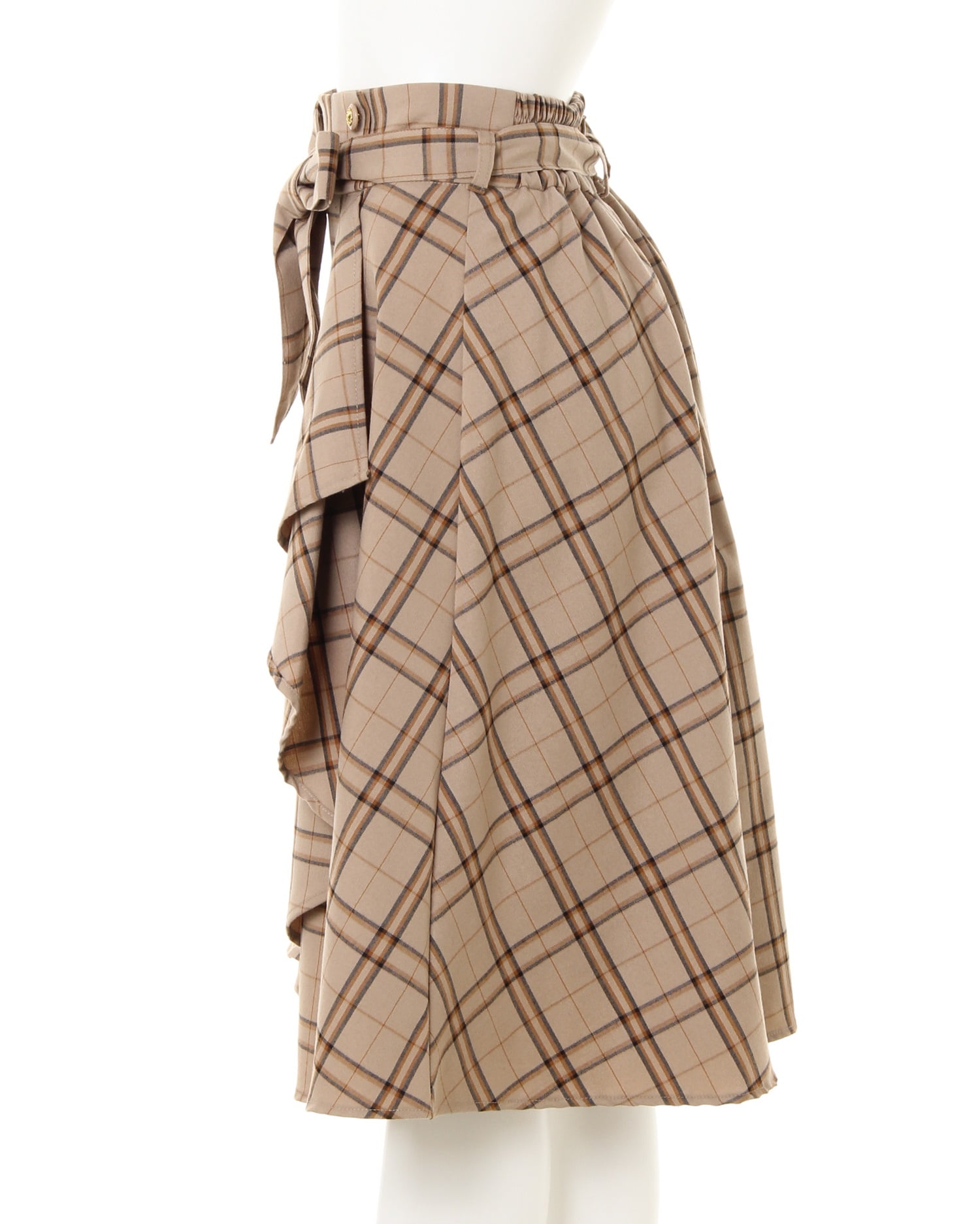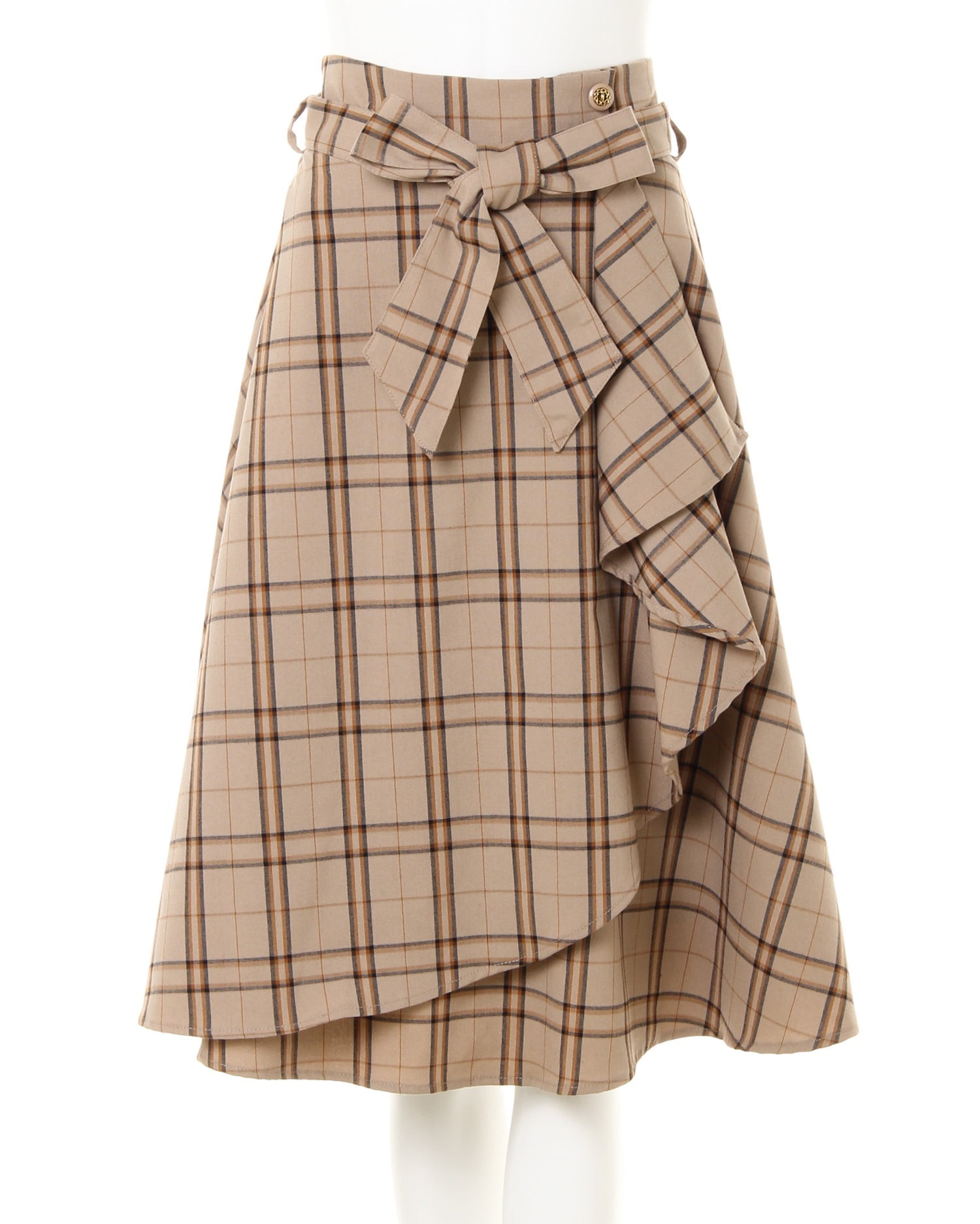 肩フリルケーブル/ニットとチェック柄ラッフルミディ/スカートのSET☆