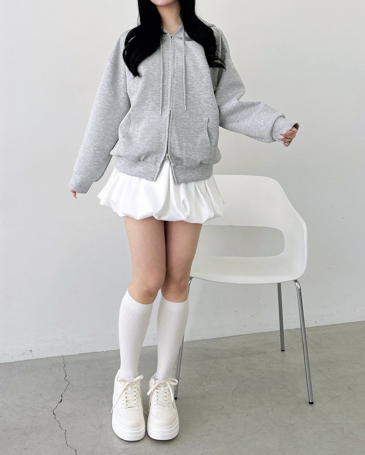 パンプス×ソックスで合わせれば王道可愛い韓国風コーデが完成。