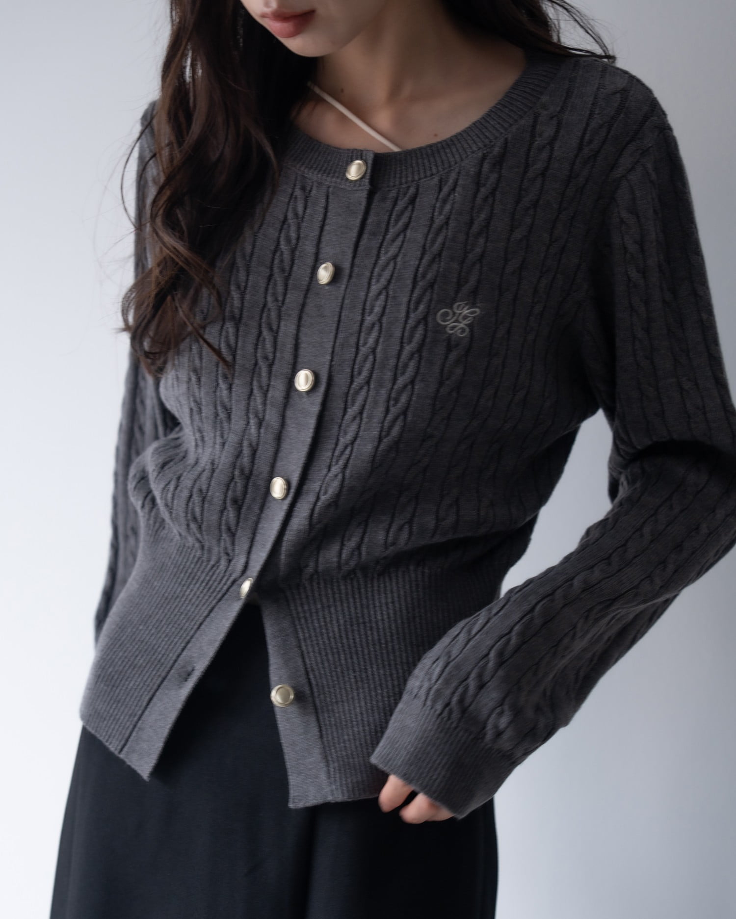 • INGNI(イング) 【タイムセール】【プレミアムライン INGNI SOELA】胸刺繍金ボタンケーブルニットカーディガン チャコールグレー