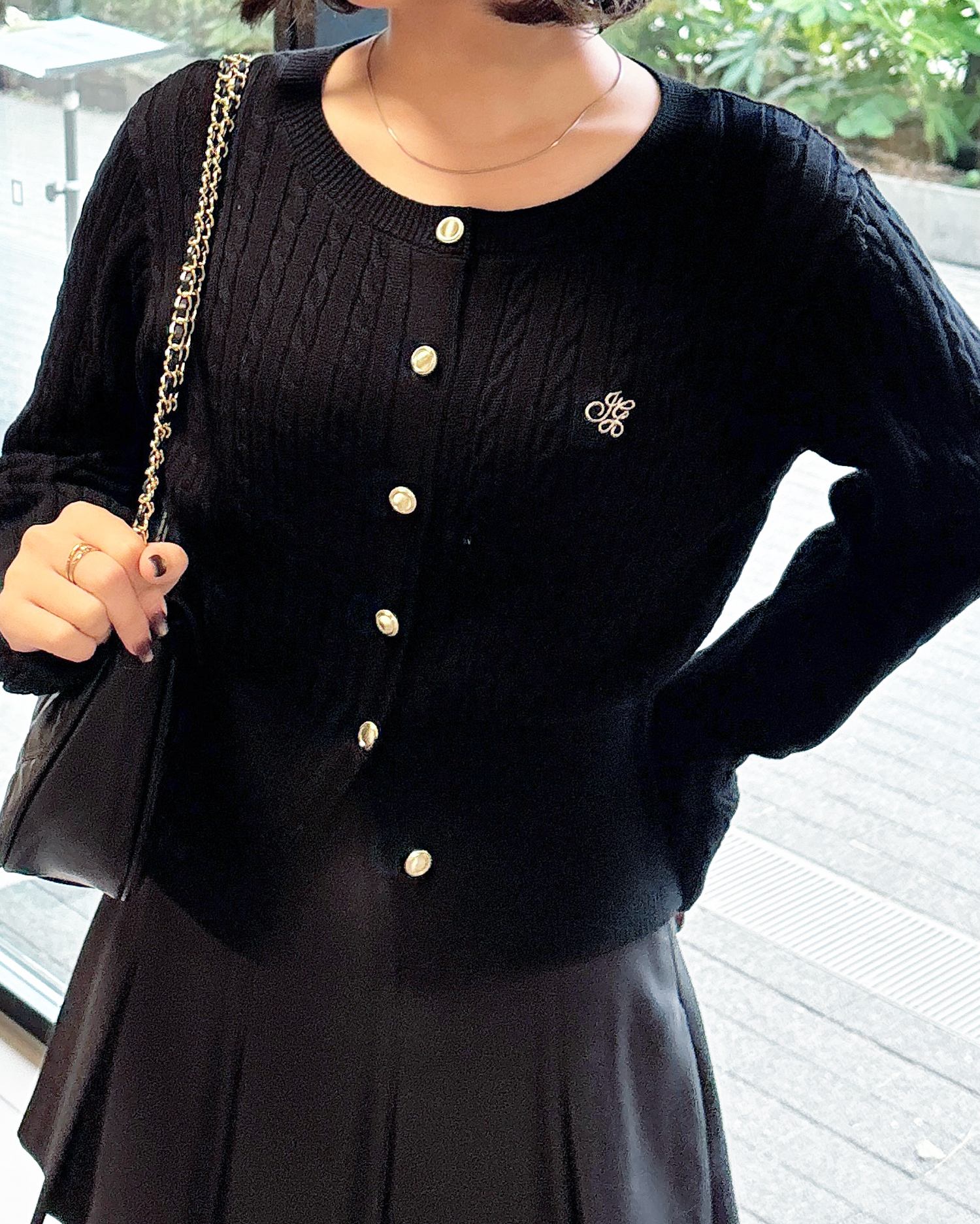• INGNI(イング) 【タイムセール】【プレミアムライン INGNI SOELA】胸刺繍金ボタンケーブルニットカーディガン クロ