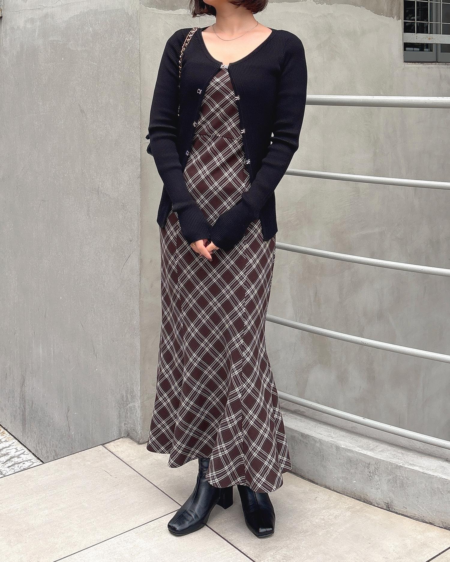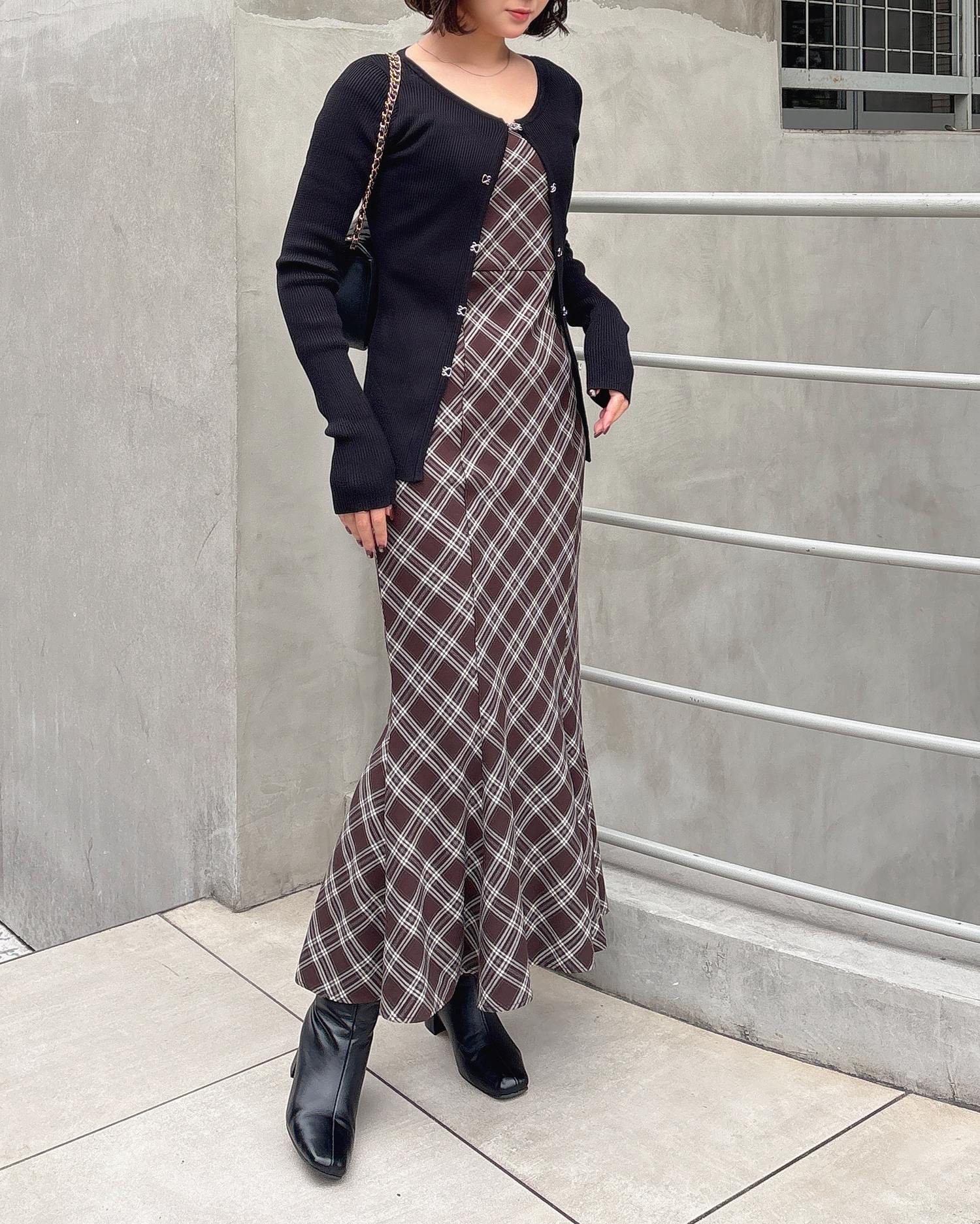 薄手のリブニットはジャケットやコートのインにもすっきり。
