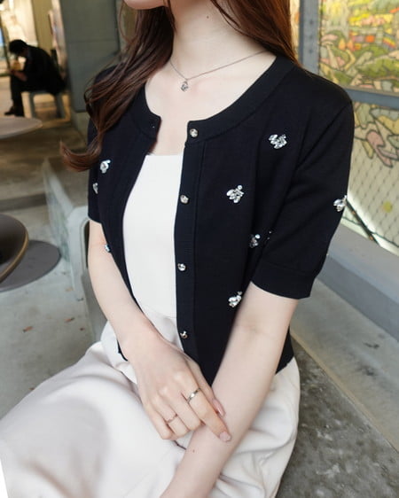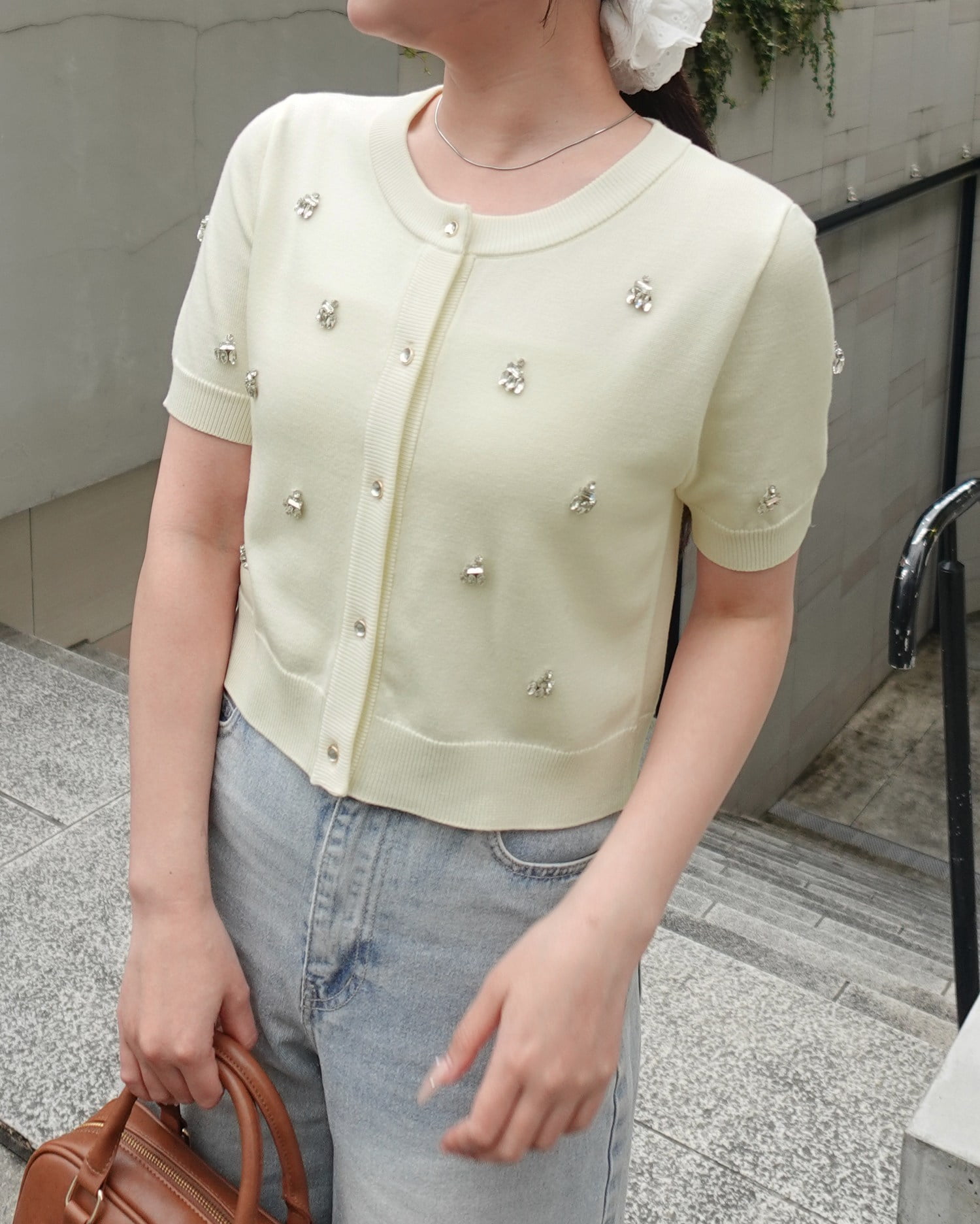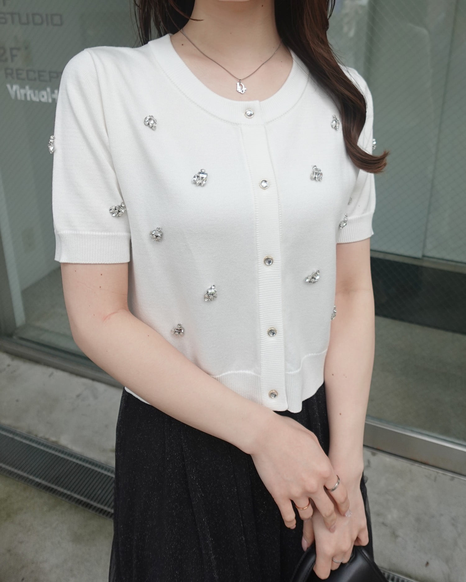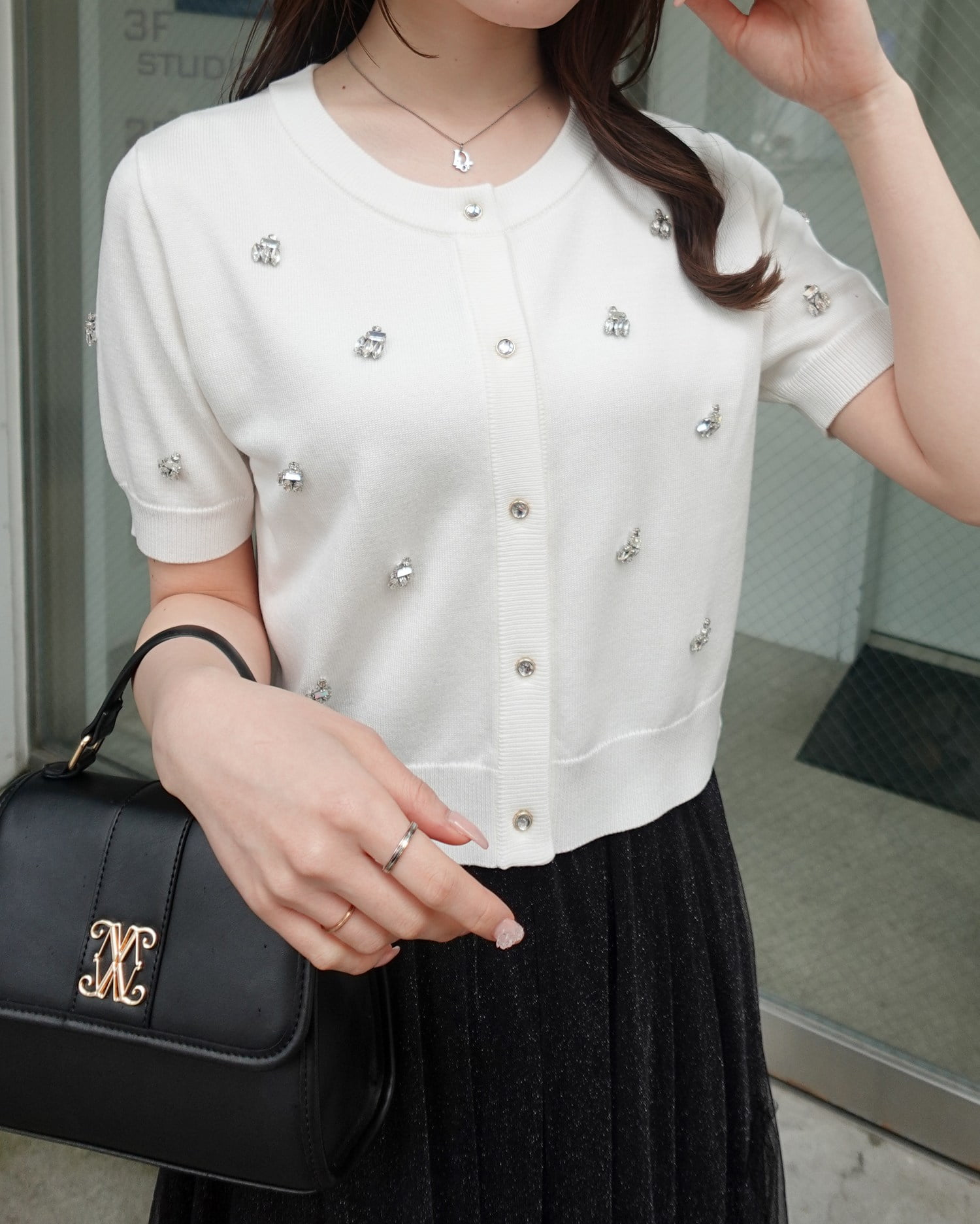 SOELAで人気だったビジュー装飾ニットカーディガンのハーフスリーブバージョンが登場!