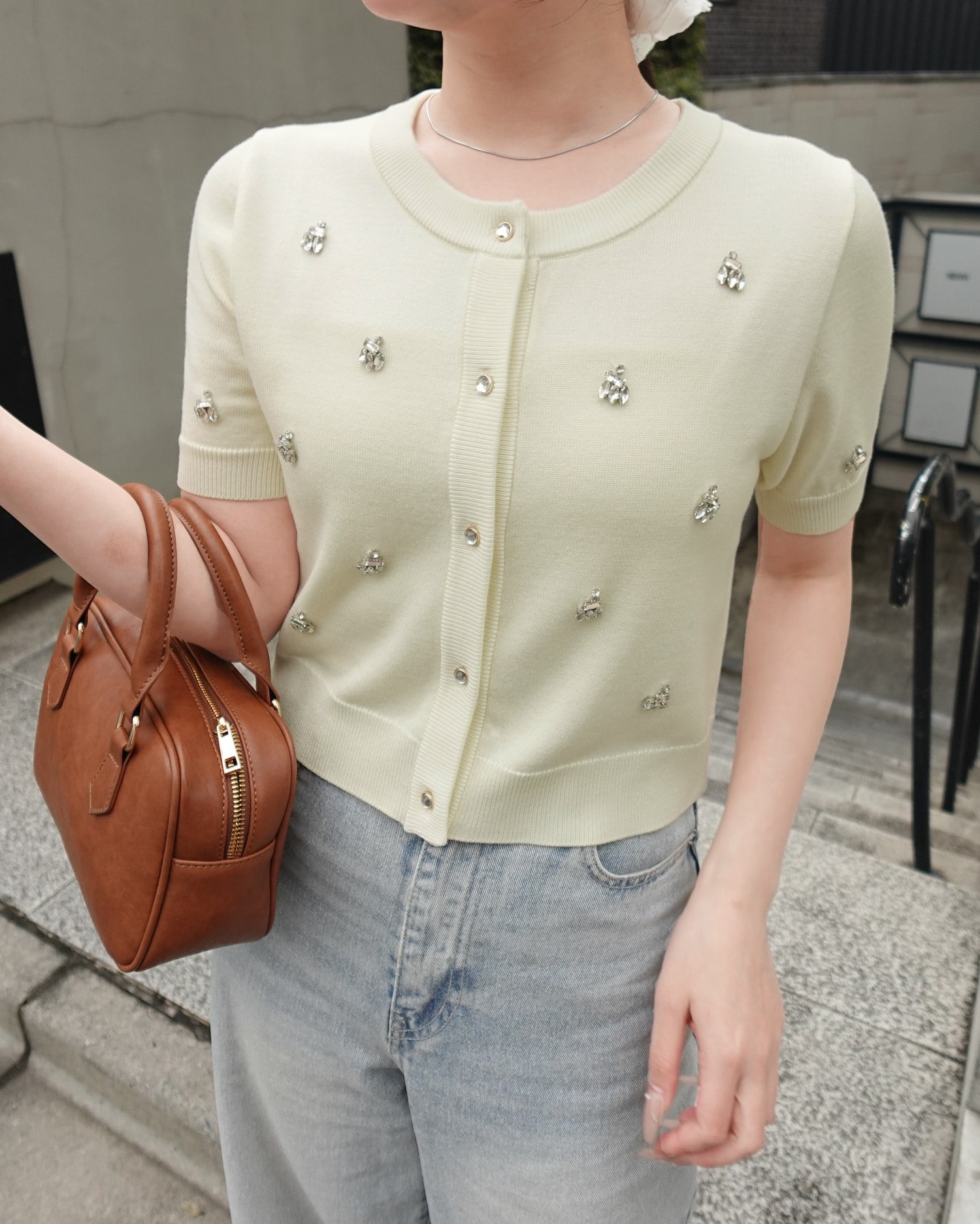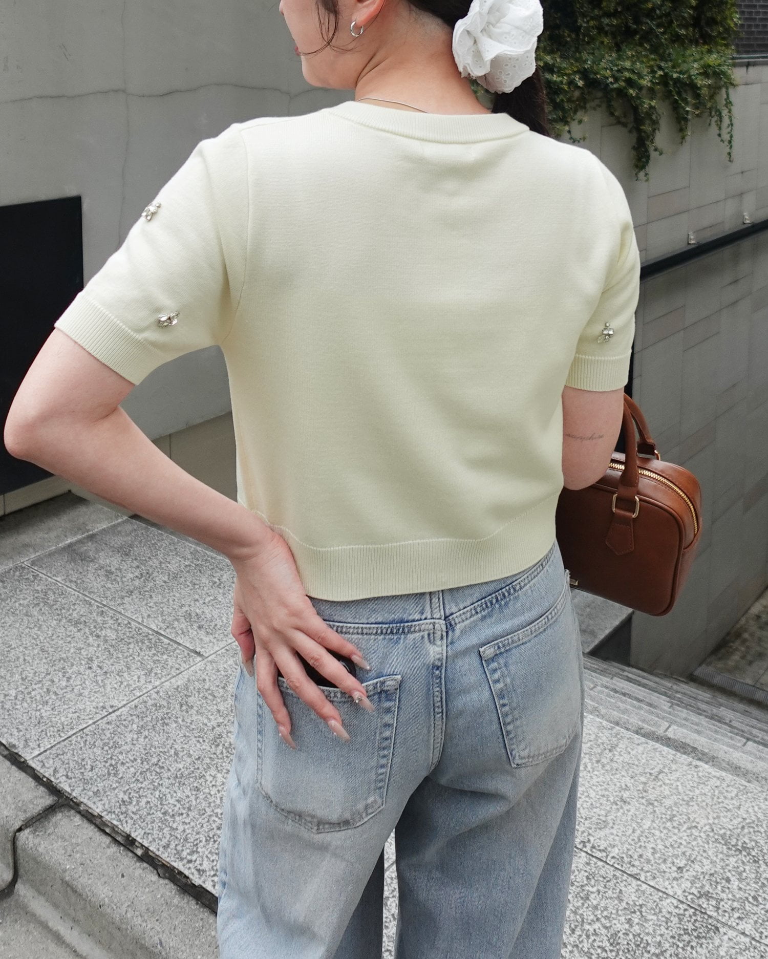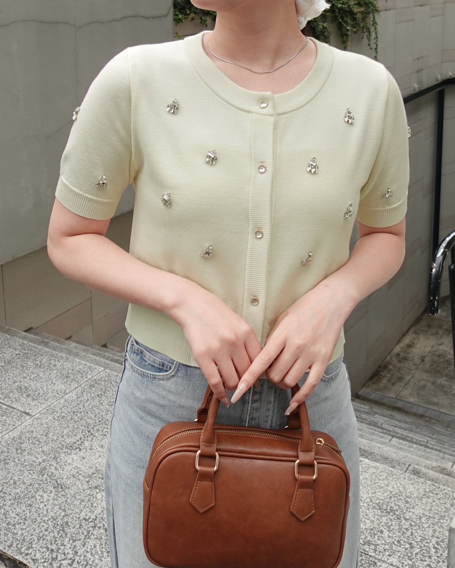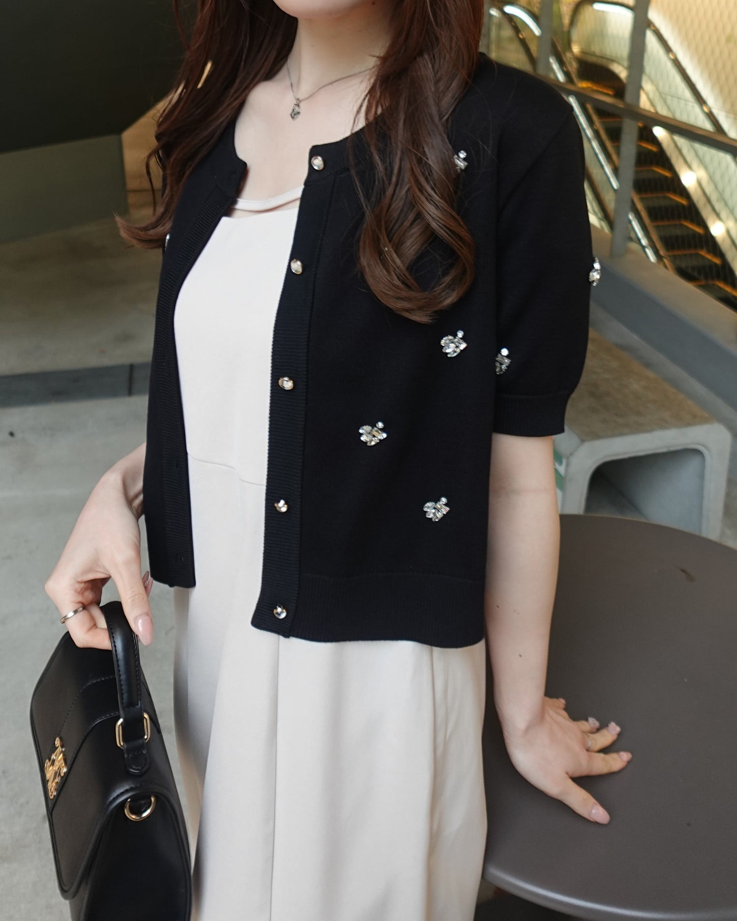 SOELAで人気だったビジュー装飾ニットカーディガンのハーフスリーブバージョンが登場!