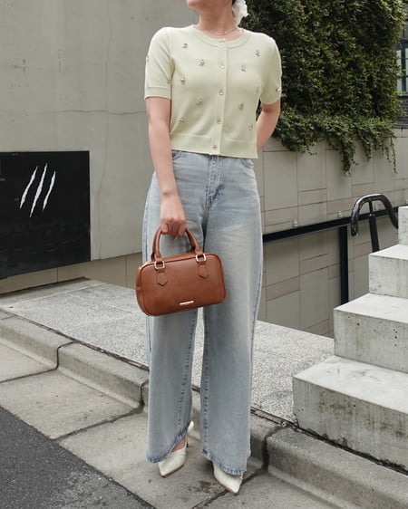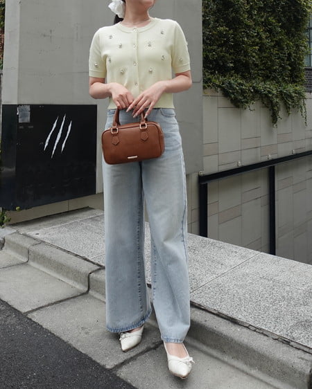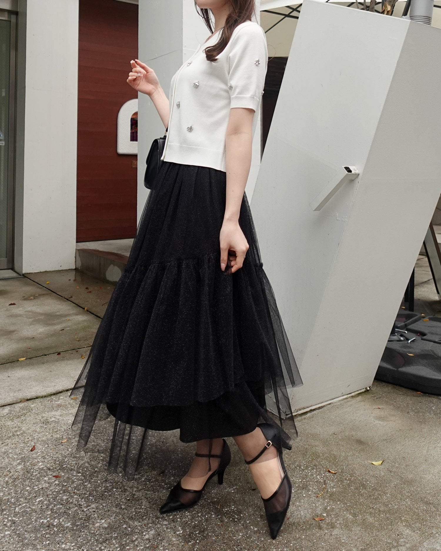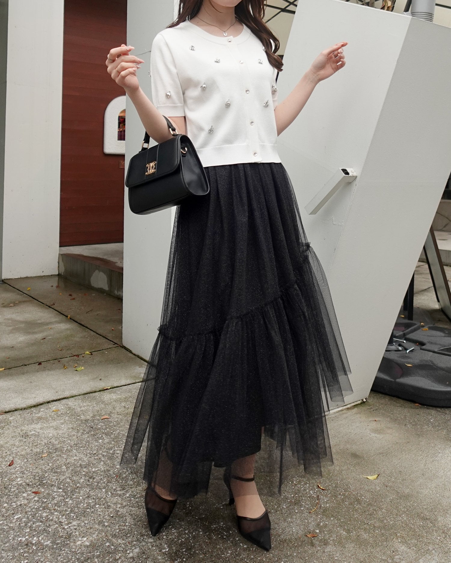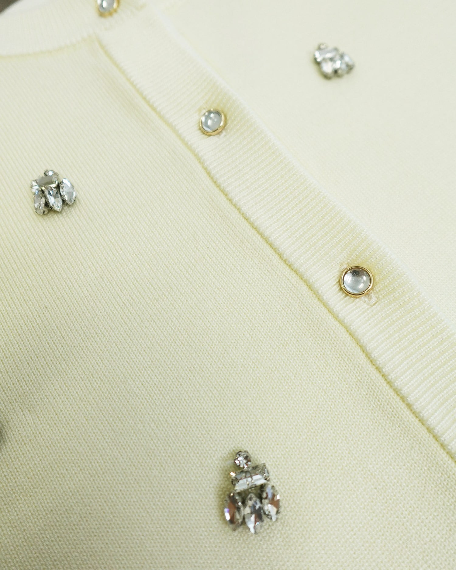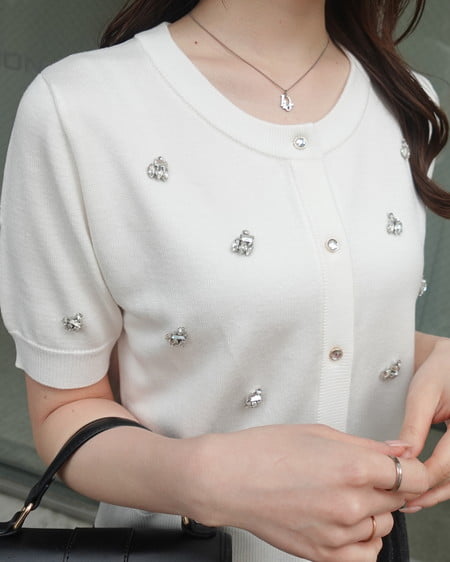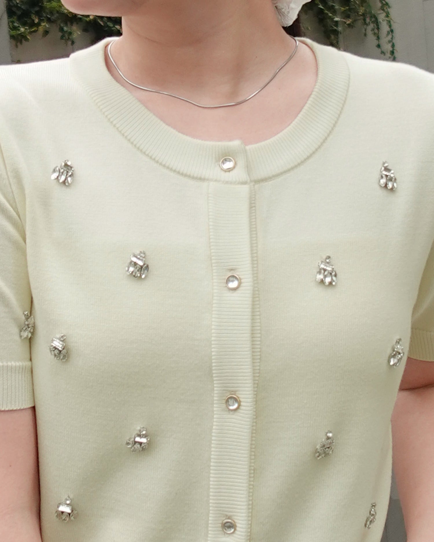 【大人可愛いビジュー装飾が目を惹くニットカーディガン】