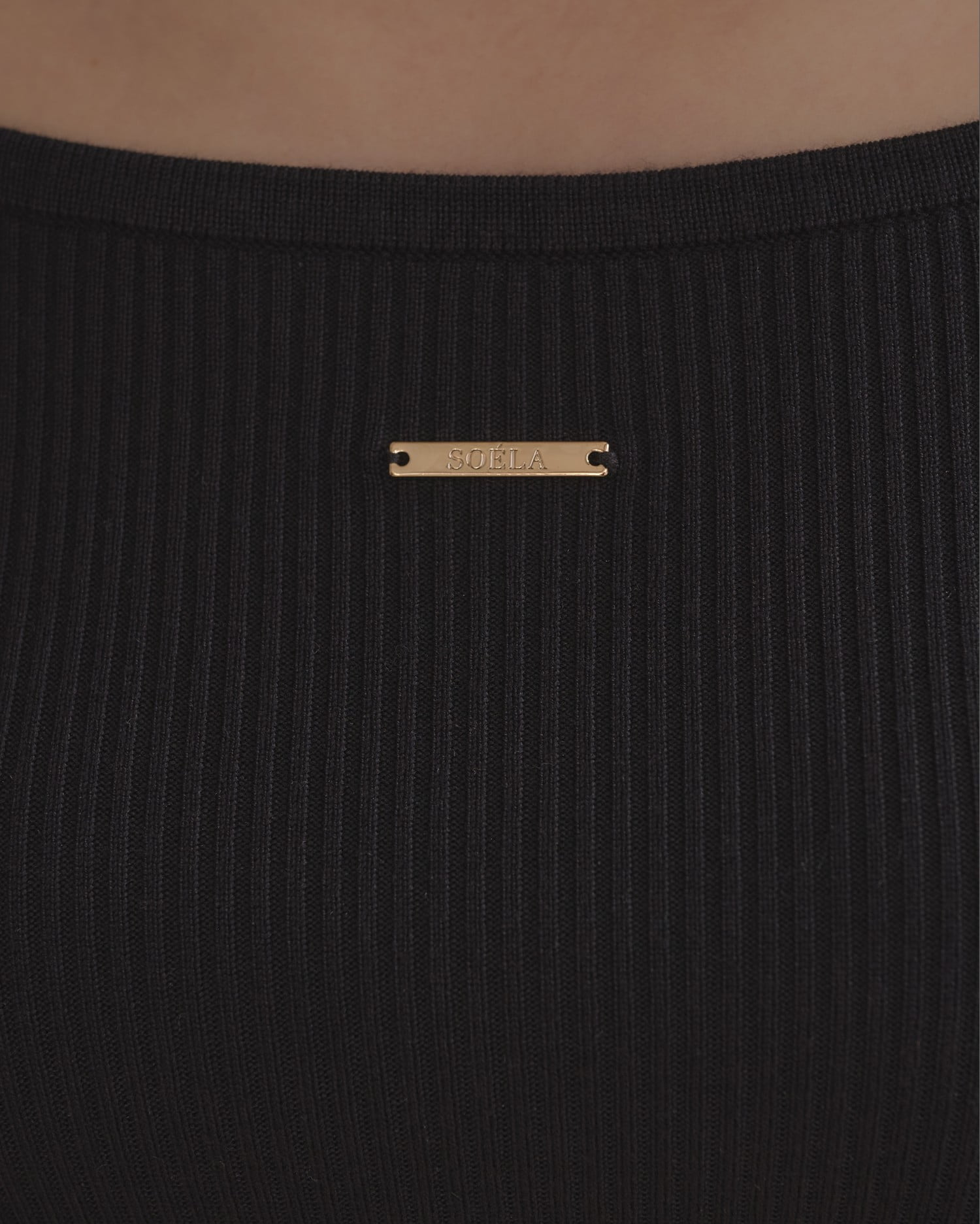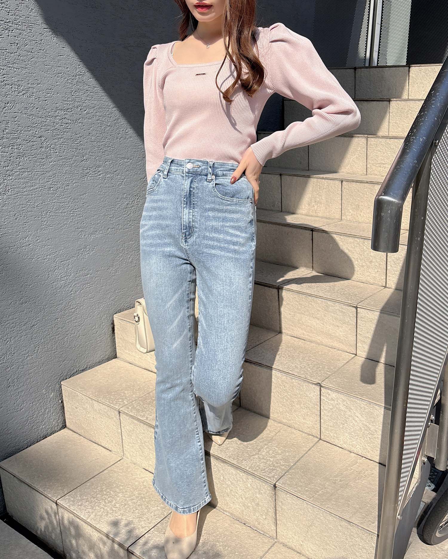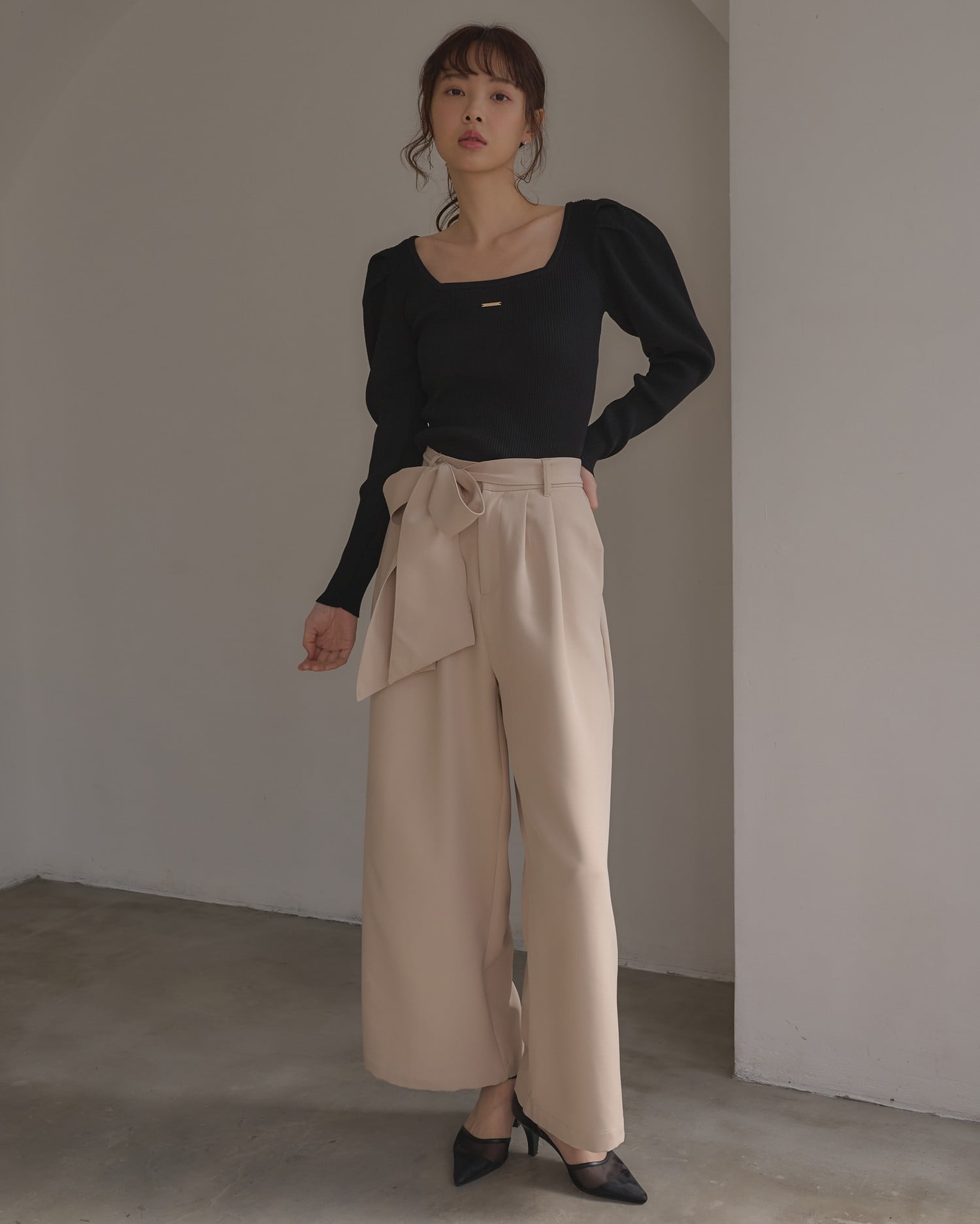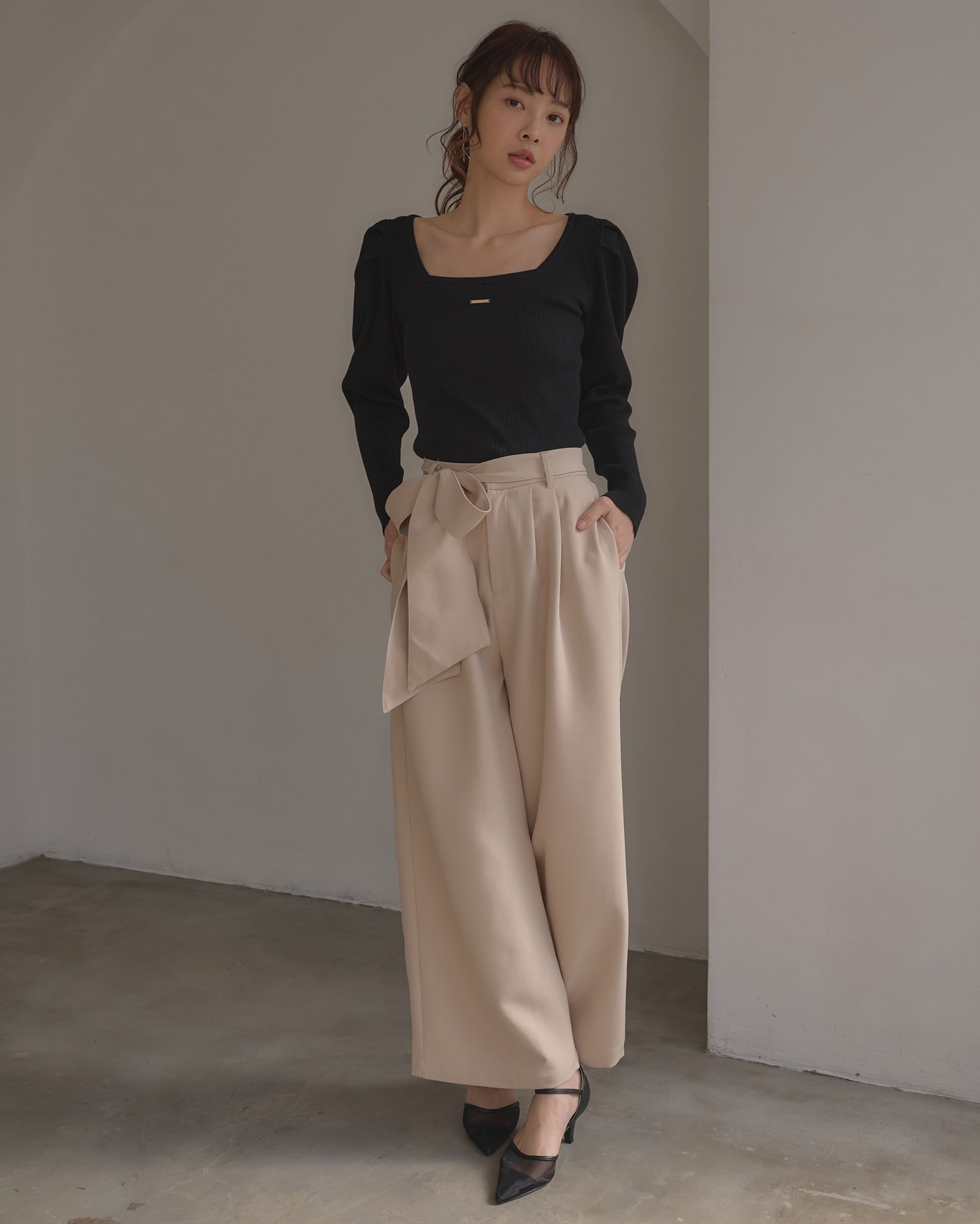 スクエアネックが上品な肌見せを叶えるリブニットトップス。