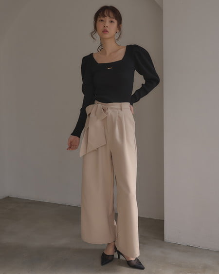 シンプルなデザインながらもパフスリーブが華やかな印象を与えてくれます。