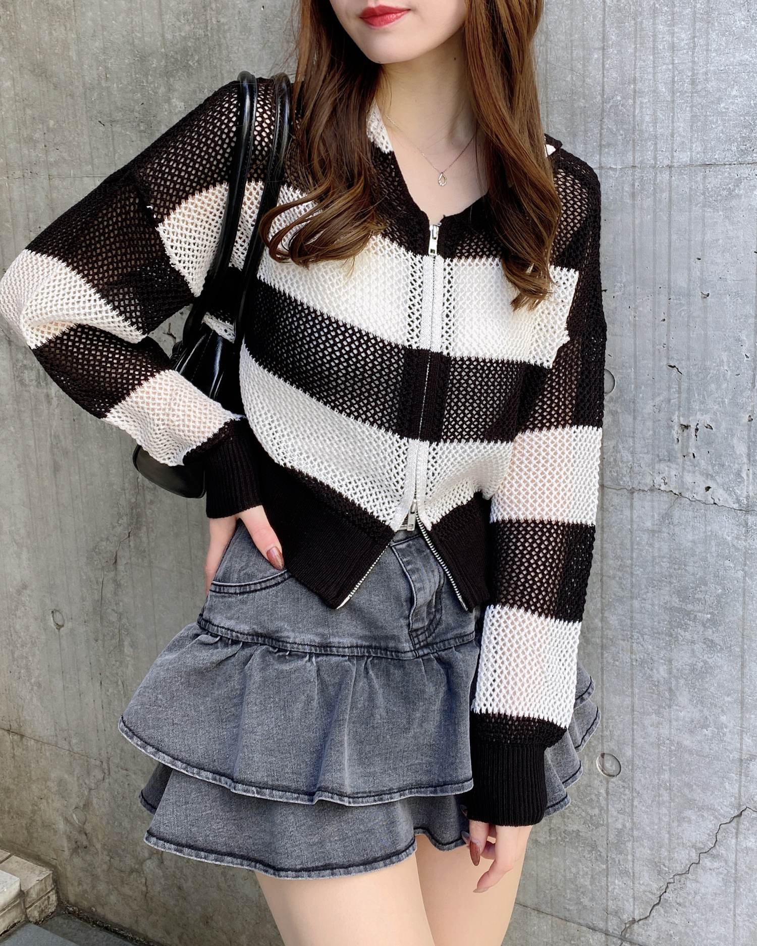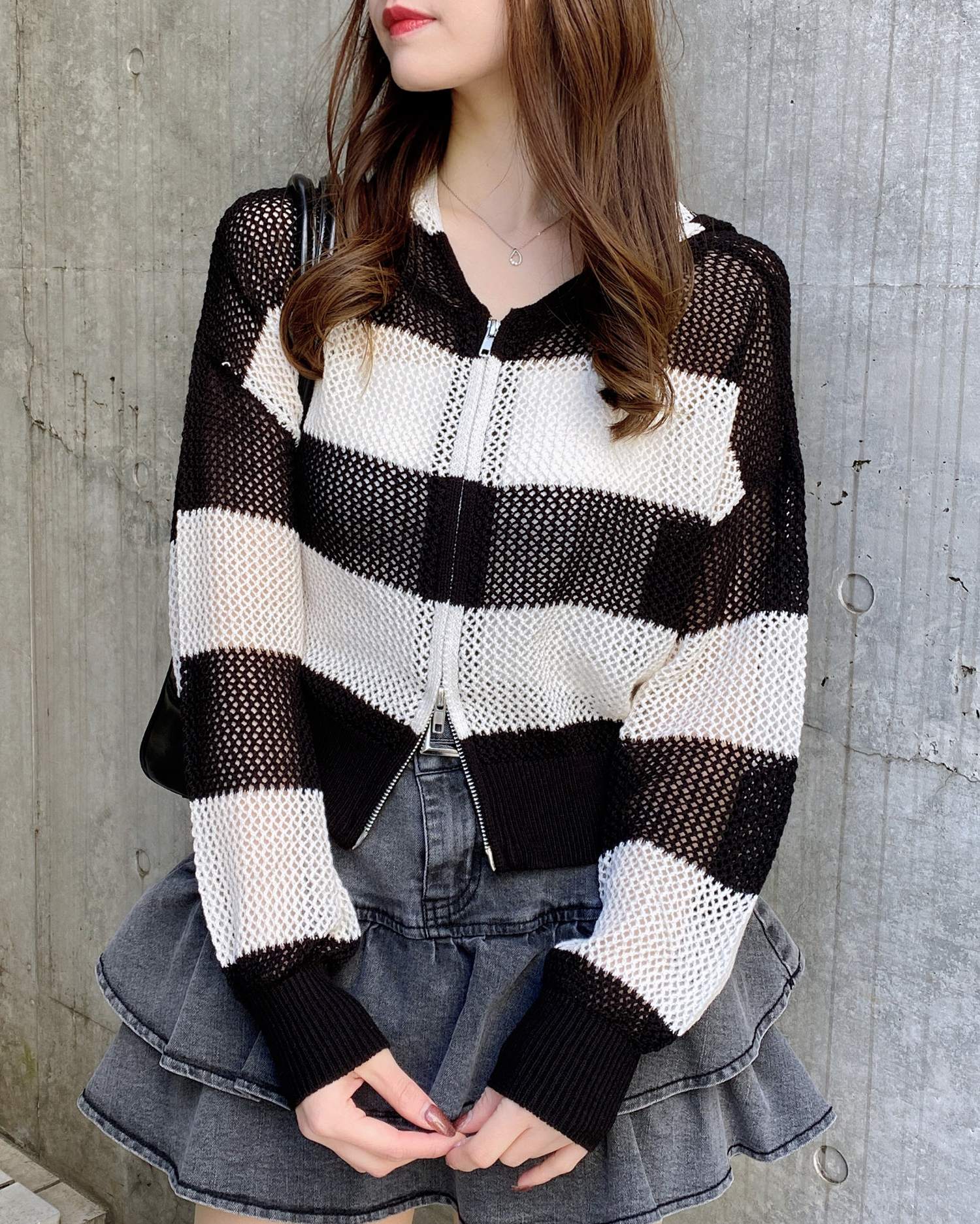 インパクト抜群のボーダー柄メッシュパーカーでトレンドライクに。