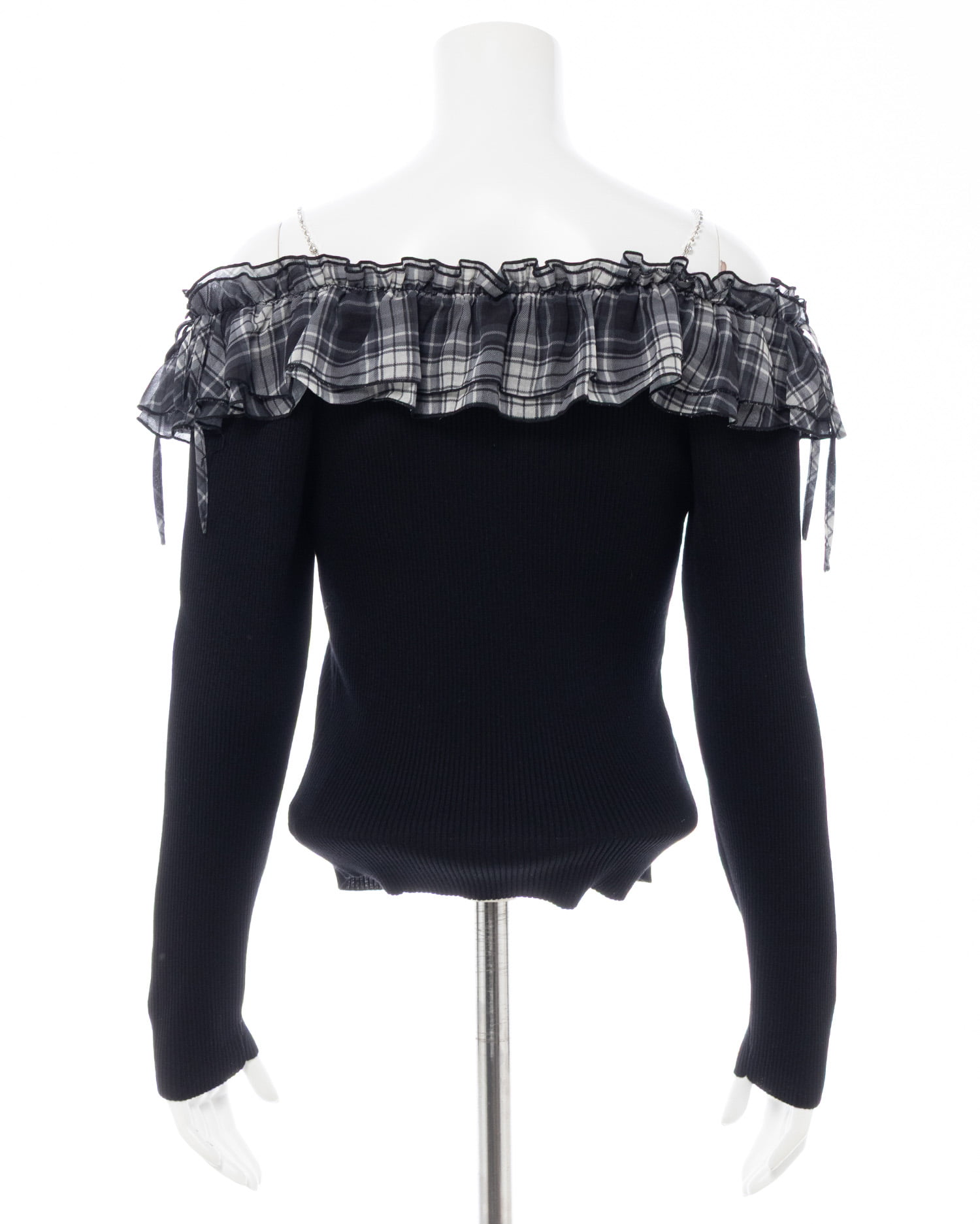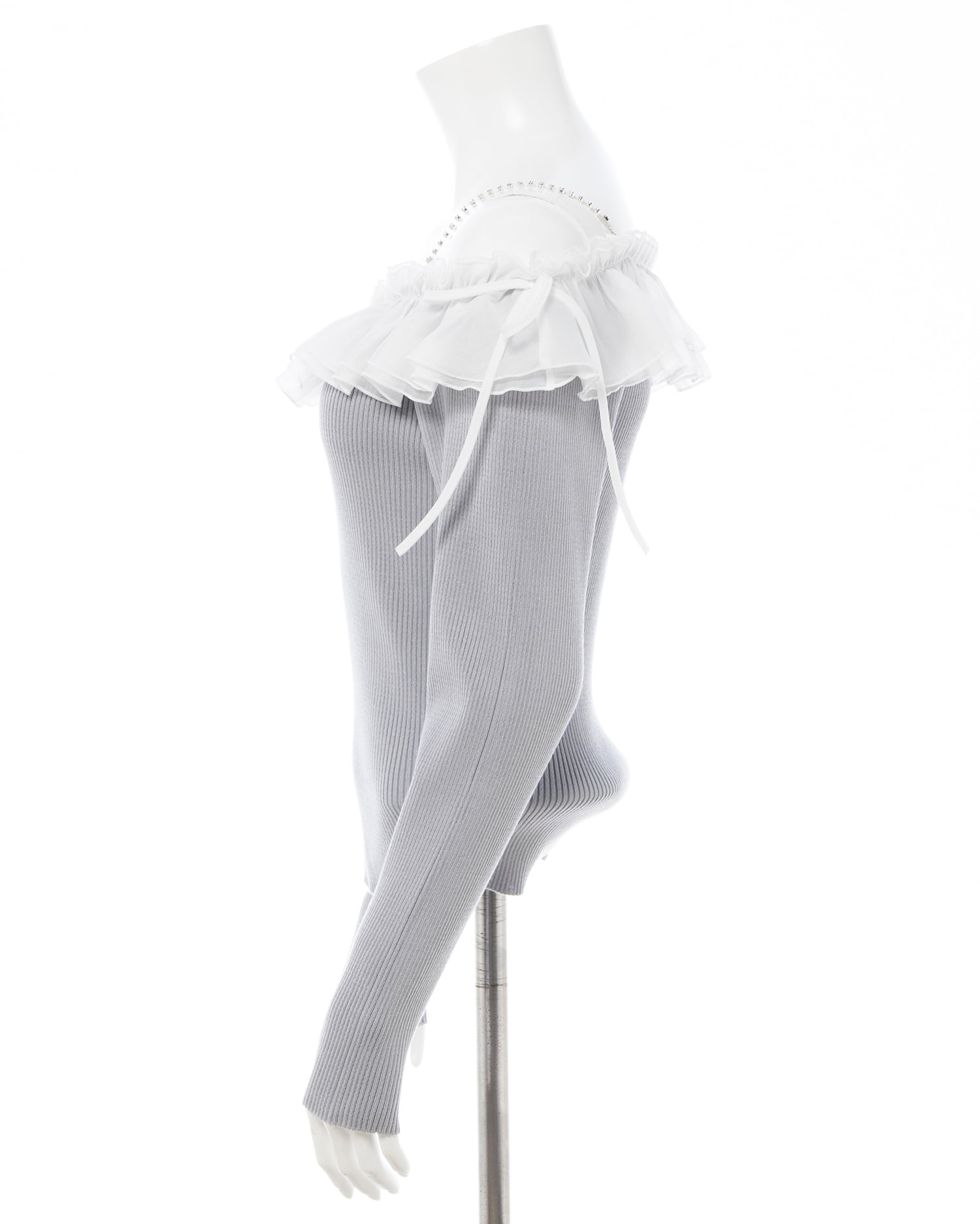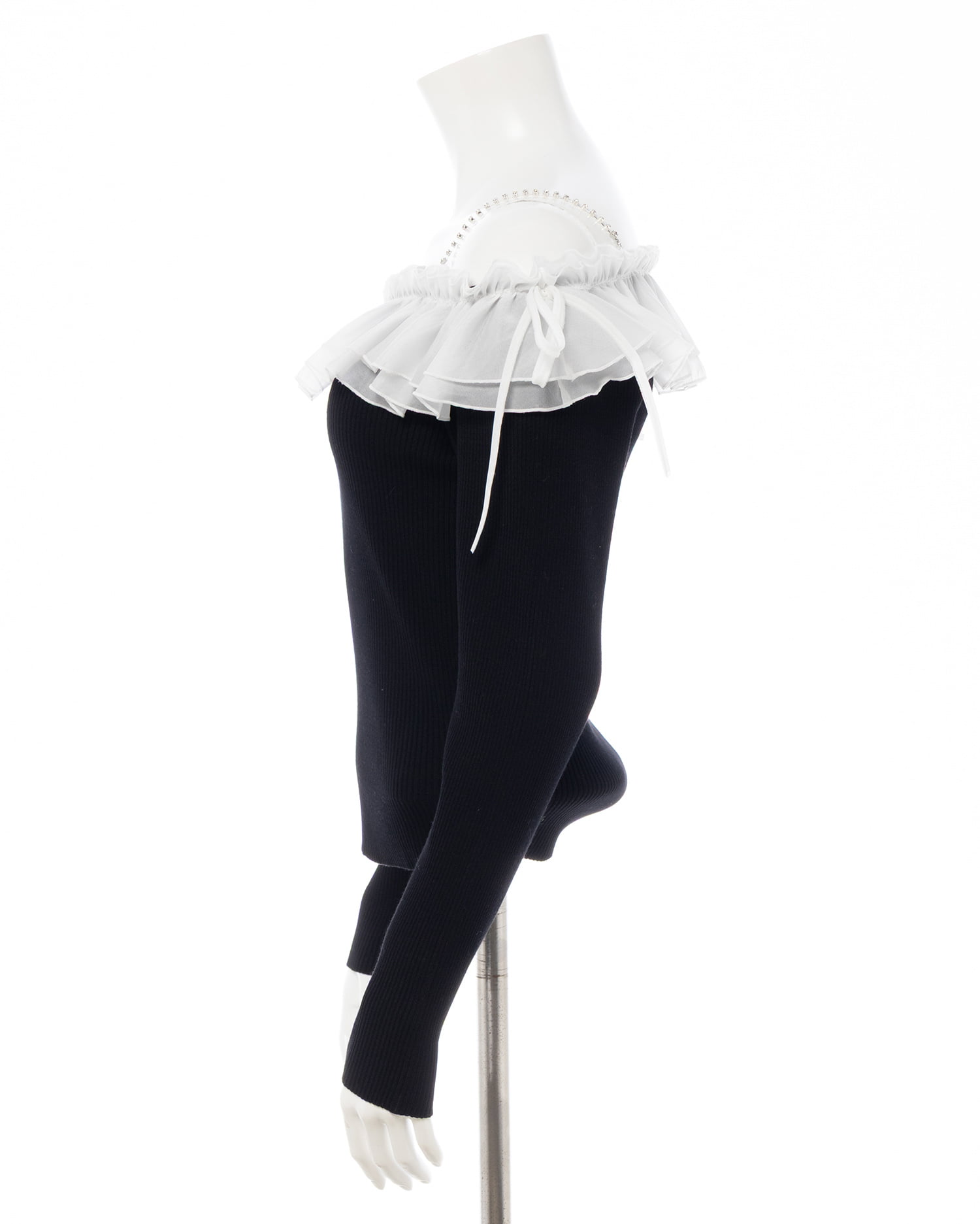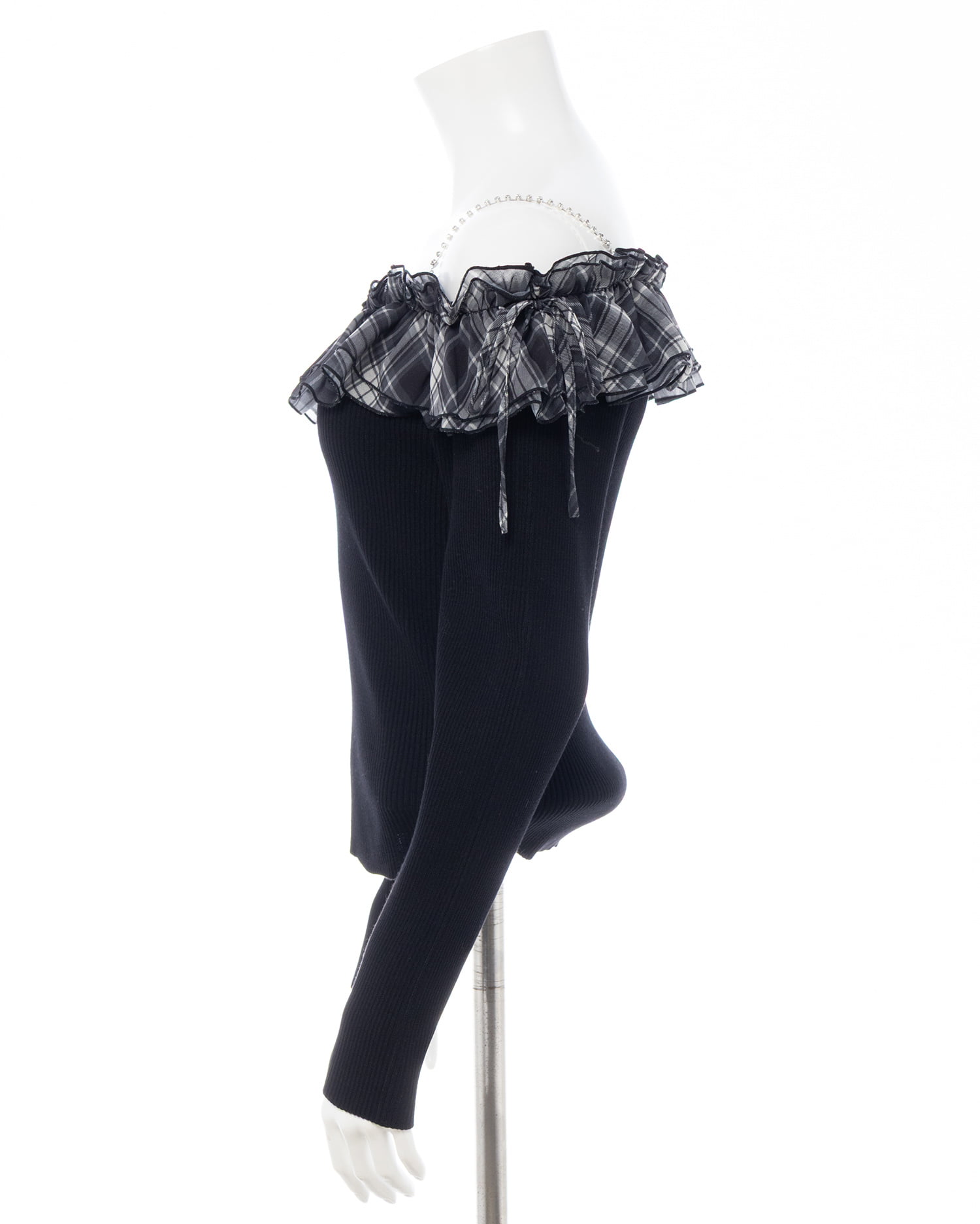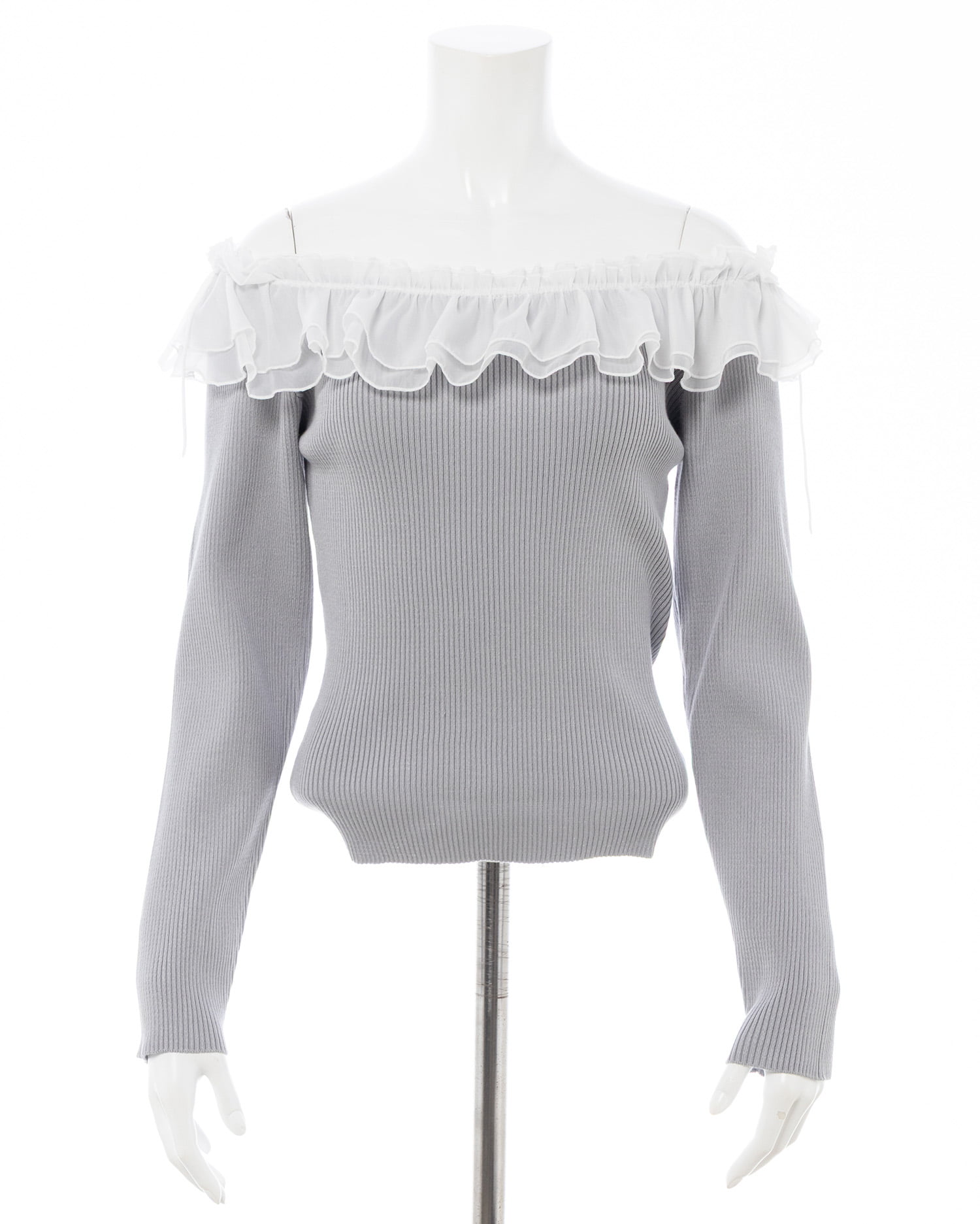コンパクトなニット部分とボリューミーなフリルの組み合わせが