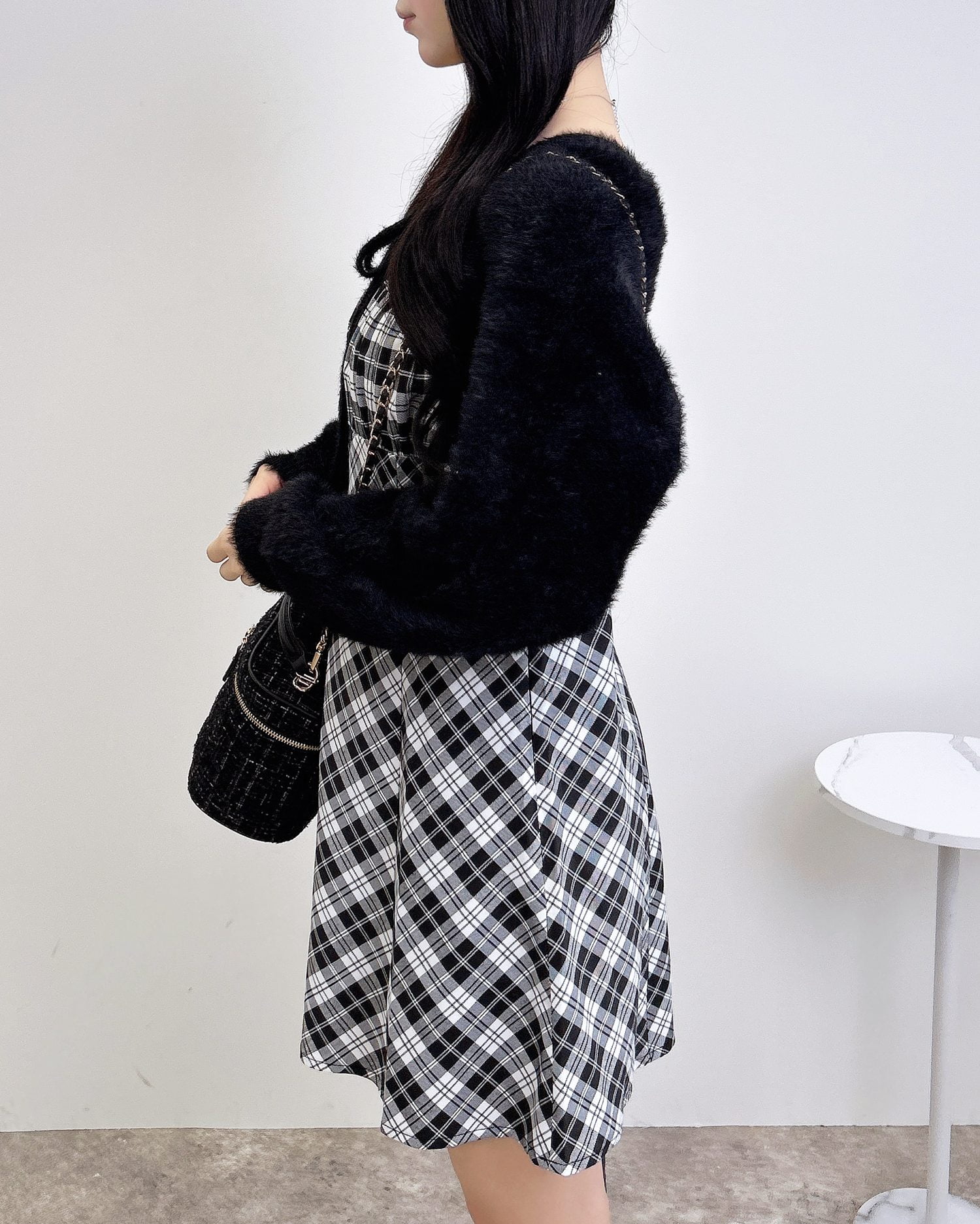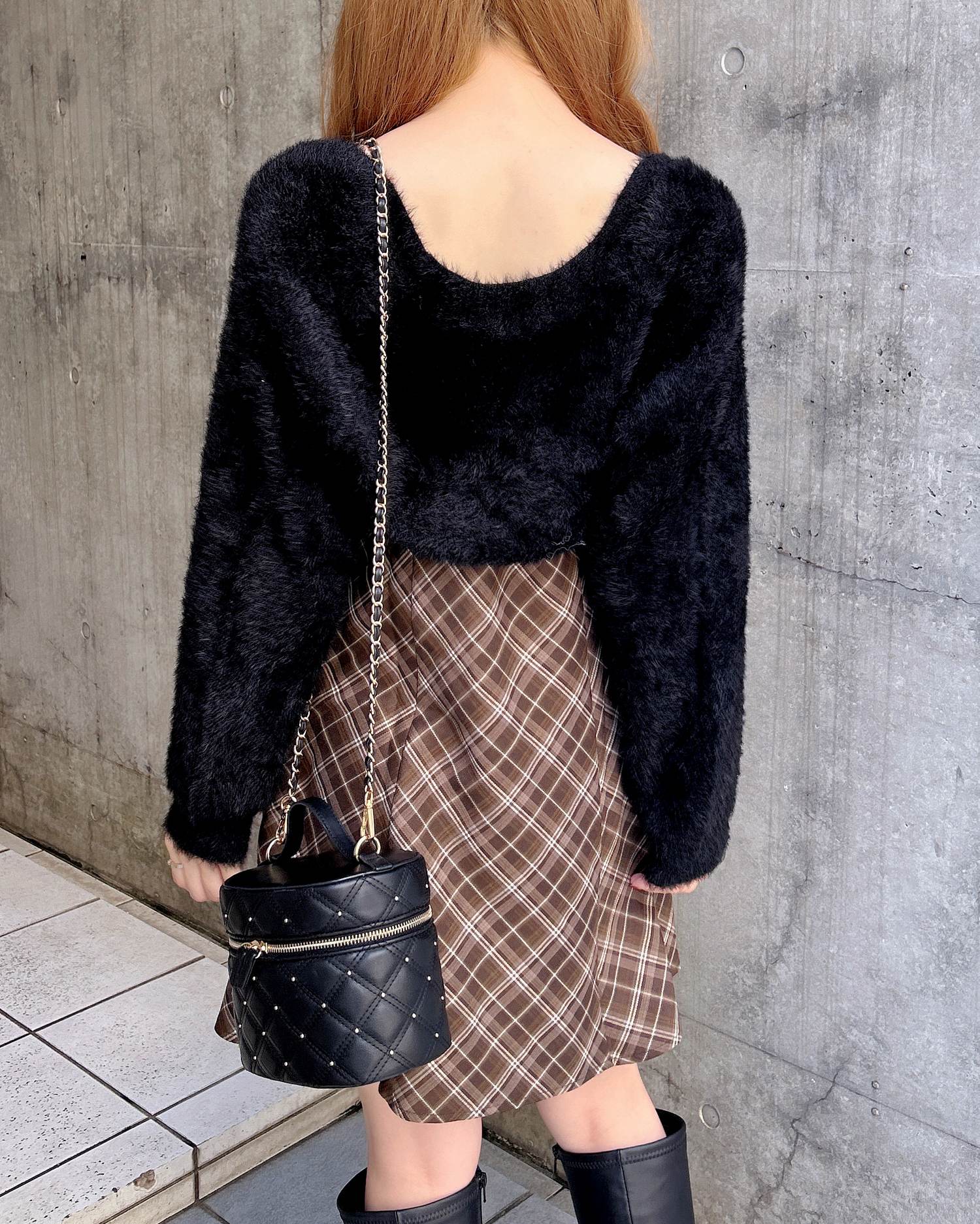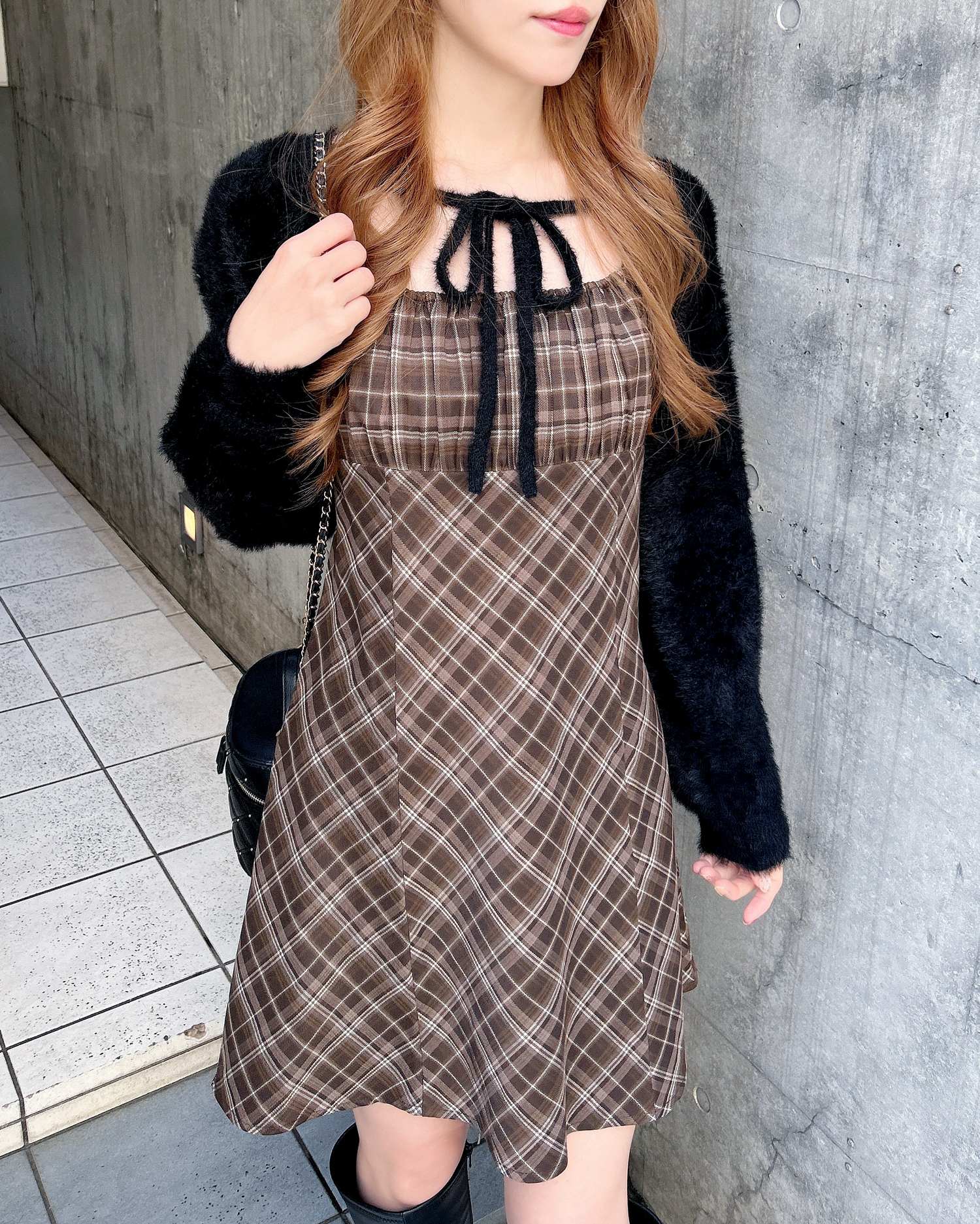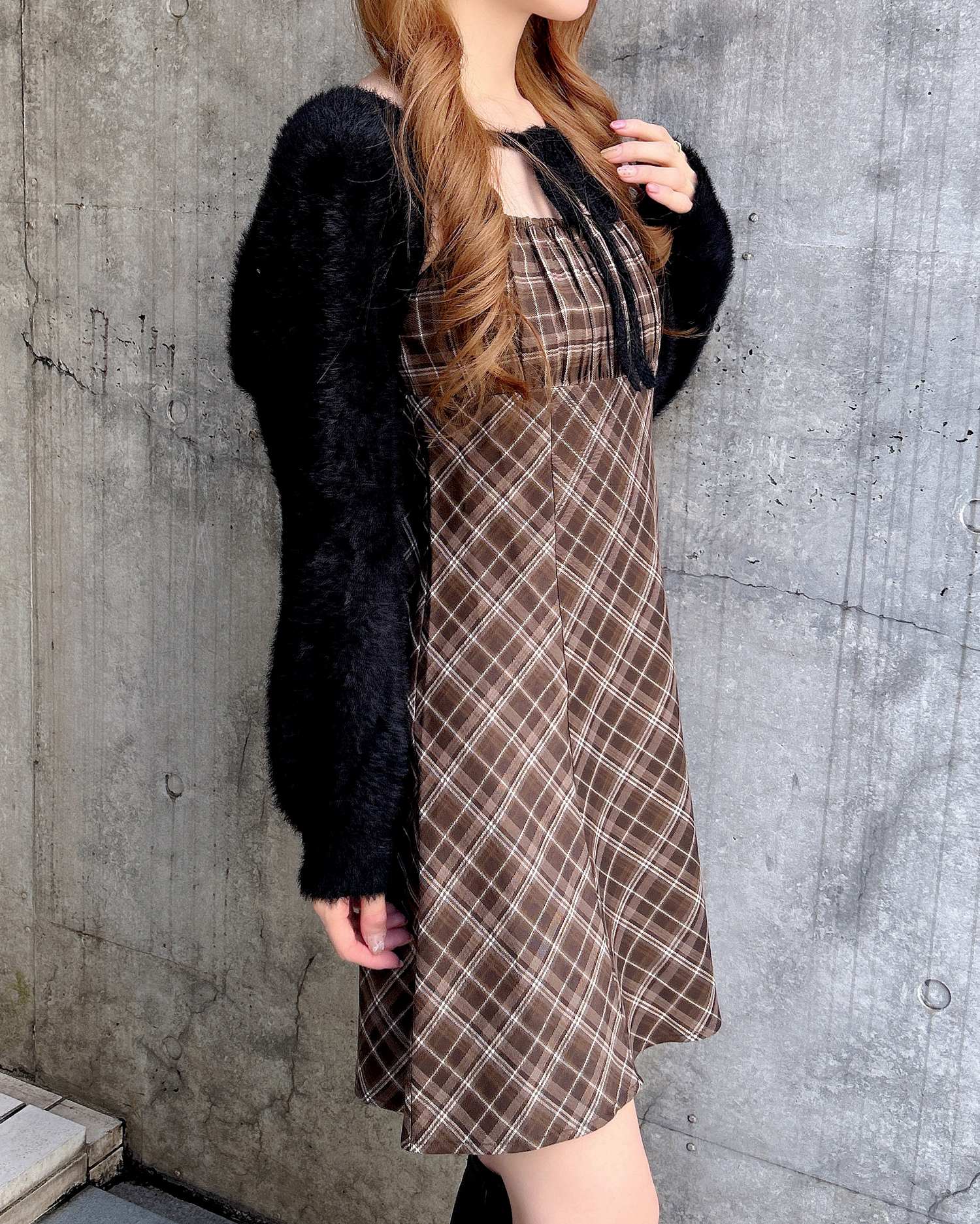 1999-800178 【WEB限定】フェザーボレロニット+チェック柄ミニキャミワンピースセット