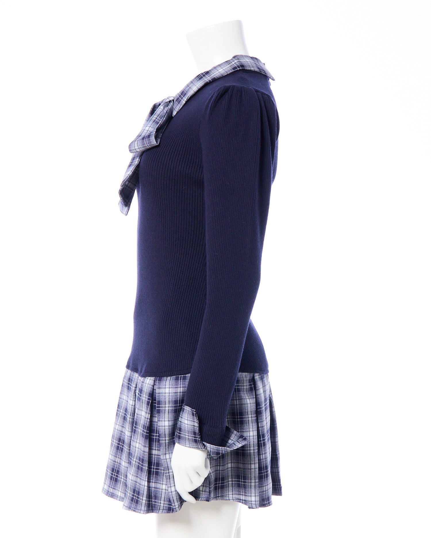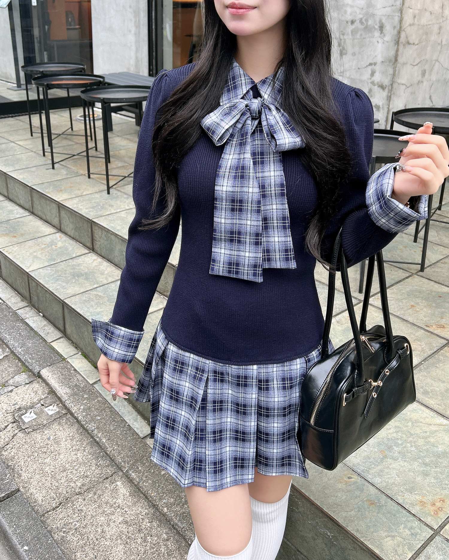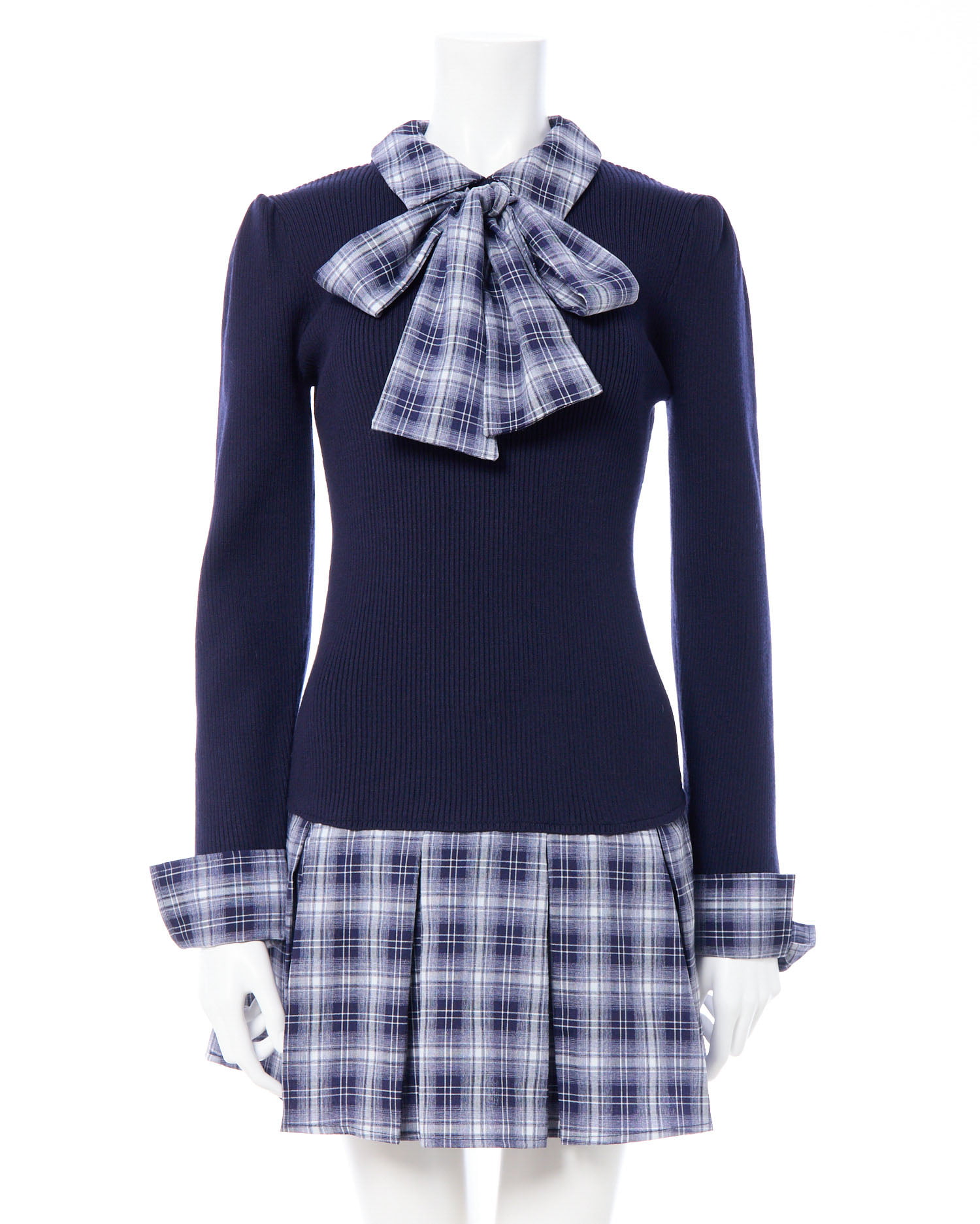 【一枚で決まる!秋のボウタイシャツ×ドッキングニットワンピ】