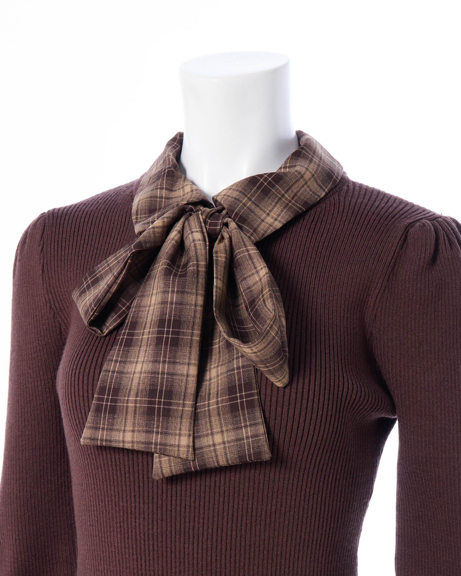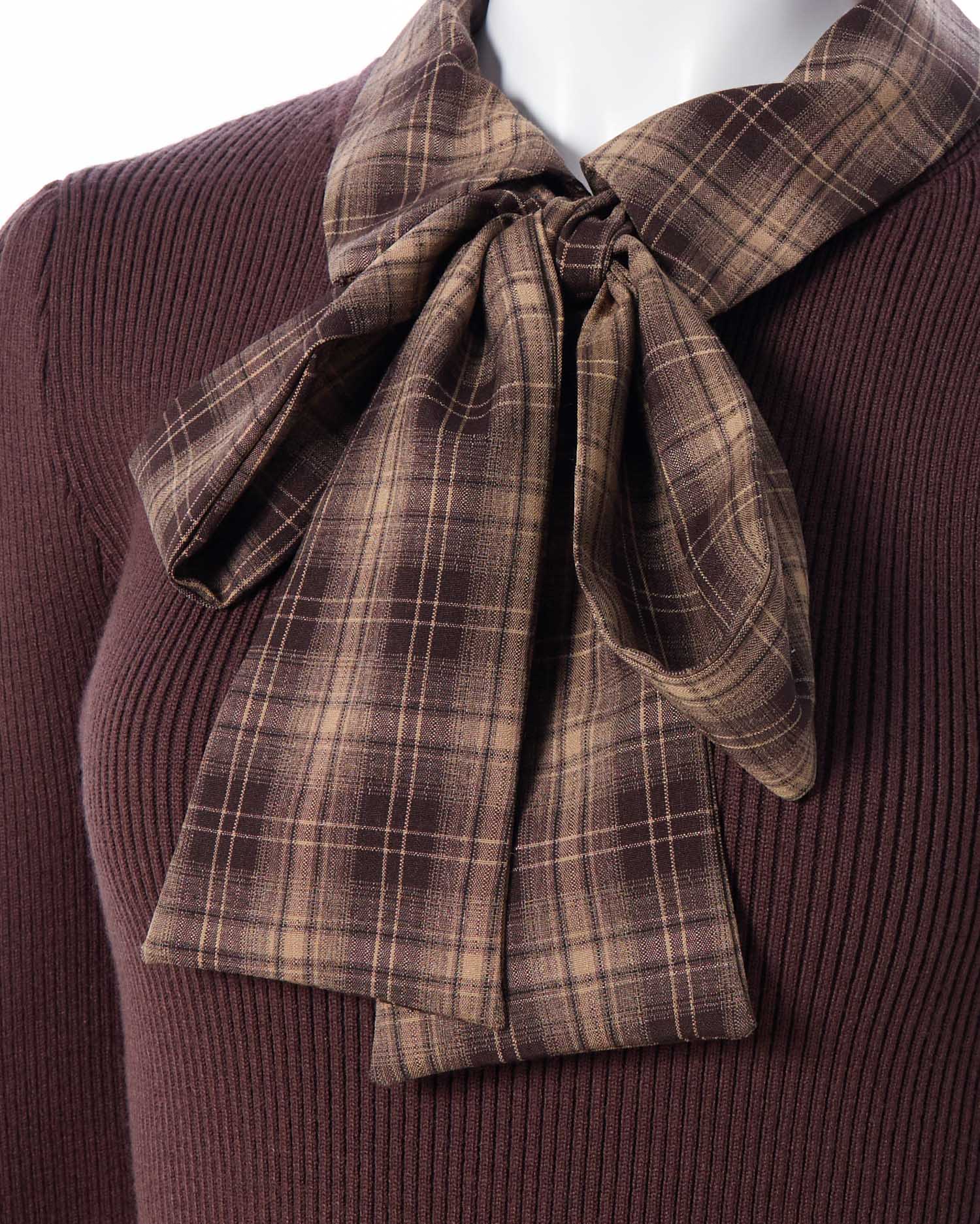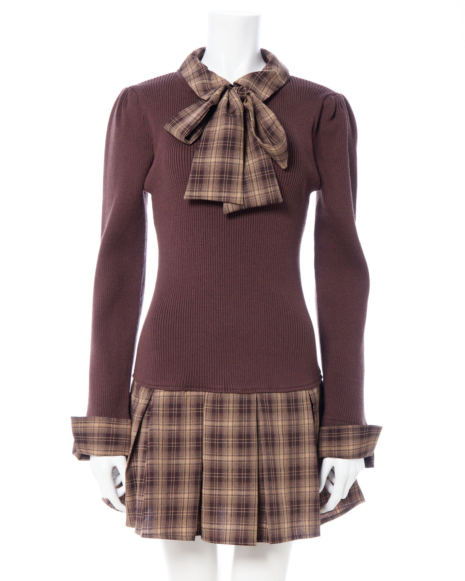 【一枚で決まる!秋のボウタイシャツ×ドッキングニットワンピ】