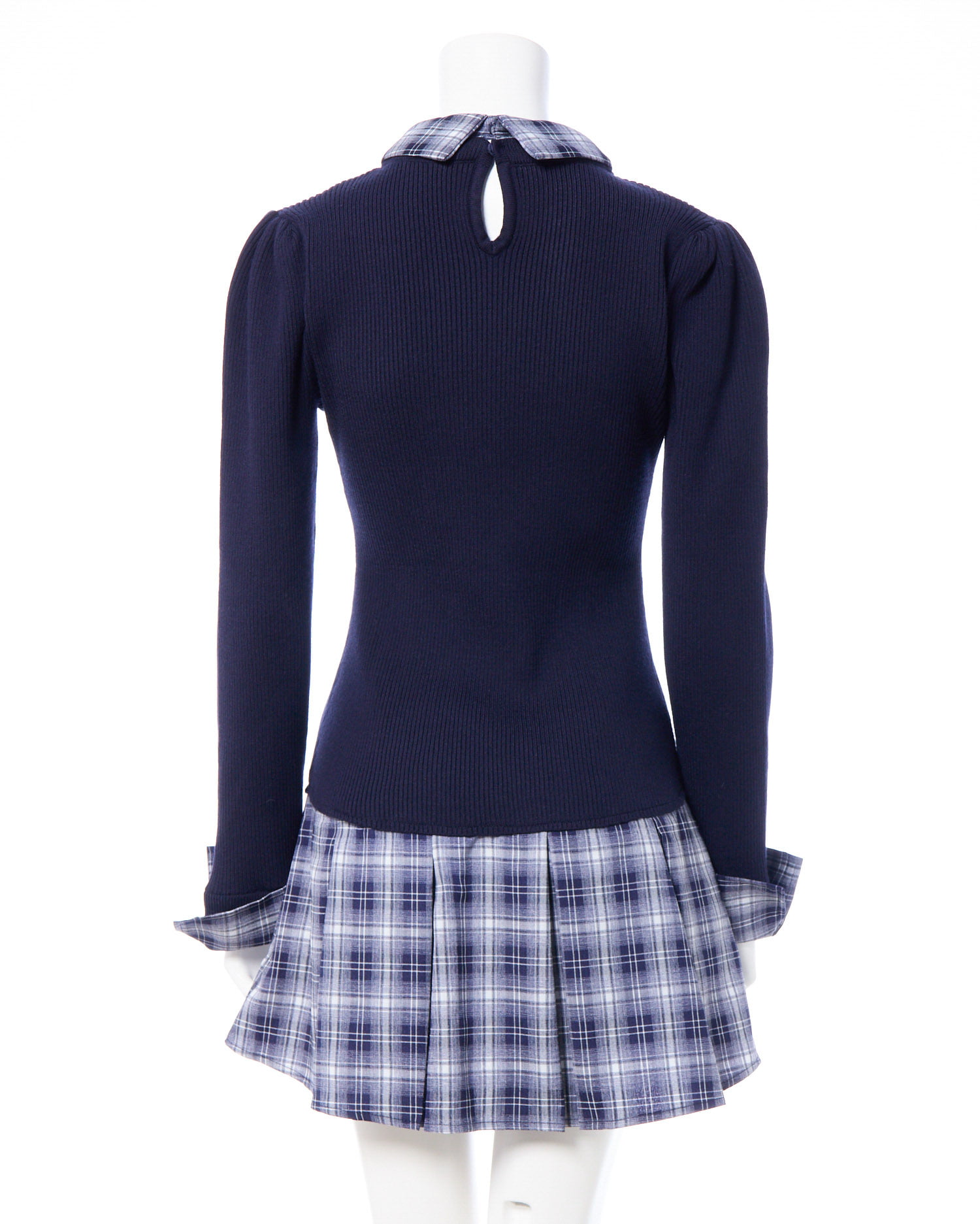 伸縮性のあるニットと首後ろのホックで脱ぎ着も楽チンです。