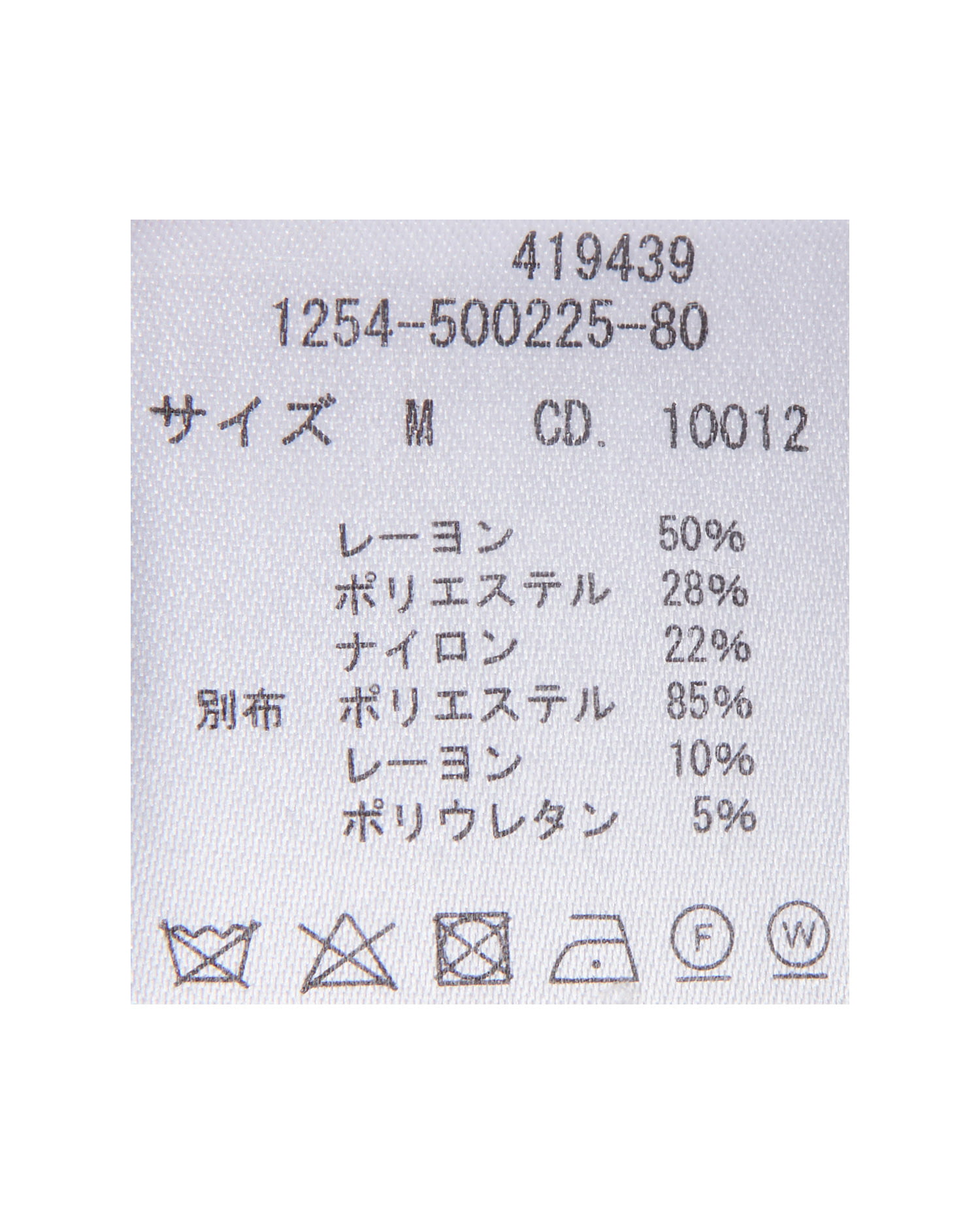 別布(ボウタイ、スカート部分) ポリエステル85% レーヨン10% ポリウレタン5%