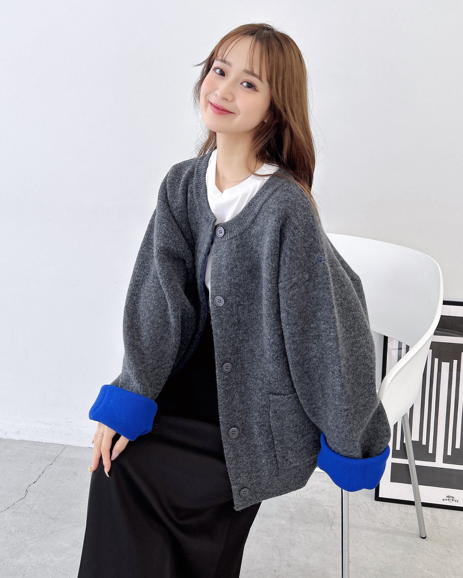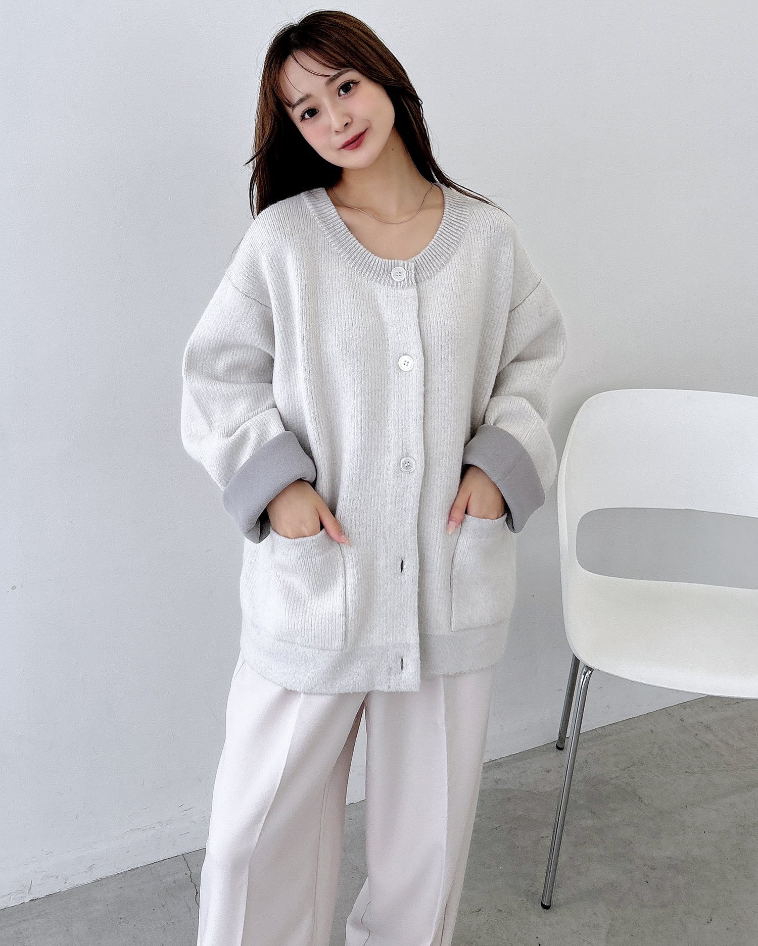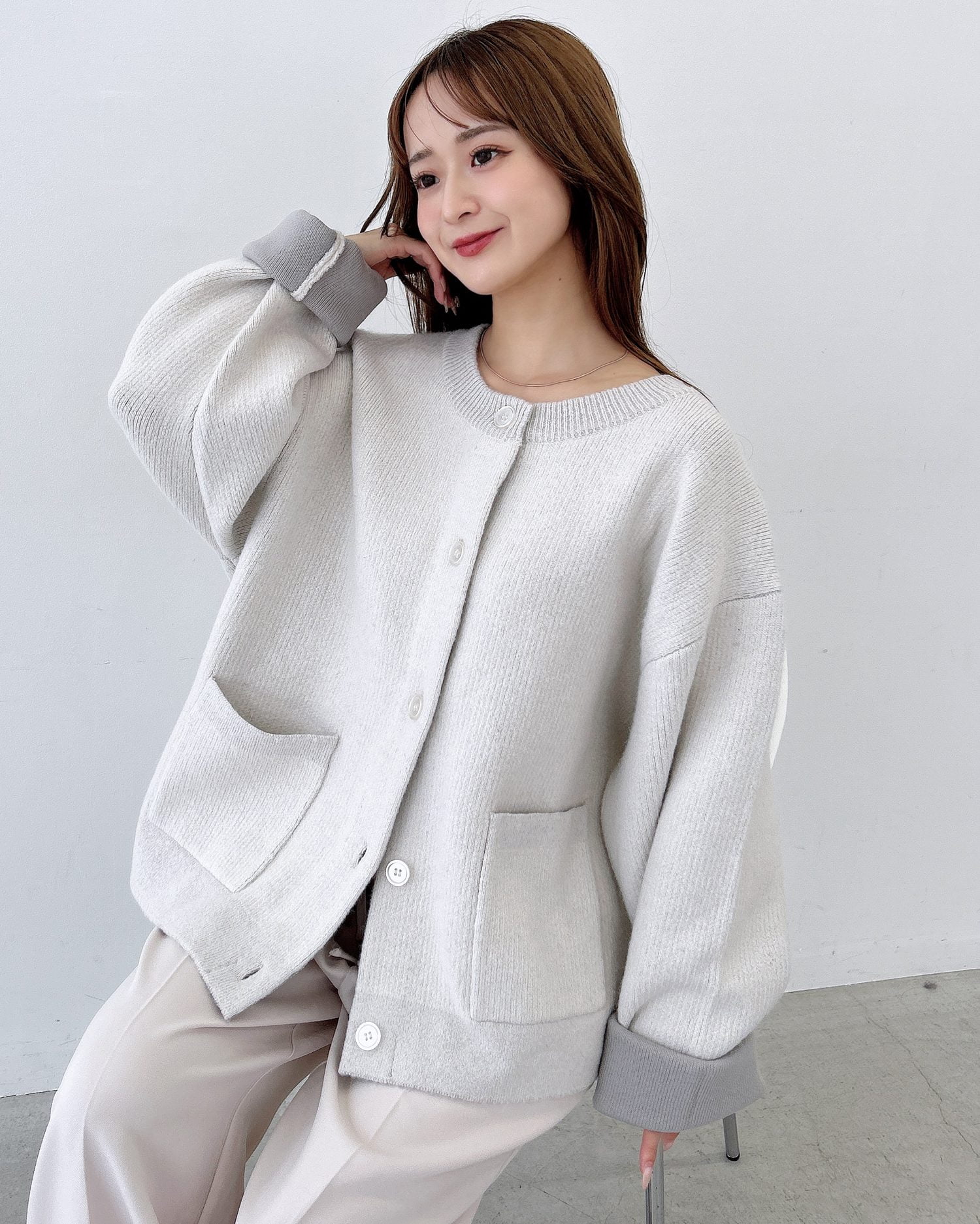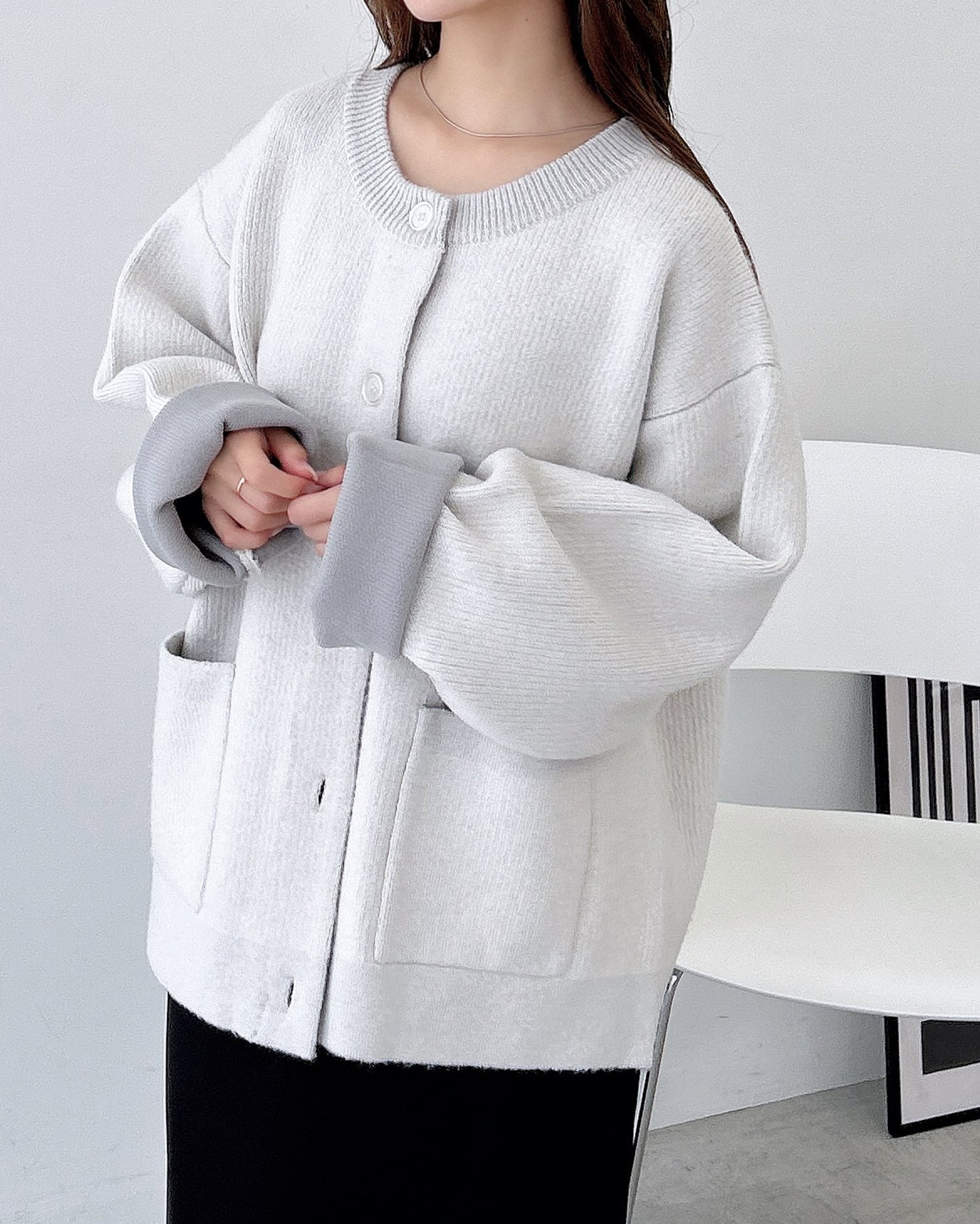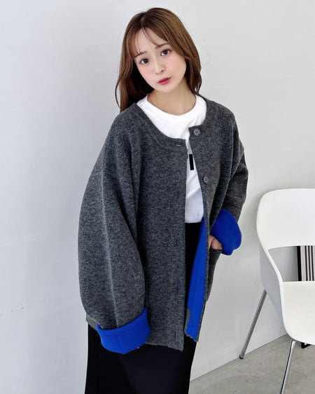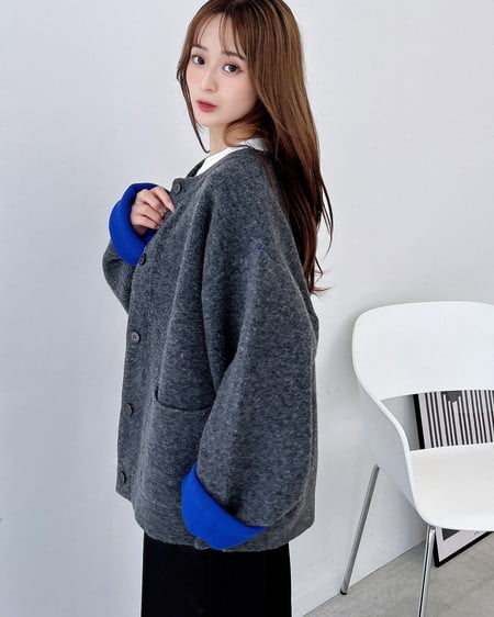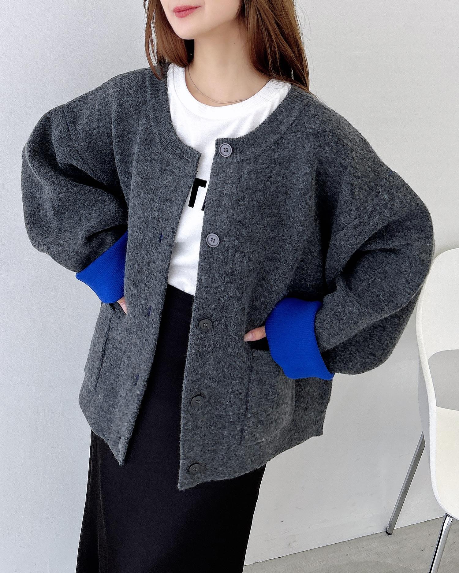 バイカラーがアクセント!秋冬定番ニットカーディガン。
