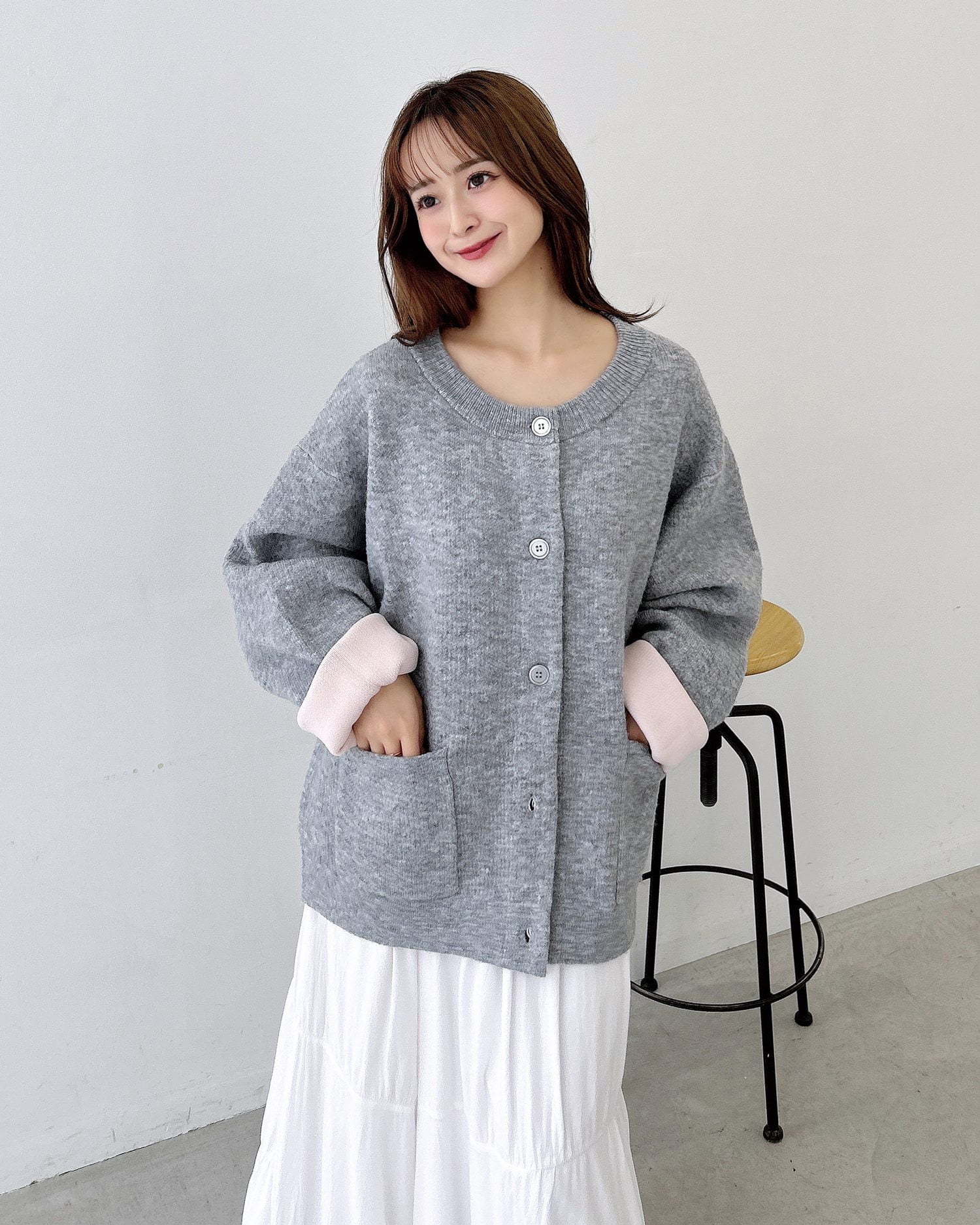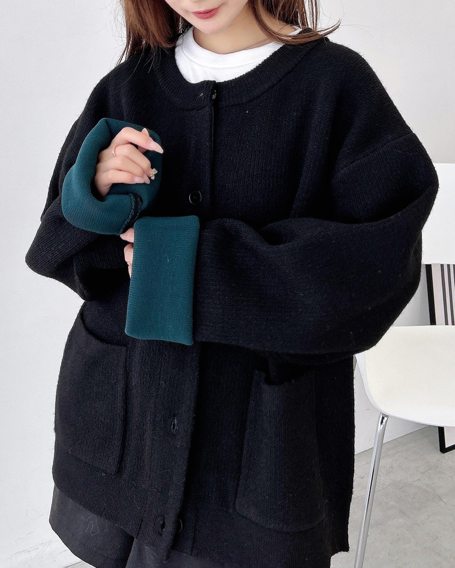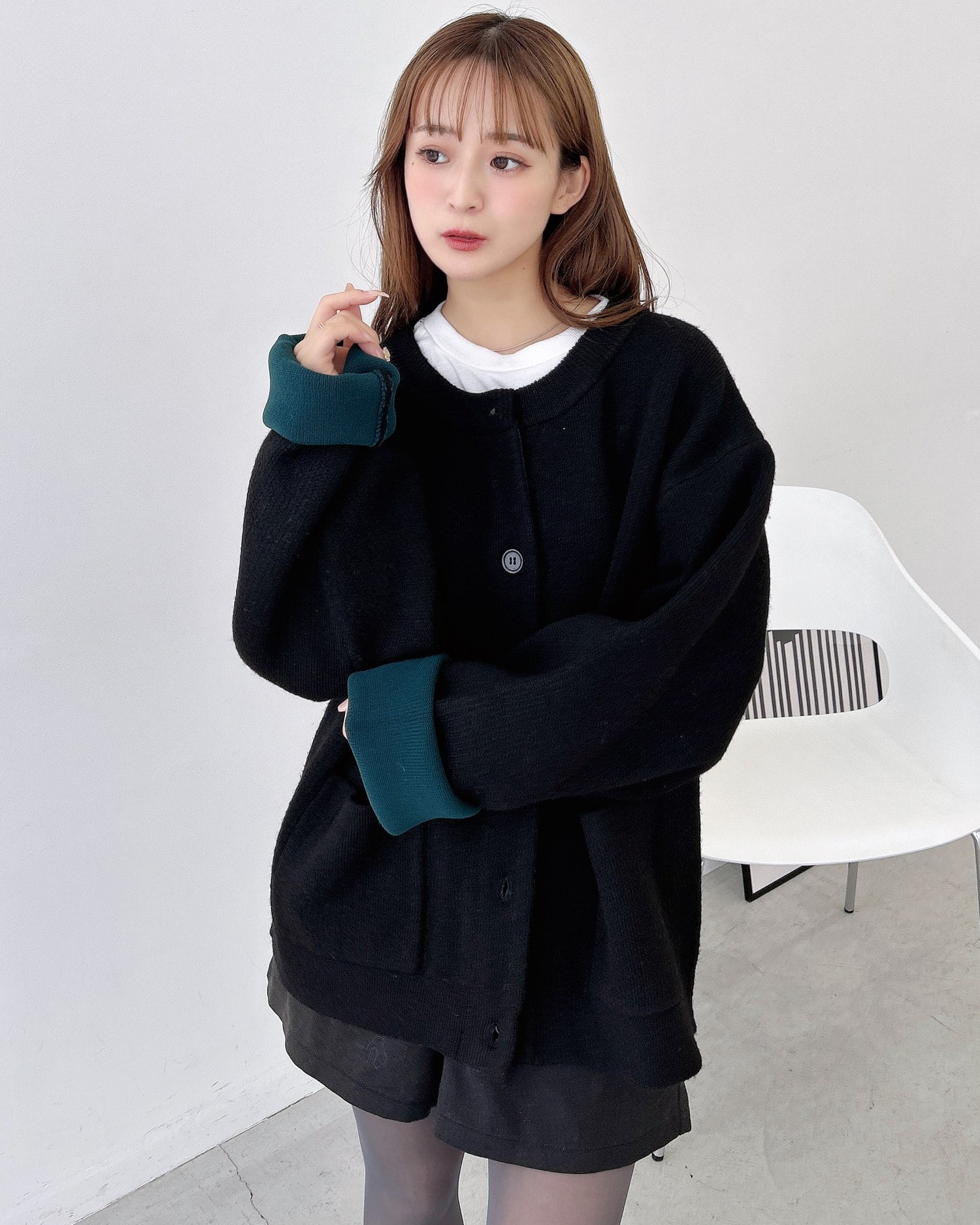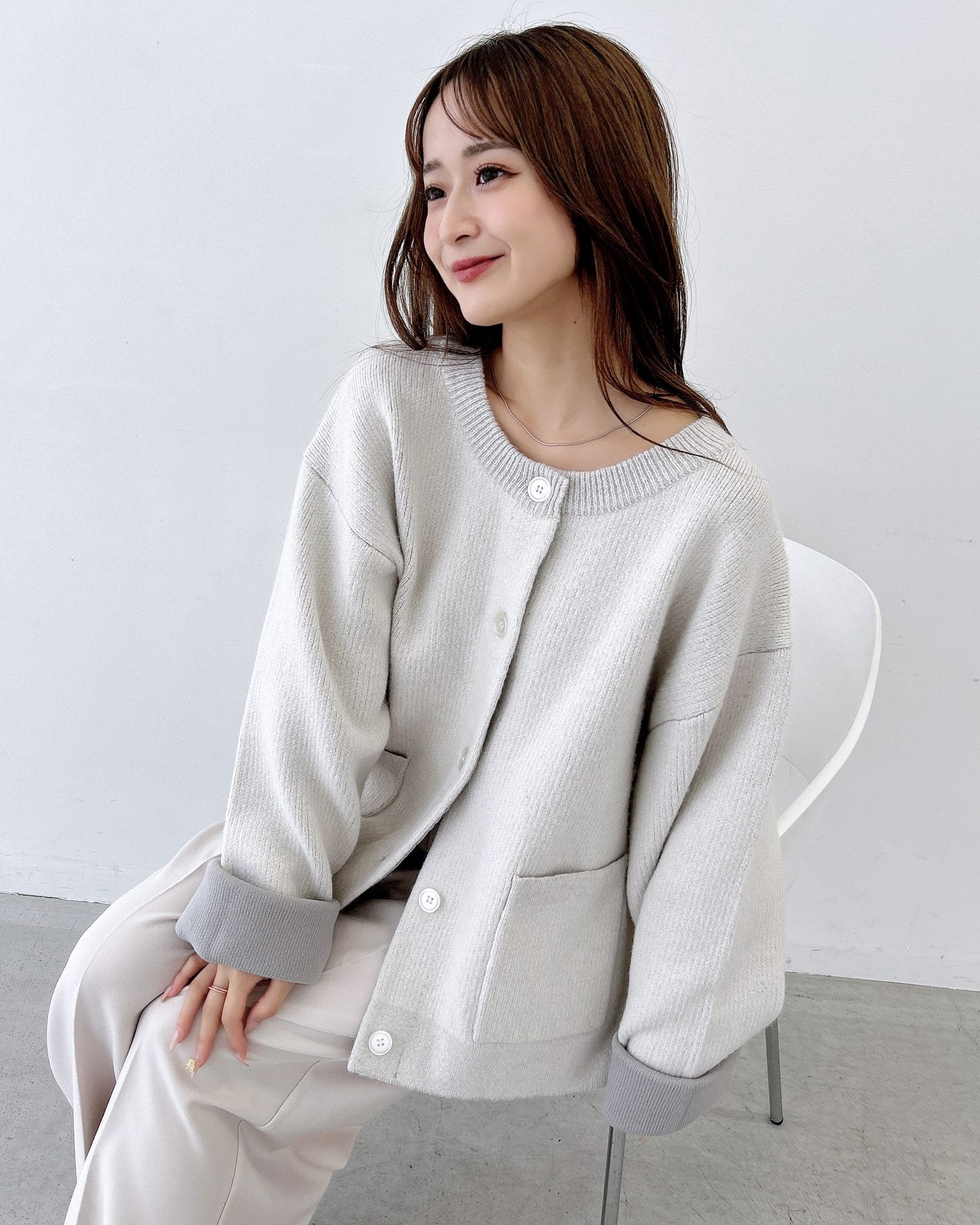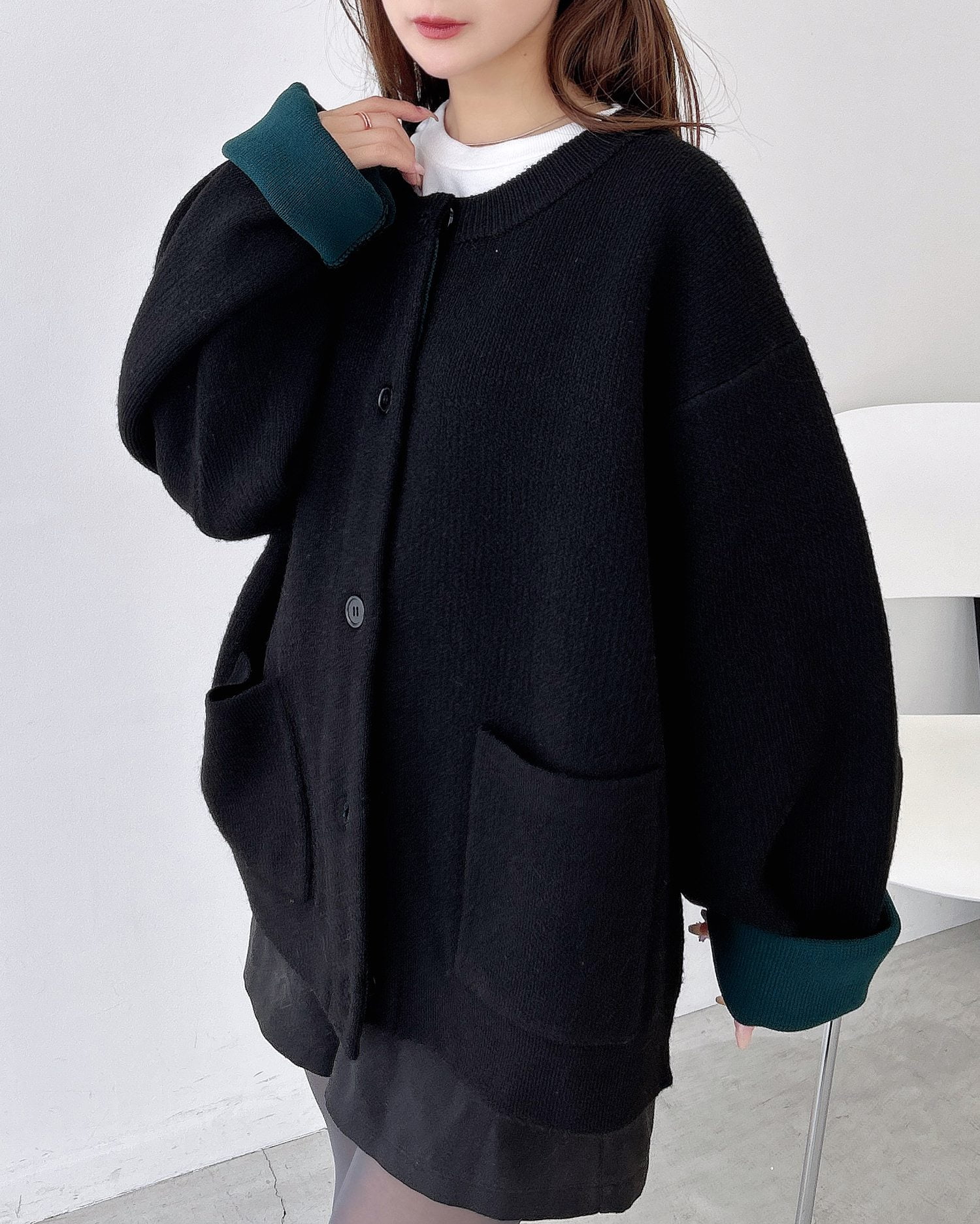 バイカラーがアクセント!秋冬定番ニットカーディガン。