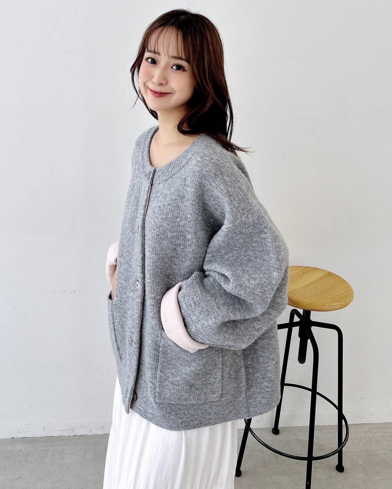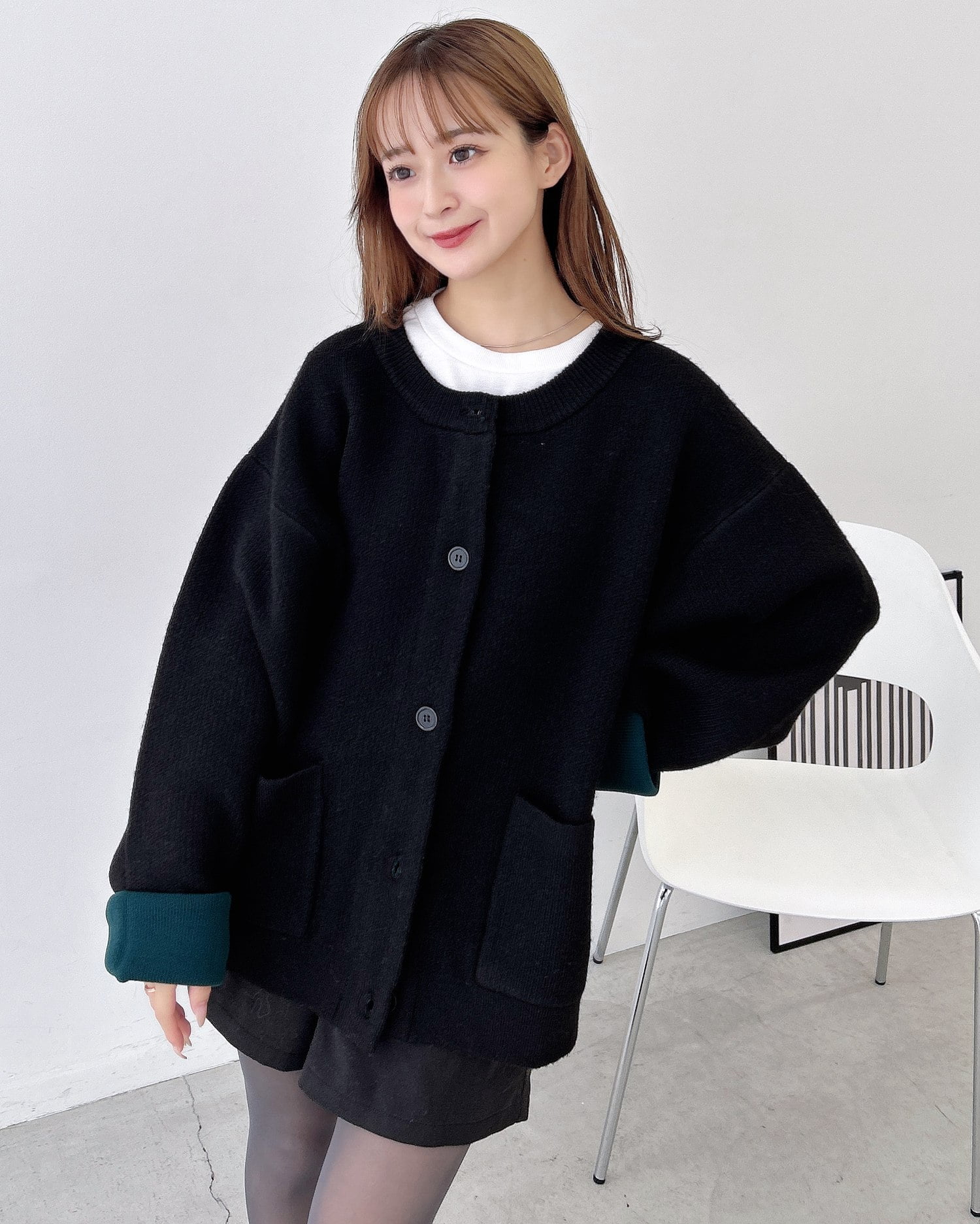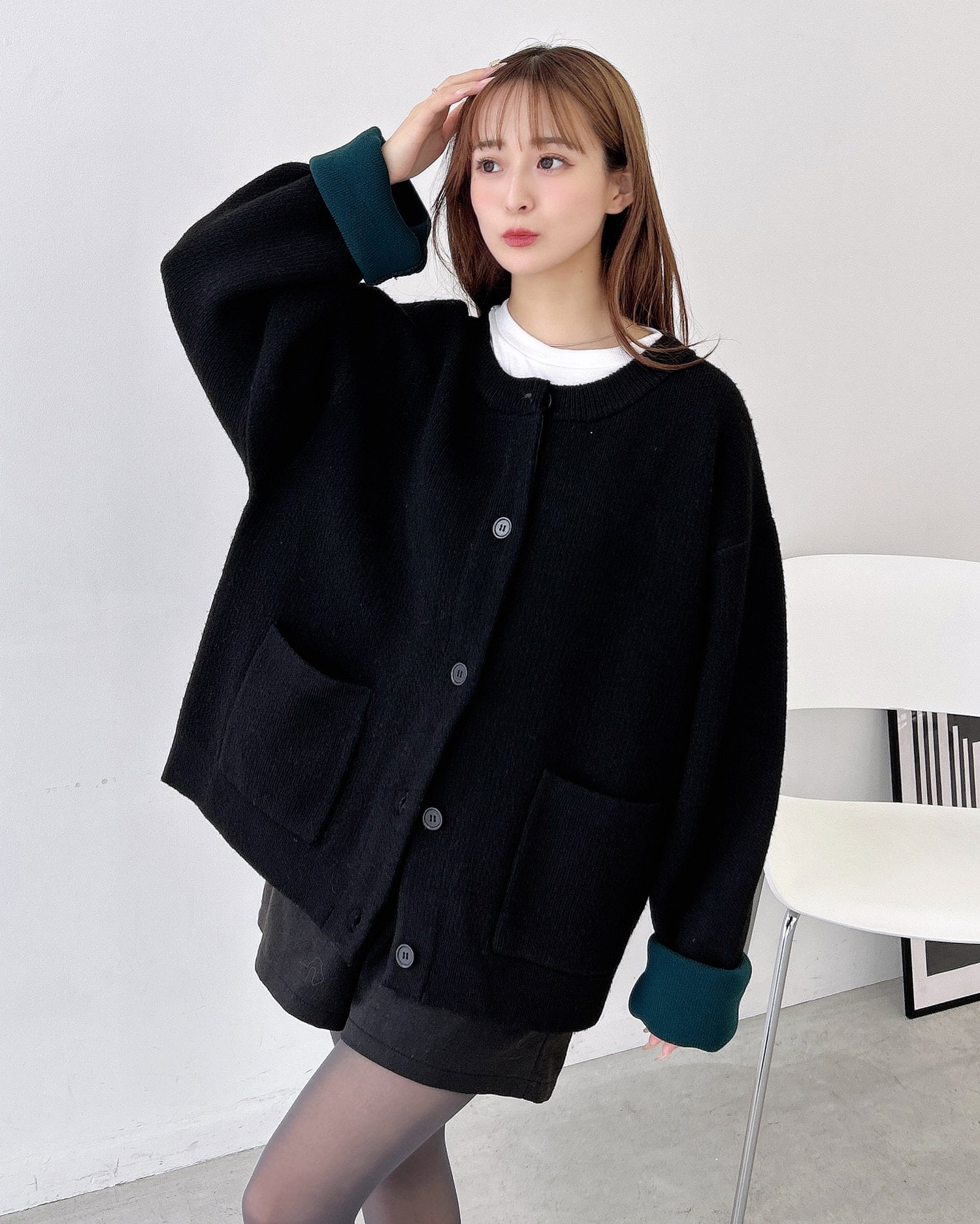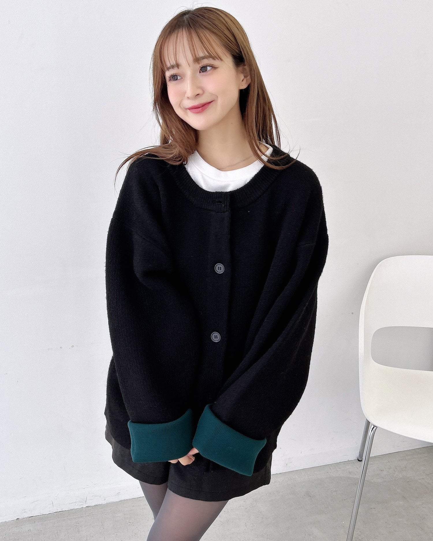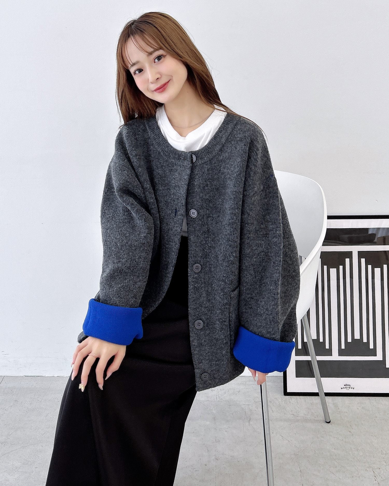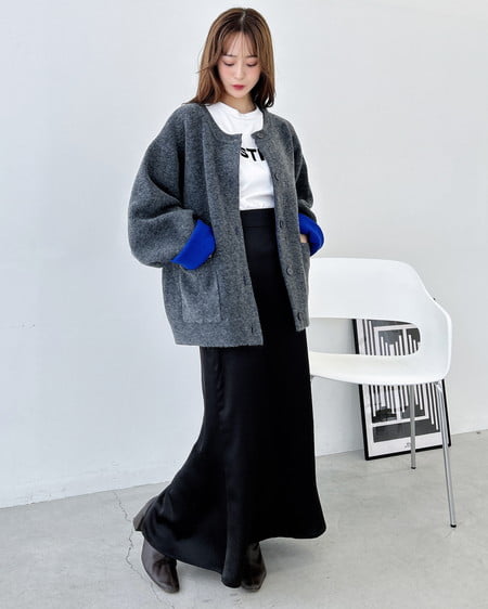 バイカラーがアクセント!秋冬定番ニットカーディガン。