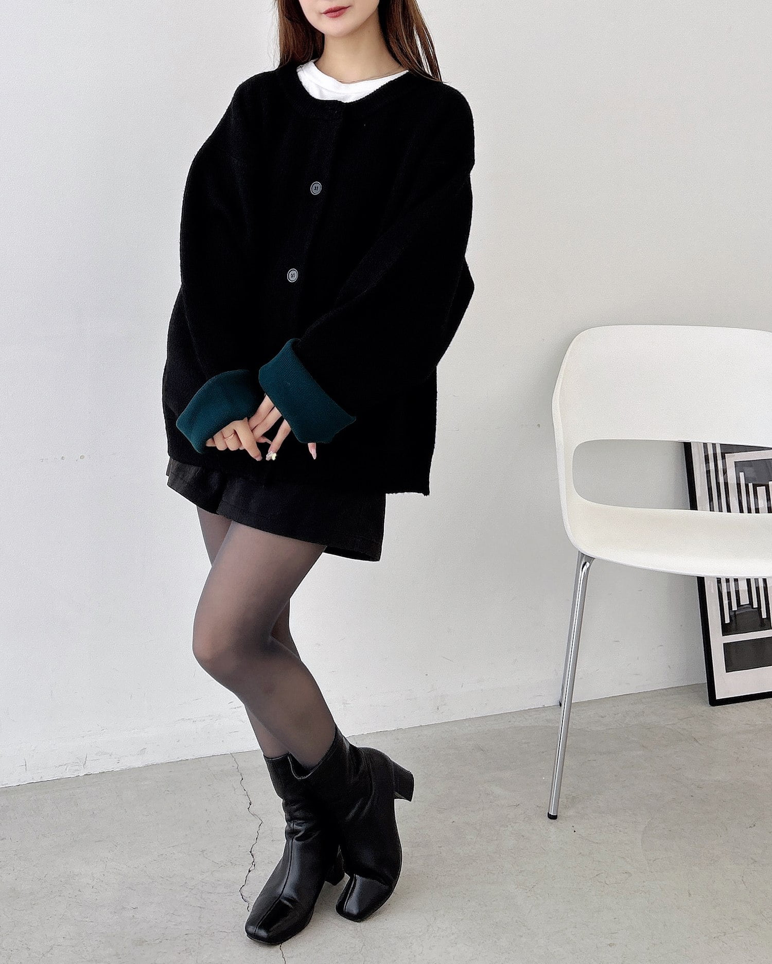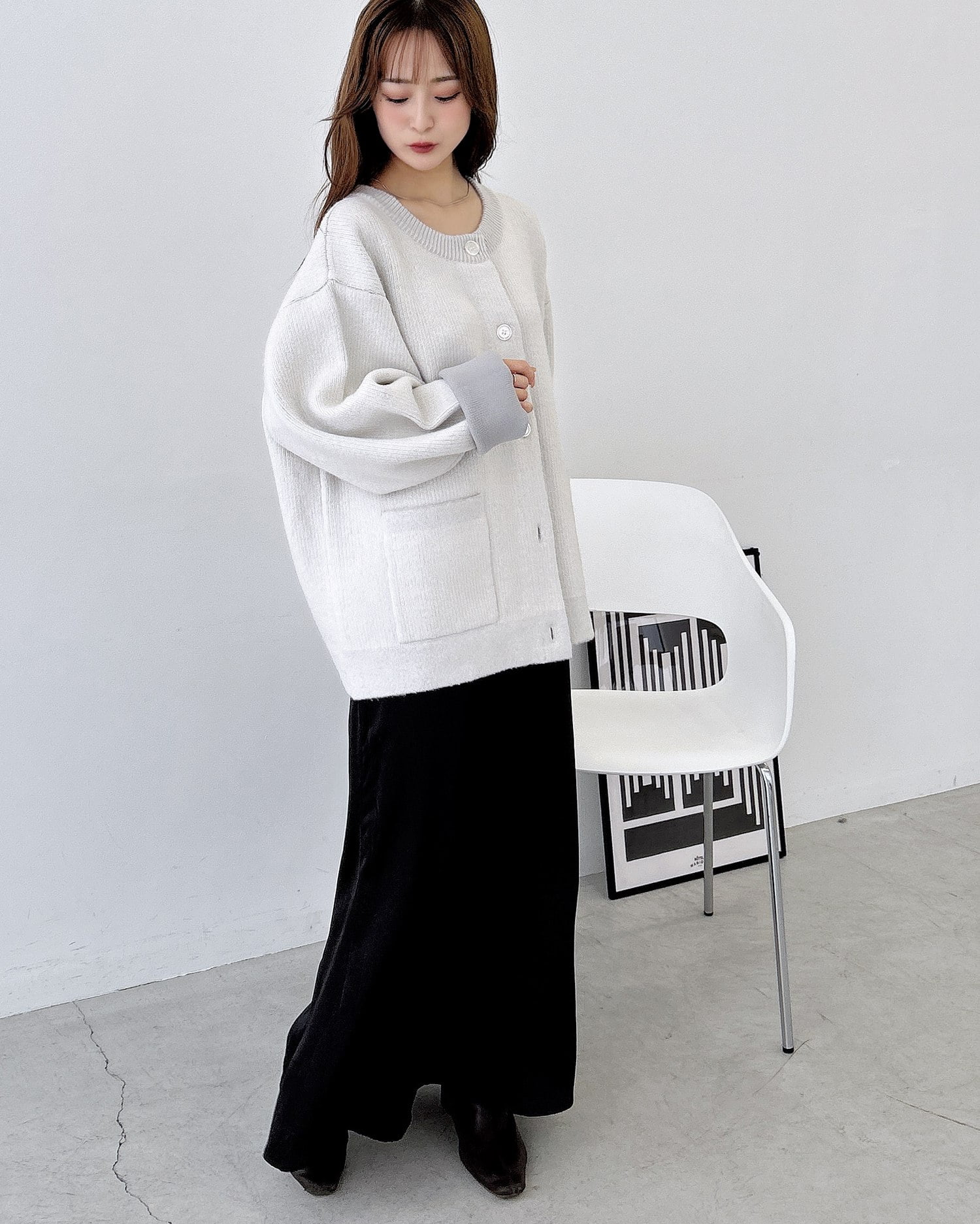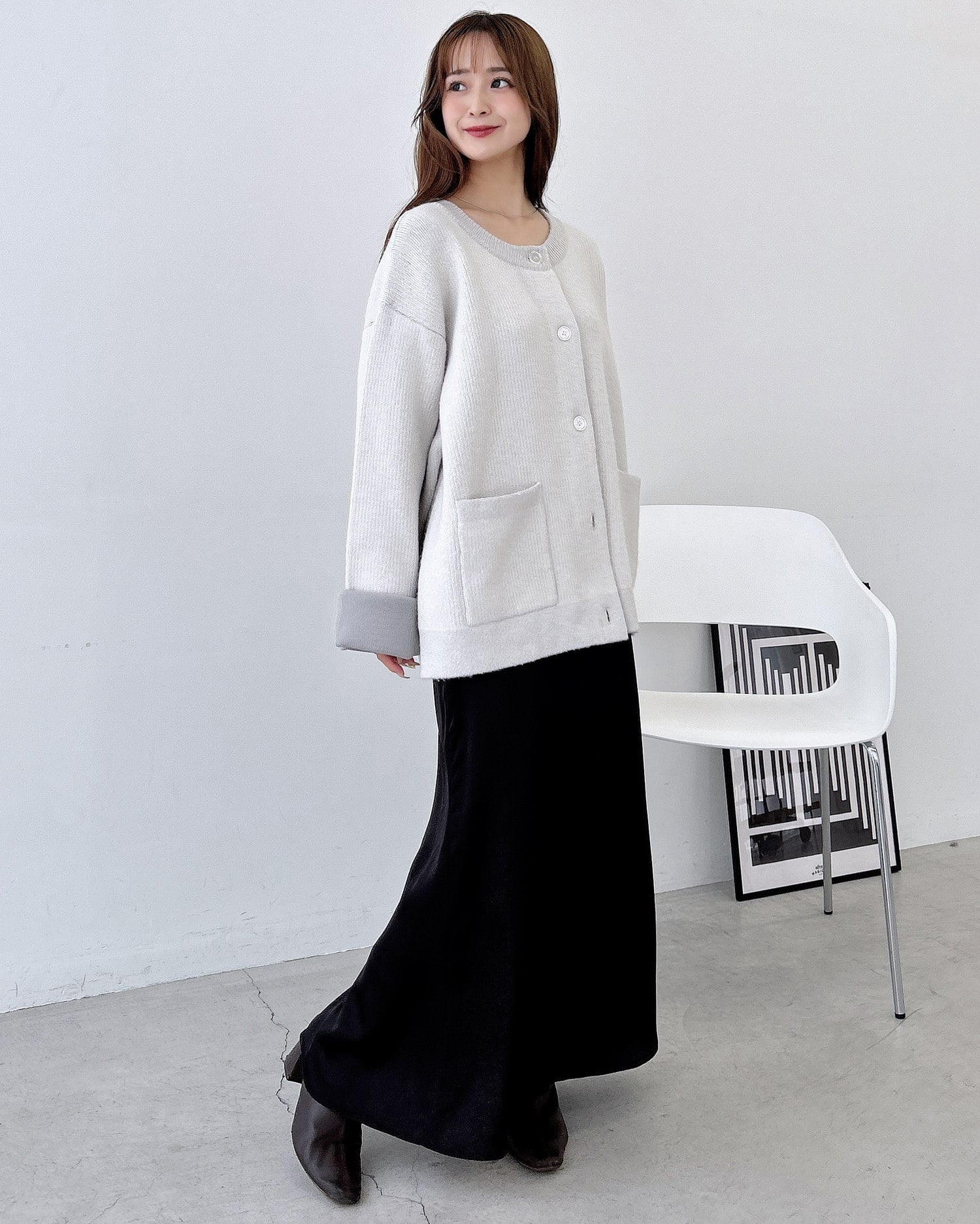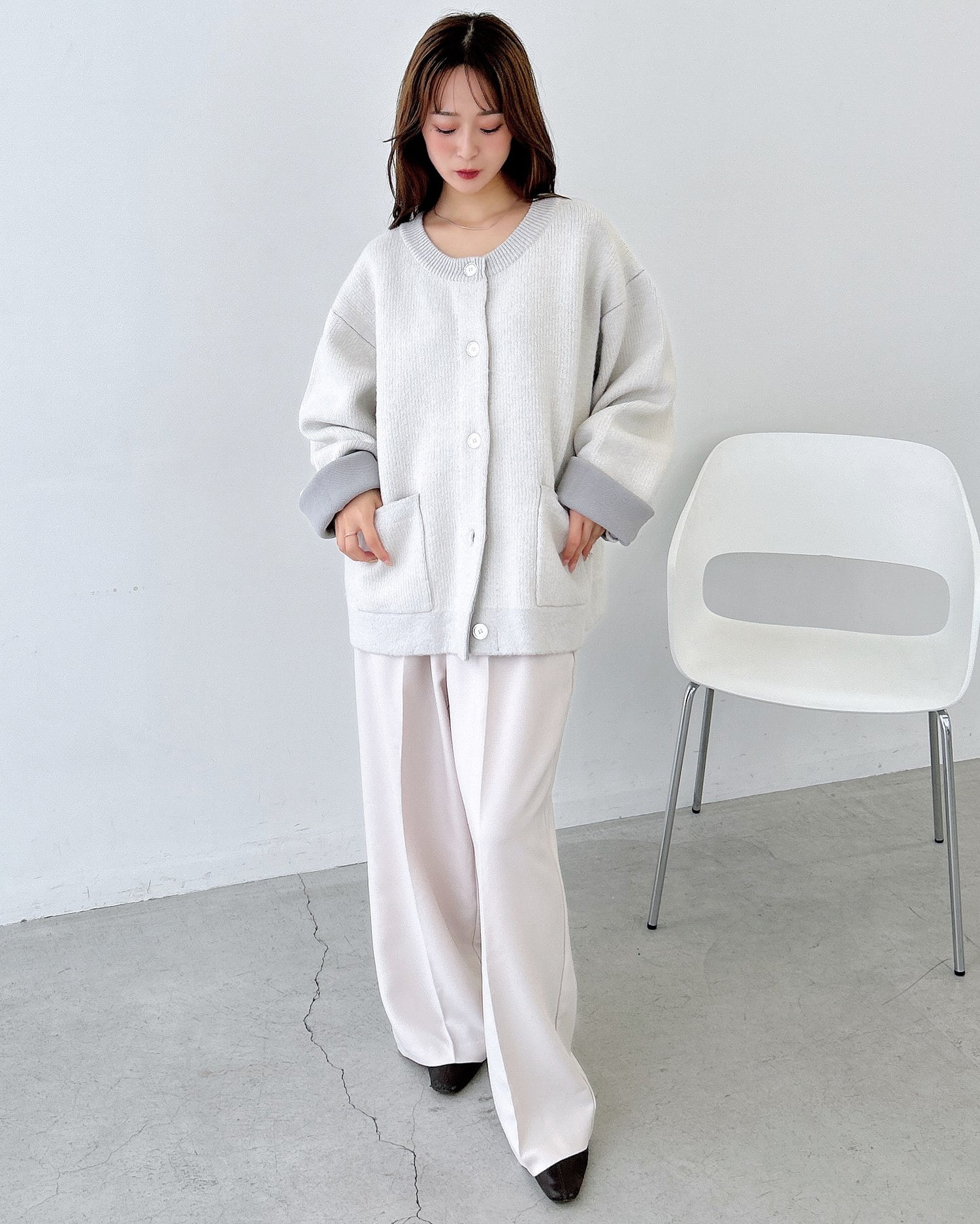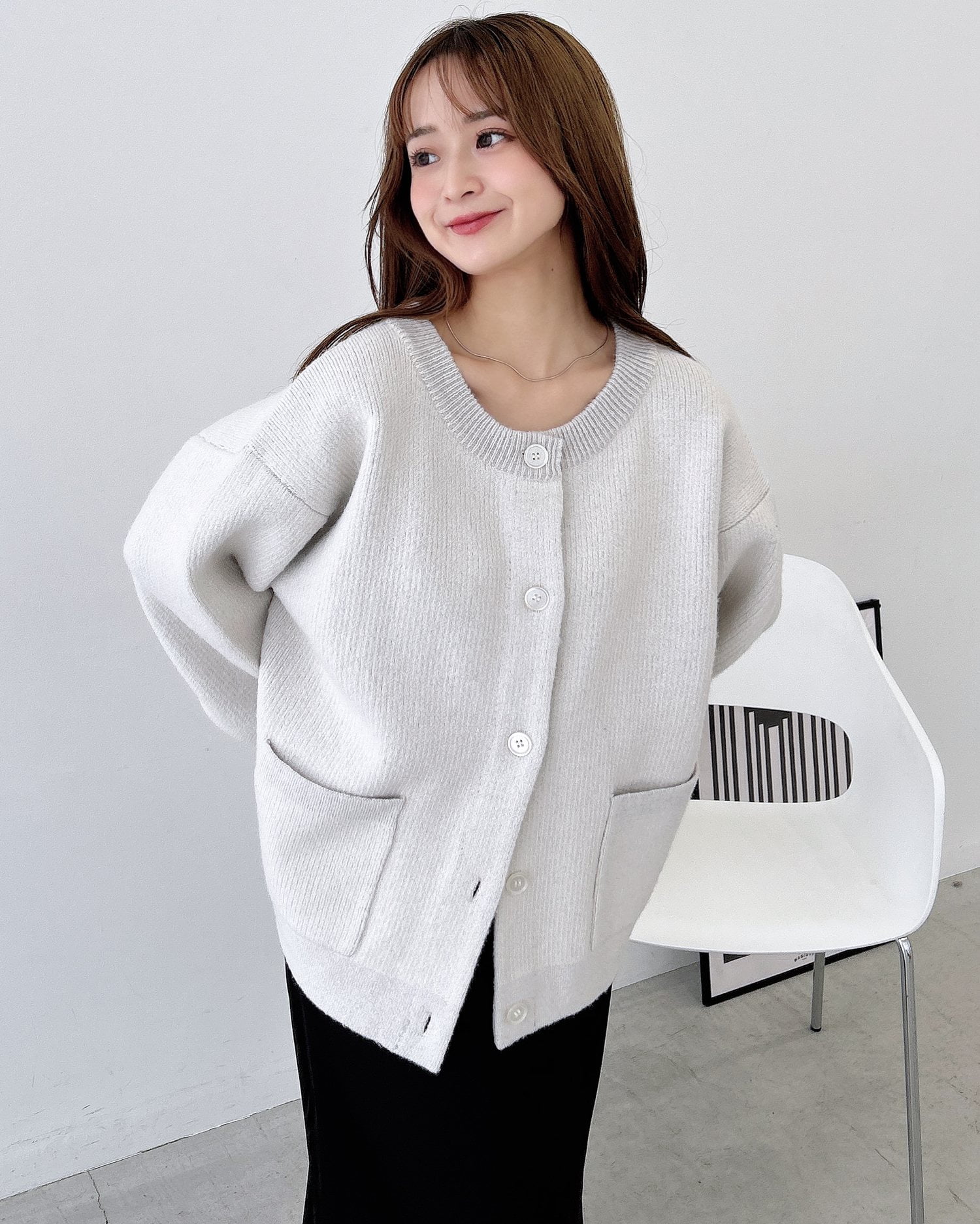 バイカラーがアクセント!秋冬定番ニットカーディガン。